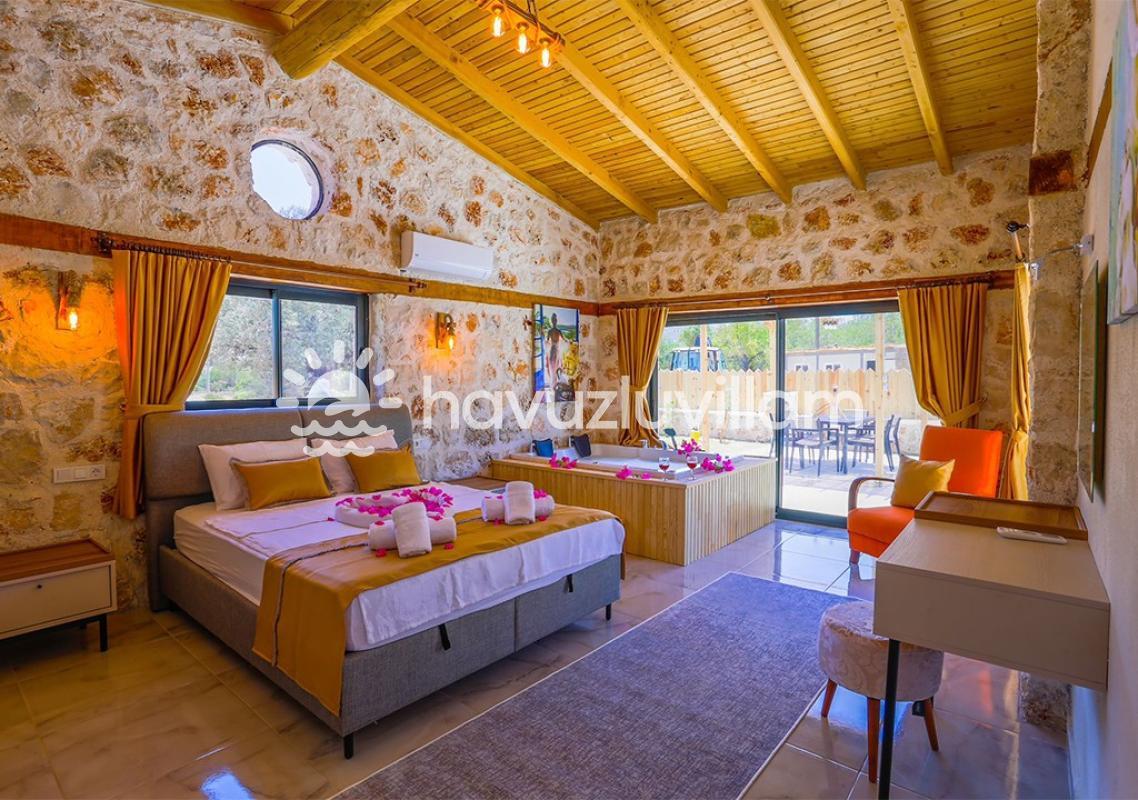 Kaş'ın muhteşem doğasında, Bayındır mevkiinde yer alan Villa Ağa 1, 2 yatak odası ve 4 kişi kapasitesiyle jakuzili muhafazakar bir villa olarak öne çıkıyor. Villamızın havuzu ve bahçesi dışarıdan görünmez, böylece konuklarımıza tam bir mahremiyet sağlanmaktadır.