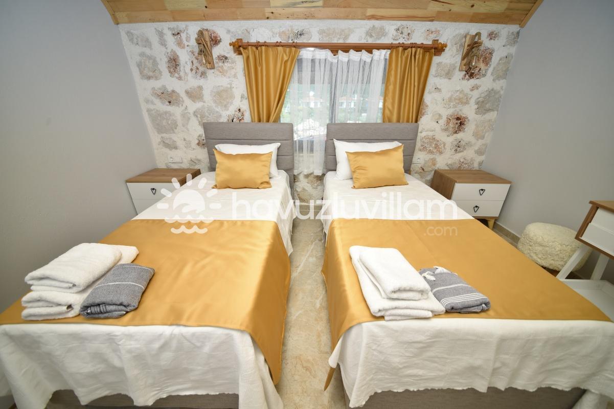 2 yatak odasıyla 4 kişiye kadar konaklama kapasitesine sahip olan villamız, balayı çiftleri ve çekirdek aileler için ideal bir seçenektir. Her detayın düşünüldüğü villamızda, misafirlerimizin konforu için gereken her şey eksiksiz bir şekilde sağlanmıştır.