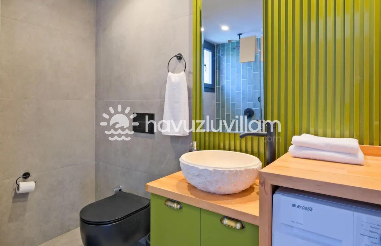 Villa Aydın Trio 2, 6 kişiye kadar konaklama imkanı sunan 3 yatak odası ve 3 banyo-tuvaleti ile geniş aileler veya arkadaş grupları için biçilmiş kaftandır. 36 m2 büyüklüğündeki özel havuzun tadını çıkarırken güneşin altında keyifli saatler geçirebilir, villanın geniş alanlarında akşam yemeklerinizde eğlenceye devam edebilirsiniz. Kendinizi evinizde hissedeceğiniz bu özel mekan, 3 çekirdek aile için konforlu ve huzurlu bir tatil geçirmeniz için özel olarak tasarlandı.
