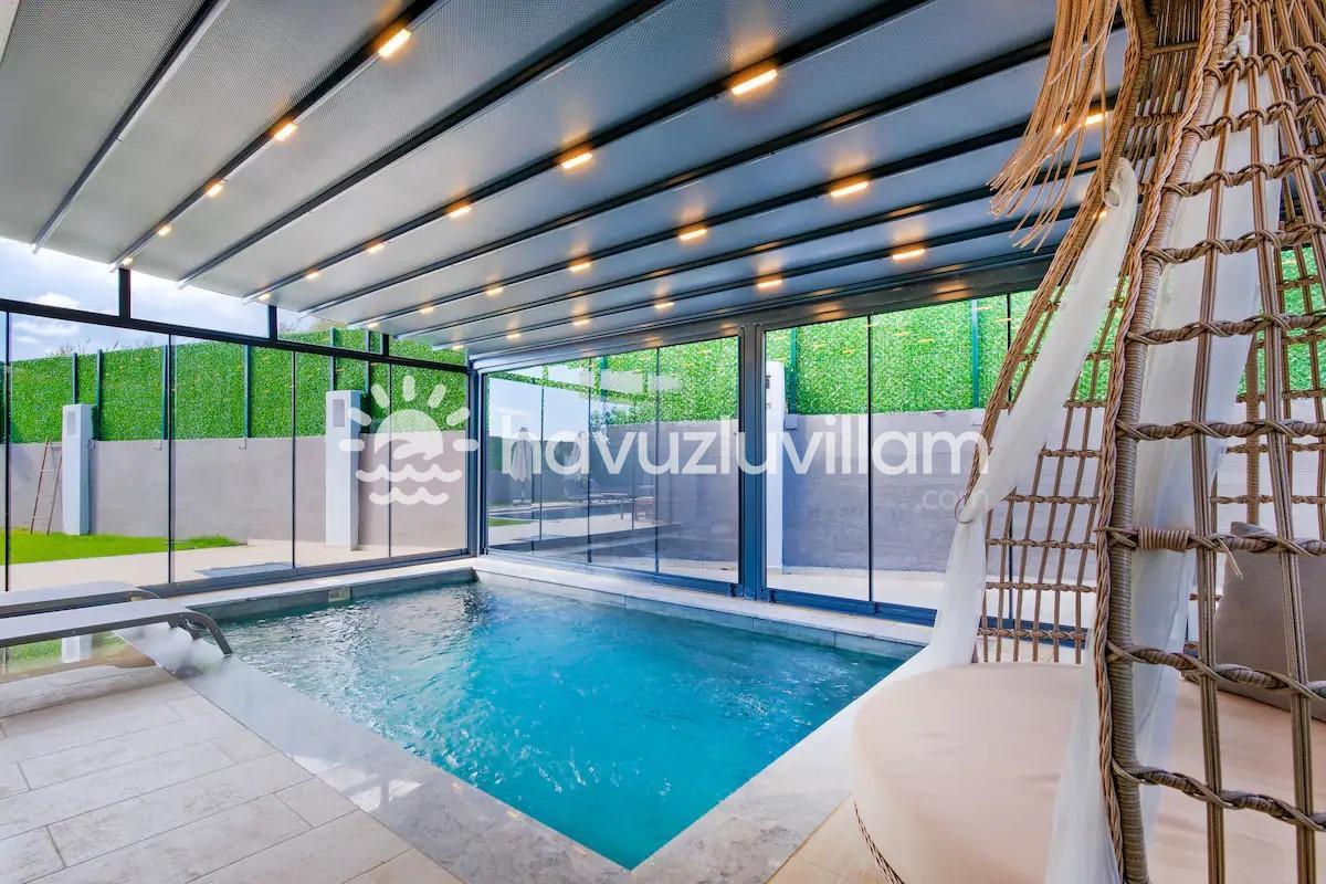 Villa Aydın Trio 3, 6 kişiye kadar konaklama imkanı sunan 3 yatak odası ve 3 banyo-tuvaleti ile geniş aileler veya arkadaş grupları için biçilmiş kaftandır. 36 m2 büyüklüğündeki özel havuzun tadını çıkarırken güneşin altında keyifli saatler geçirebilir, villanın geniş alanlarında akşam yemeklerinizde eğlenceye devam edebilirsiniz. Kendinizi evinizde hissedeceğiniz bu özel mekan, 3 çekirdek aile için konforlu ve huzurlu bir tatil geçirmeniz için özel olarak tasarlandı.