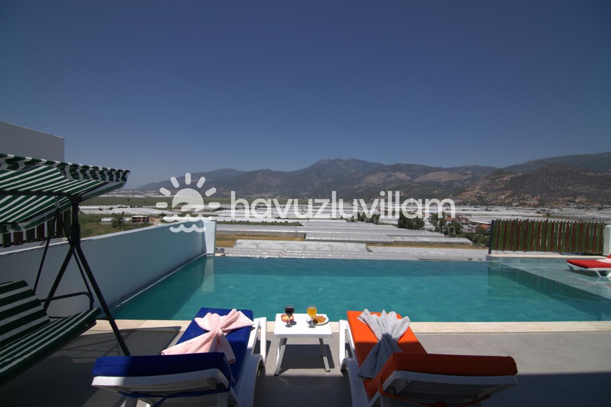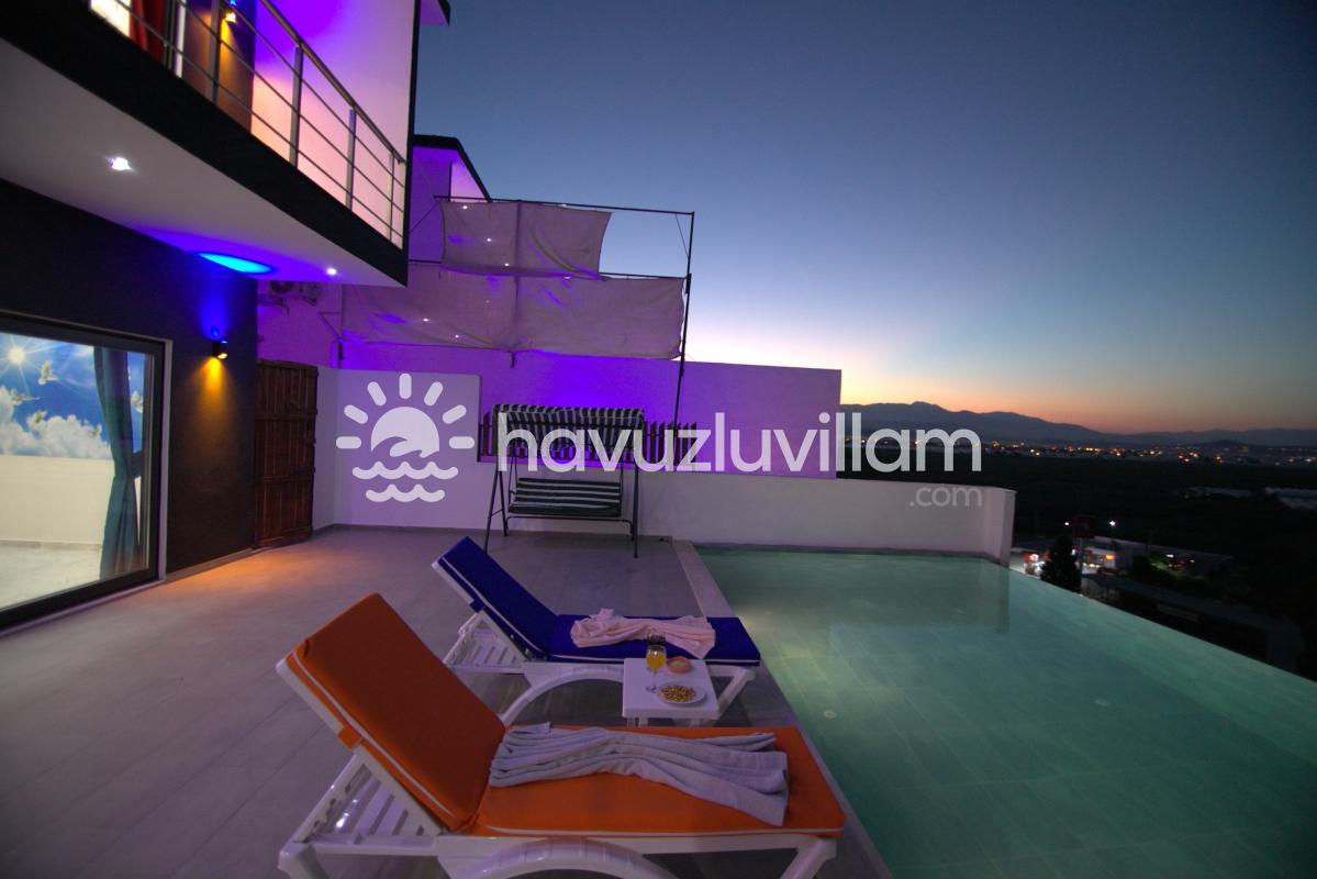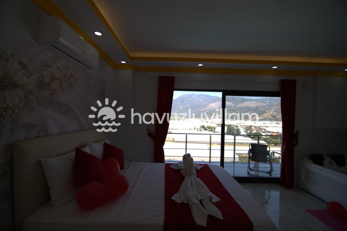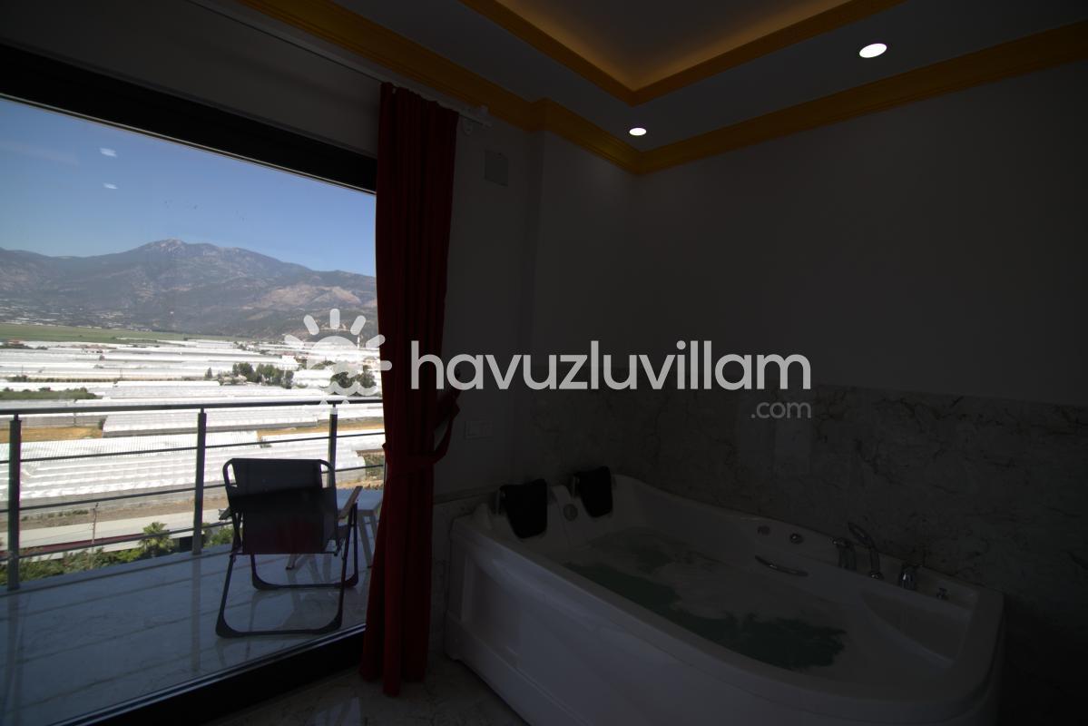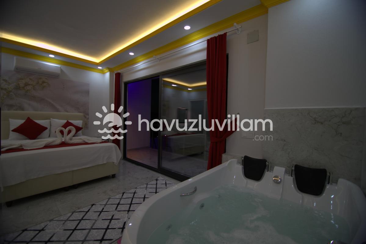 Jakuzili özel havuzu, villada unutulmaz anlar yaşamanızı sağlar. Burada stresinizi atabilir, dinlenebilir ve serinleyebilirsiniz. Ayrıca, balkonlardan doğanın muhteşem manzarasını izleyerek huzur dolu anlar geçirebilirsiniz.