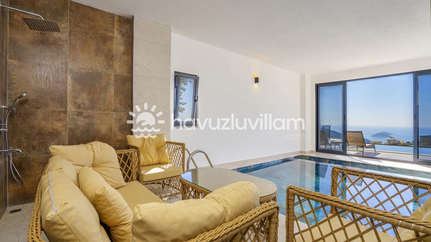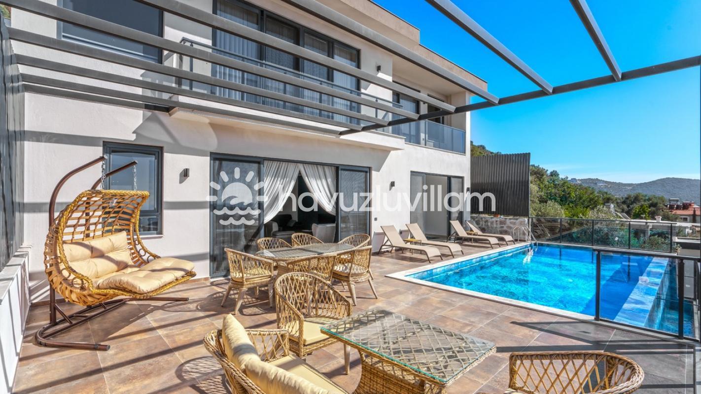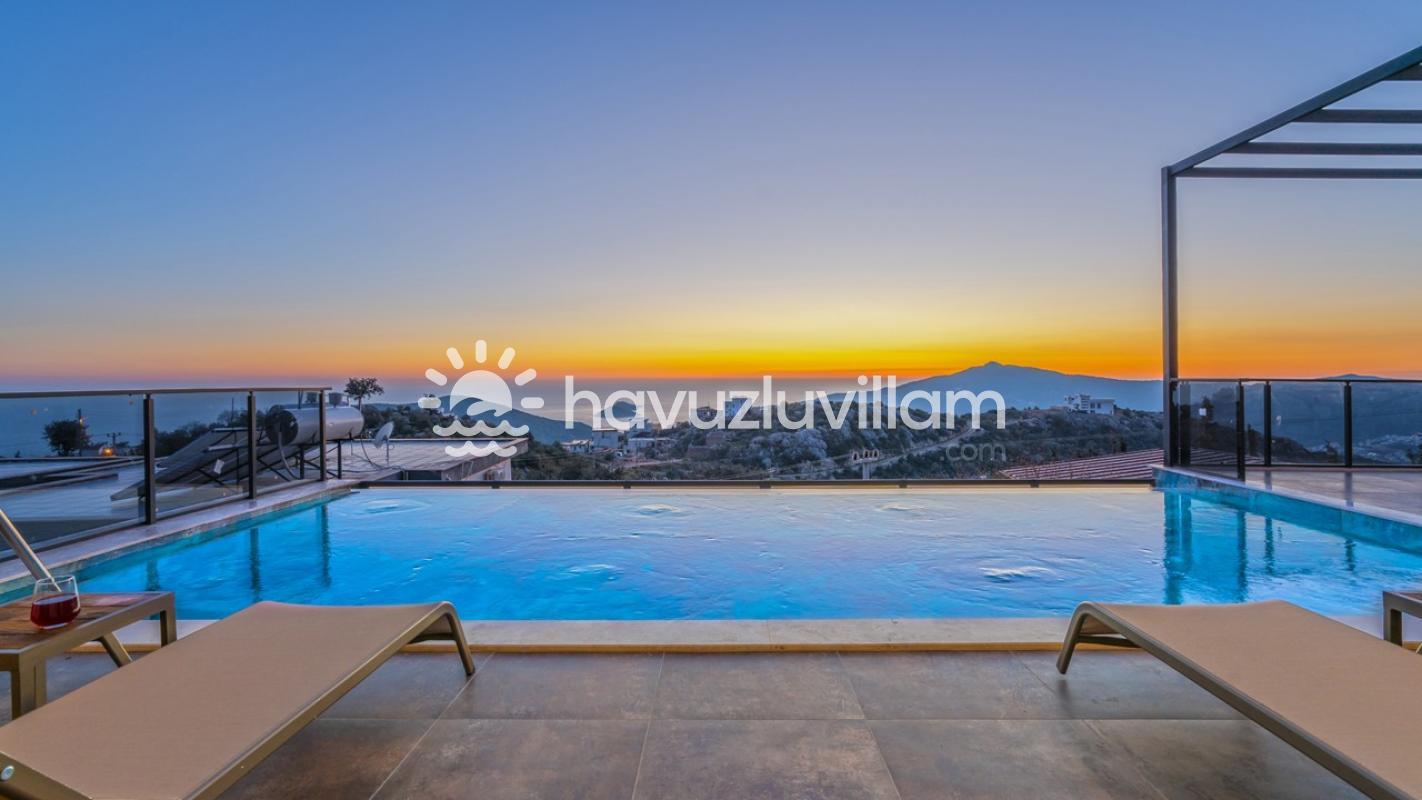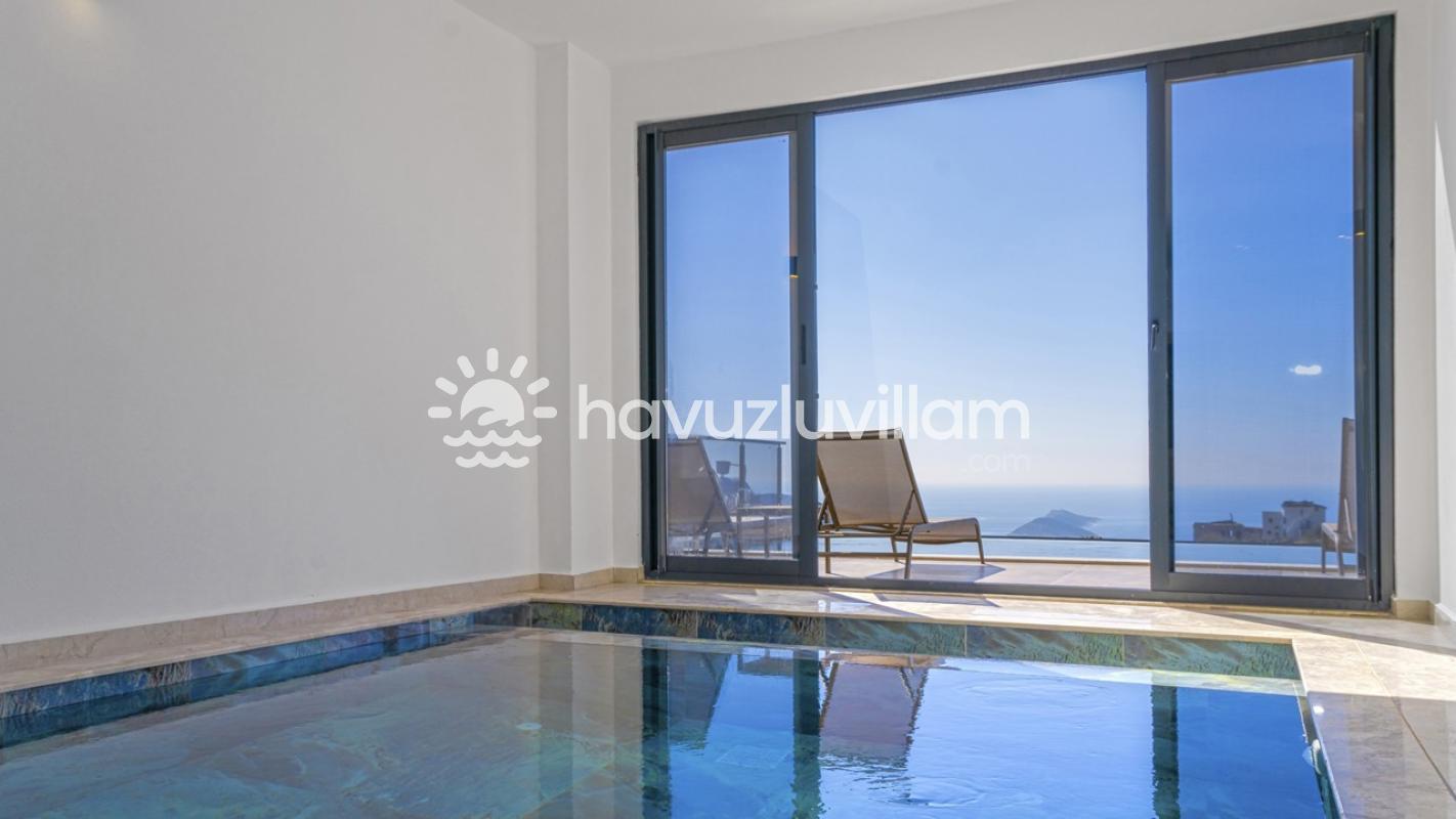 Kalkan'ın eşsiz manzarasını her katından sunan Villa Azra, 3 yatak odası, 2 salonu ve 6 kişilik konaklama kapasitesiyle mükemmel bir tatil kaçamağı sunuyor. Deniz manzaralı geniş havuz terası, Kalkan'ın büyüleyici manzarasını izlerken rahatlatıcı bir ortam sağlar. Villamız, modern jakuzi, hamam ve sauna gibi lüks özelliklerle donatılmıştır, böylece konuklarımız kendi özel spa deneyimlerini yaşayabilirler.