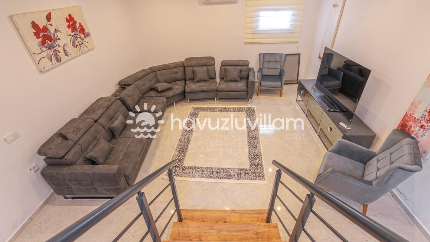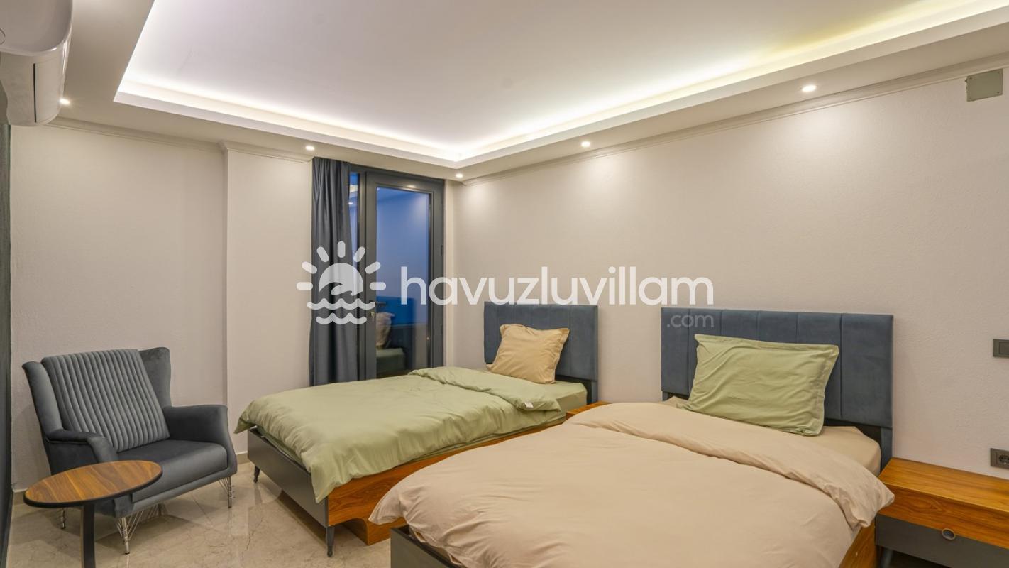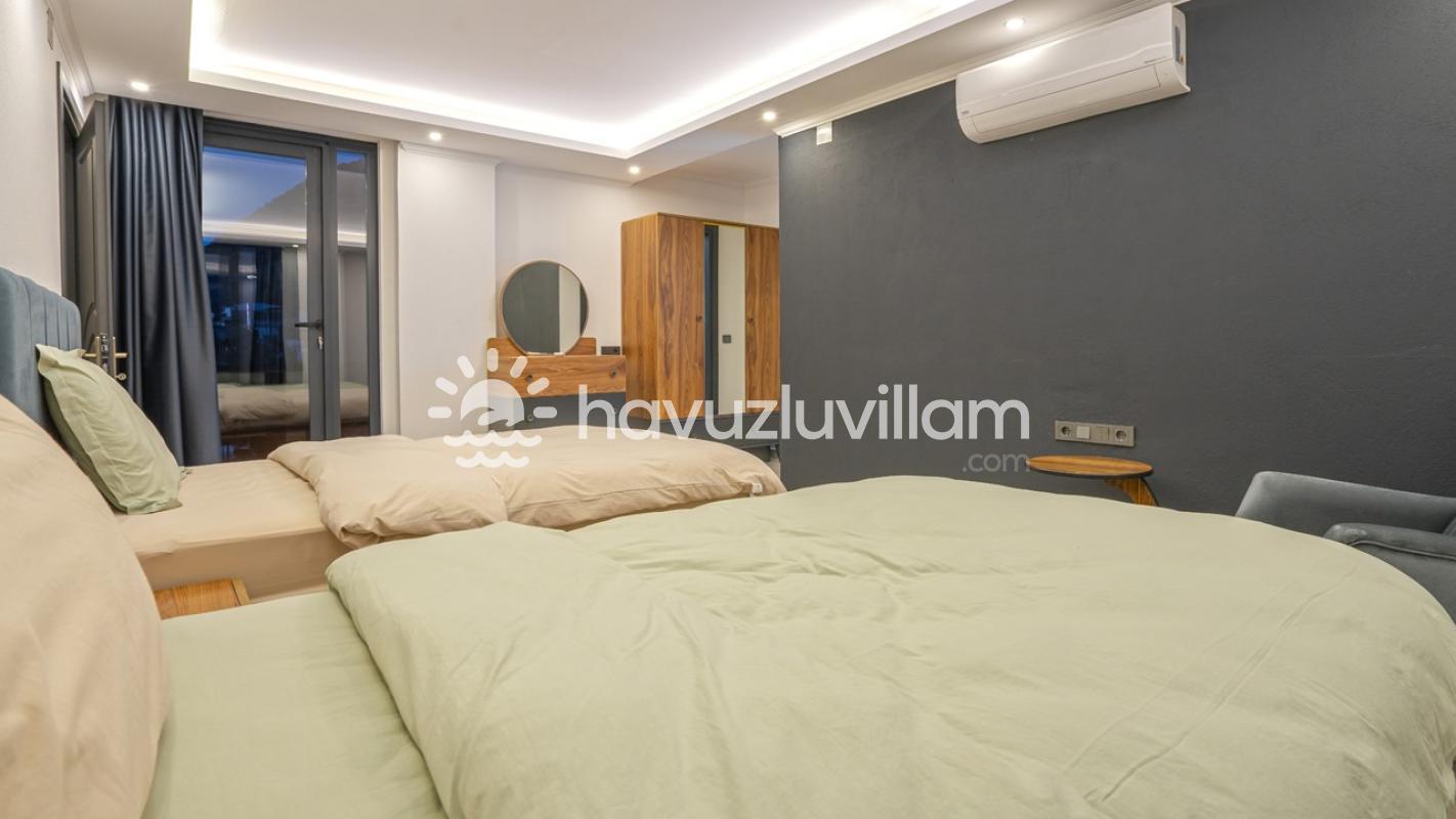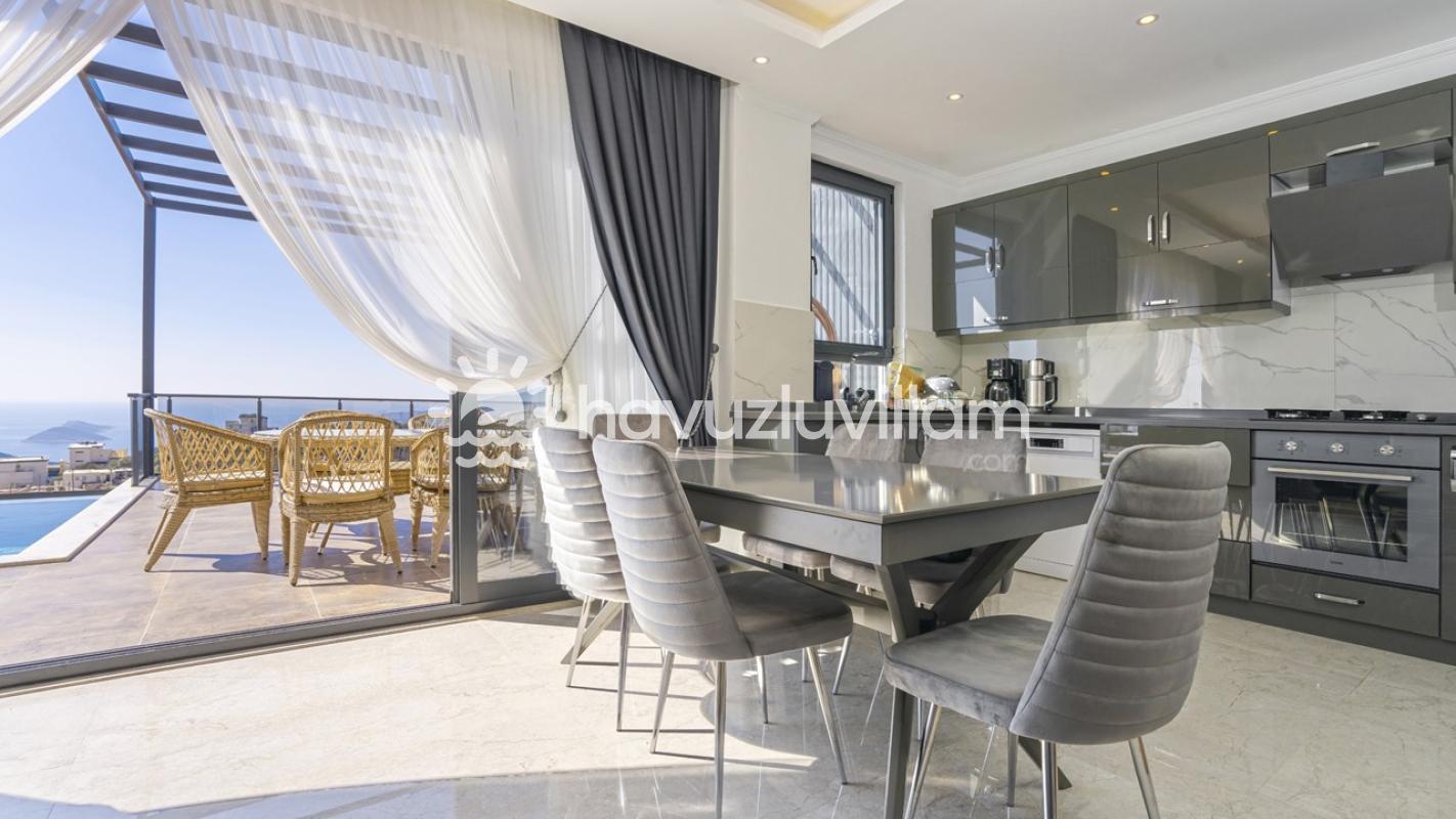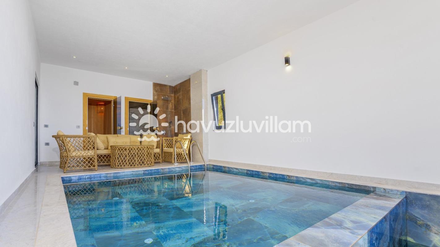 Kalkan'ın eşsiz manzarasını her katından sunan Villa Azra, 3 yatak odası, 2 salonu ve 6 kişilik konaklama kapasitesiyle mükemmel bir tatil kaçamağı sunuyor. Deniz manzaralı geniş havuz terası, Kalkan'ın büyüleyici manzarasını izlerken rahatlatıcı bir ortam sağlar. Villamız, modern jakuzi, hamam ve sauna gibi lüks özelliklerle donatılmıştır, böylece konuklarımız kendi özel spa deneyimlerini yaşayabilirler.