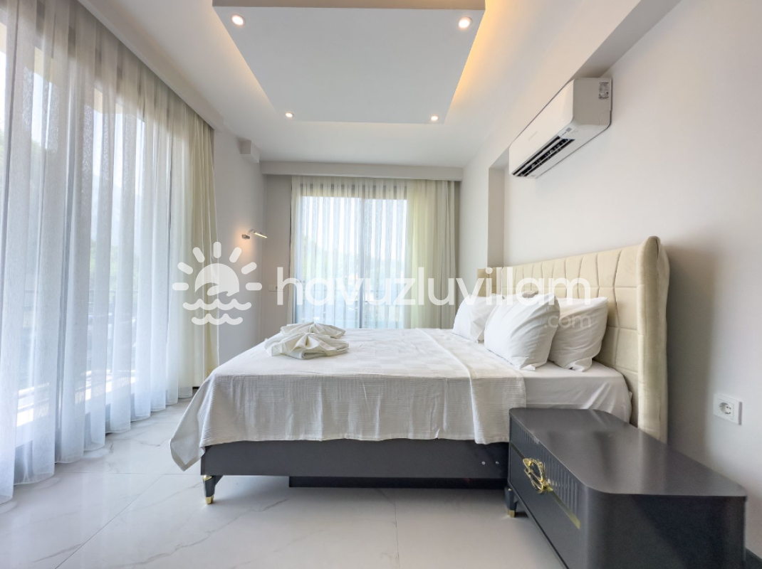 Fethiye'nin göz kamaştıran Ovacık bölgesinde, kusursuz bir konumda yer alır. 4 odalı ve 8 kişilik konaklama kapasitesiyle donatılmış bu muhteşem villa, lüks ve modern yaşamın mükemmel bir kombinasyonunu sunar. Büyük bahçesi ve çağdaş tasarımıyla öne çıkan bu mekân, geniş aileler ve arkadaş grupları için mükemmel bir seçenektir. Ovacık'ın doğal güzelliklerine sıfır konumda olması, misafirlere doğayla iç içe unutulmaz bir deneyim sunar.