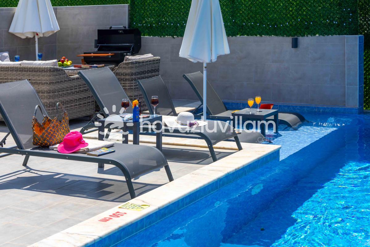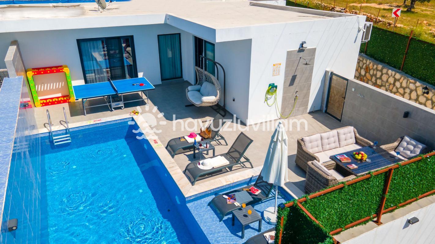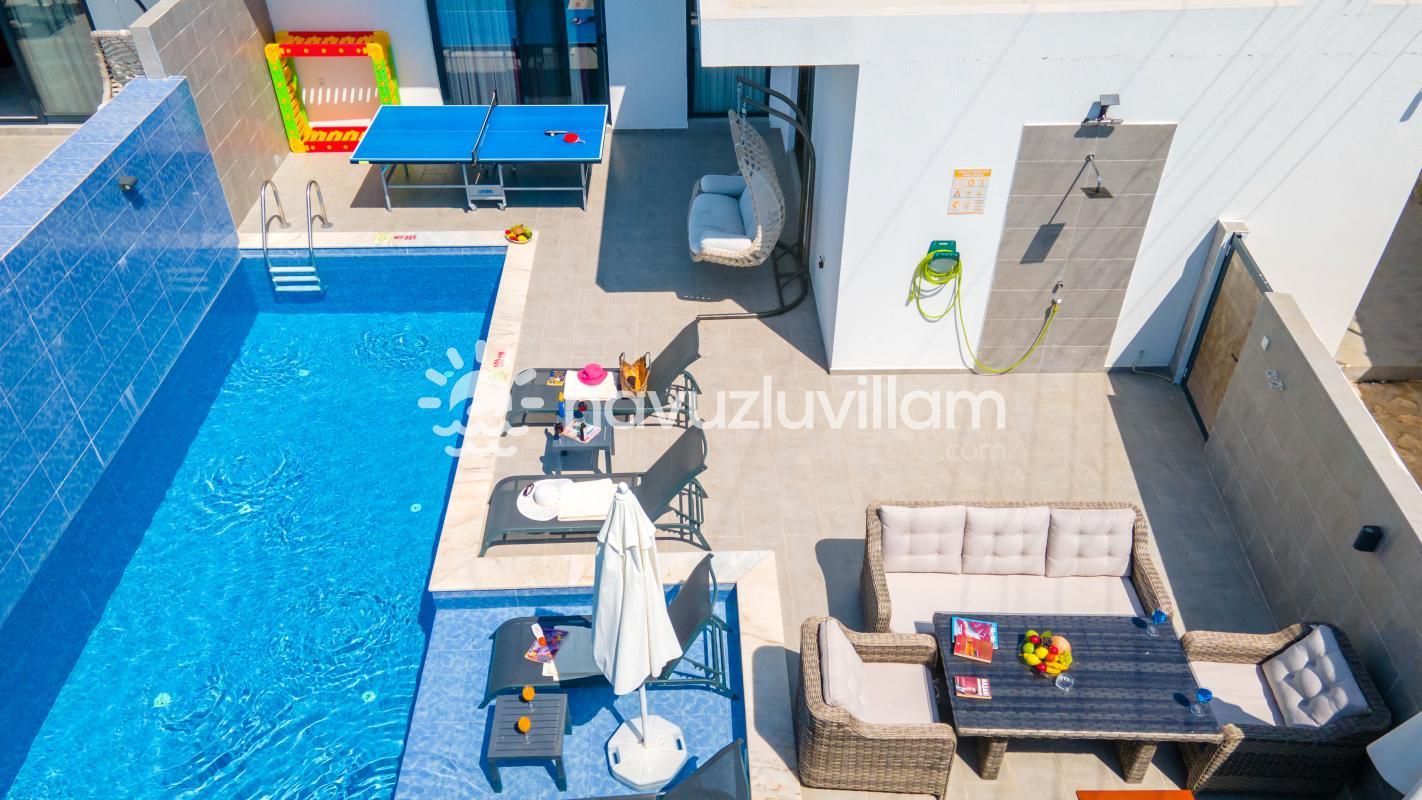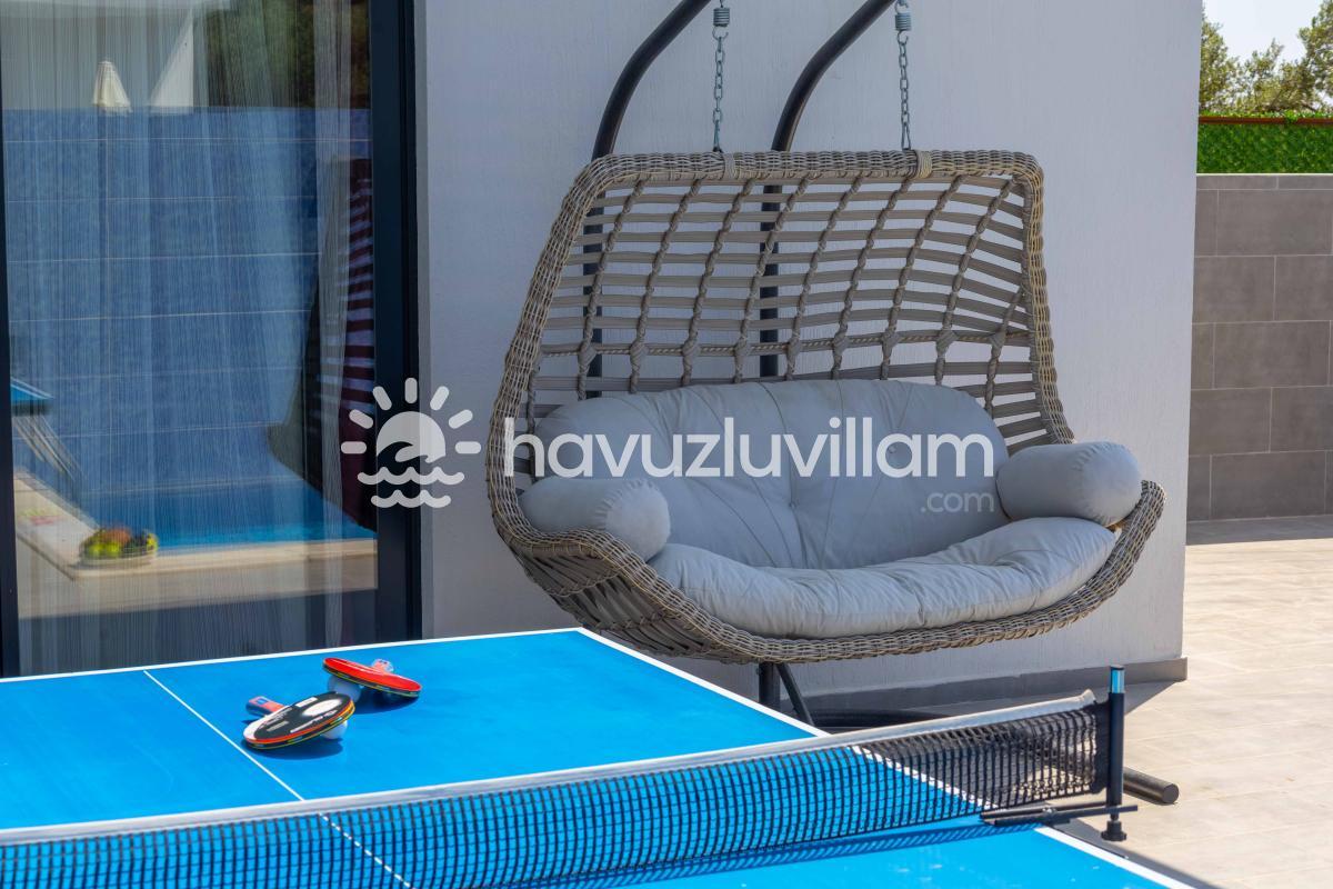 Villa Dafe, özenle düzenlenmiş özel yüzme havuzuyla dinlendirici bir atmosfer sunmaktadır. Tatilin keyfini çıkarmak isteyen konuklar için özel bir barbekü alanı da mevcuttur. Akşamları sevdiklerinizle bir araya gelip mangal keyfi yapabilir ve özel havuzun tadını çıkarabilirsiniz. Ayrıca, villada bulunan masa tenisi ve salıncak gibi aktivitelerle dolu keyifli bir tatil geçirebilirsiniz.