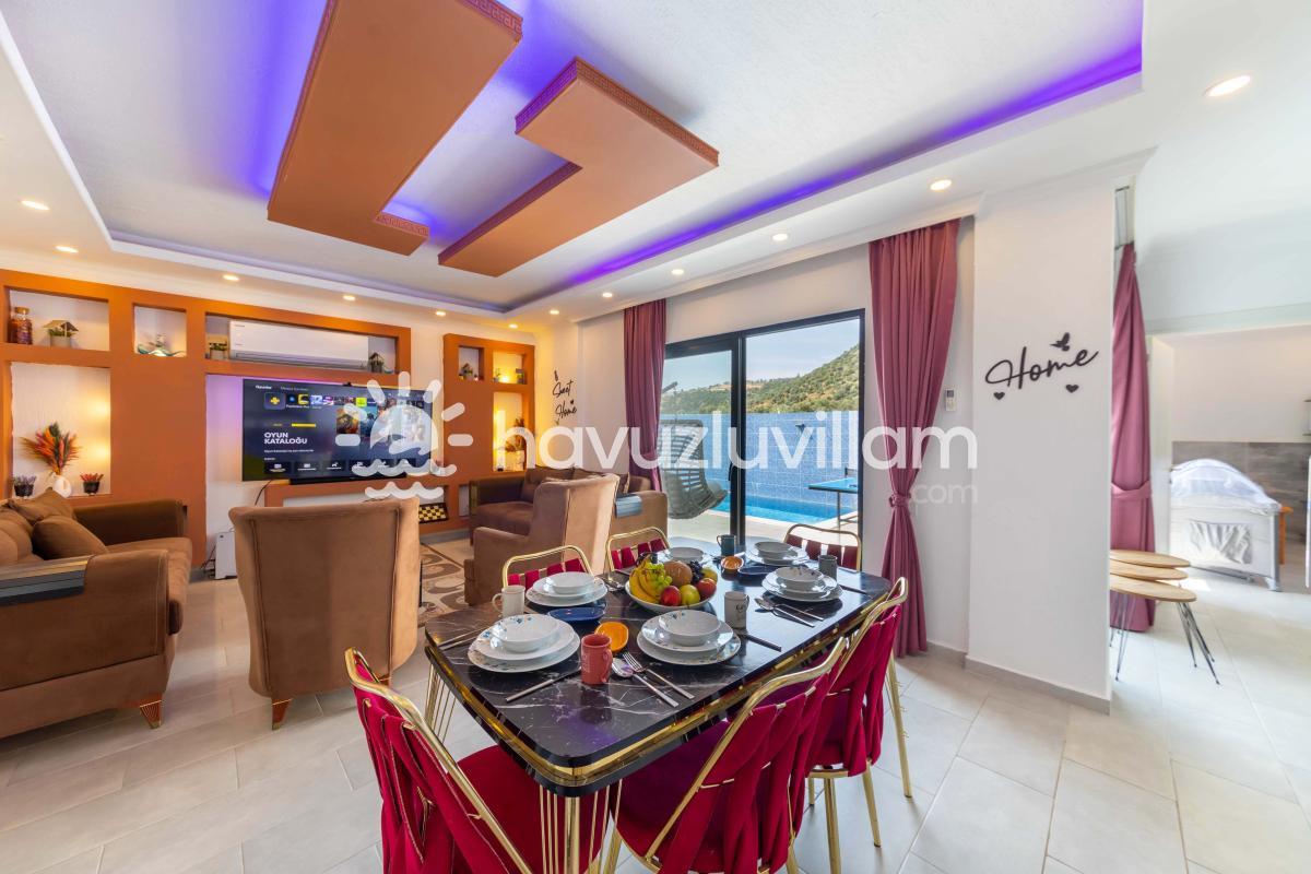 Villa Dafe, sadece konforlu bir konaklama sağlamakla kalmaz, aynı zamanda modern detaylarla zenginleştirilmiş ve güzel bir dekorasyona sahip iç mekanlarıyla da dikkat çeker. Her odası özenle tasarlanmış ve konukların ihtiyaçları düşünülerek donatılmıştır. Geniş pencerelerden içeriye dolan doğal ışık, villanın içinde sıcak ve davetkar bir atmosfer yaratmaktadır.