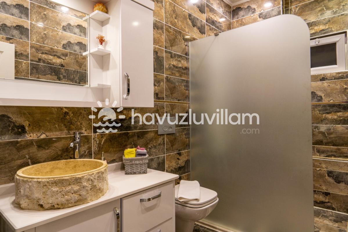 Villanın geniş iç mekanları, modern ve şık bir şekilde dekore edilmiştir. Konforlu oturma alanları, tam donanımlı mutfağı ve ferah yatak odaları ile evinizdeki rahatlığı aratmaz. Villanın bahçesi ve terası, gün boyu doğanın tadını çıkarabileceğiniz mükemmel alanlardır.