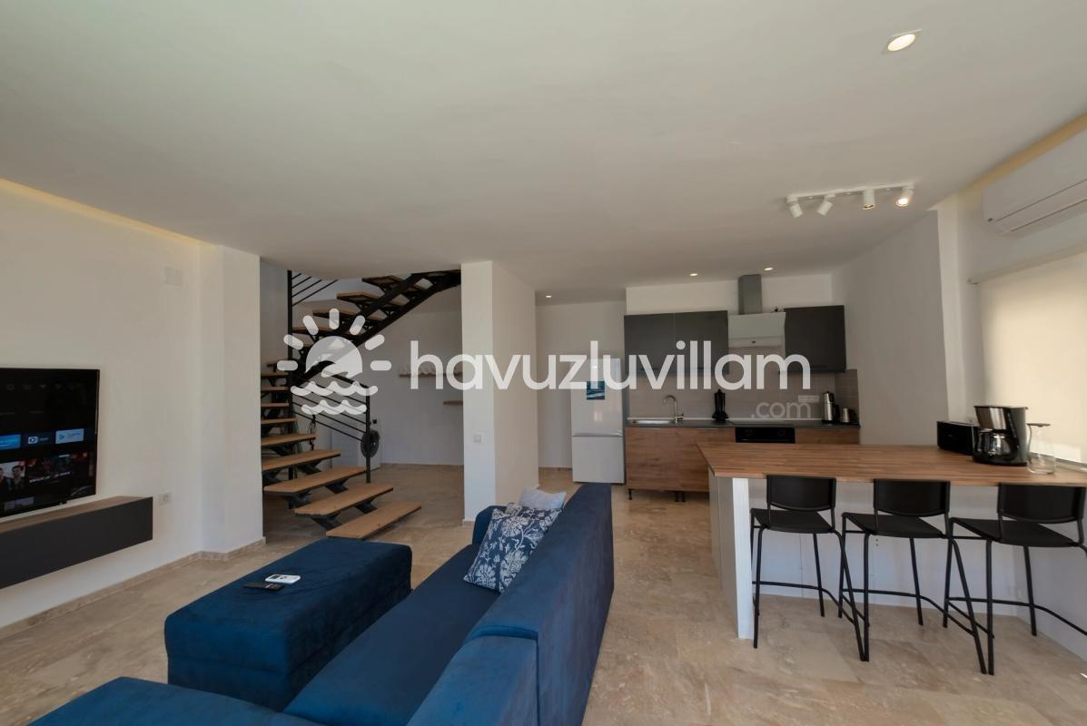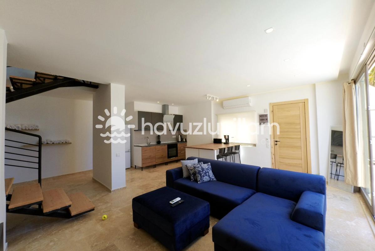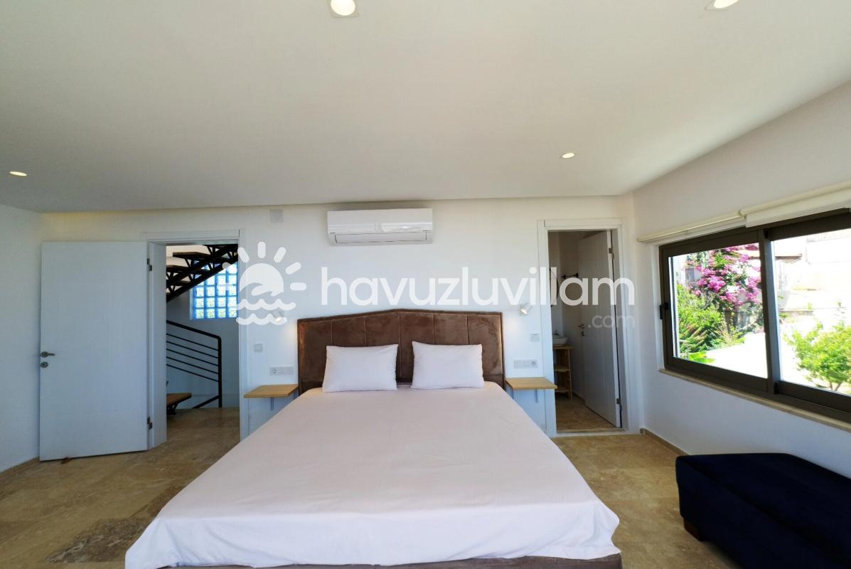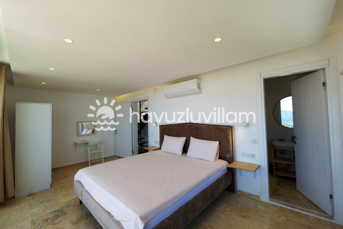 Ebeveyn banyolu ve modern tasarımlı yatak odalarımız, misafirlerimize konforlu bir konaklama deneyimi sunar. Deniz manzaralı terasımızda dinlenebilir, güneşlenebilir ve manzaranın tadını çıkarabilirsiniz. Villa Elma, hem dinlenmek hem de Kalkan'ın cazibesini keşfetmek isteyenler için ideal bir noktada bulunmaktadır.