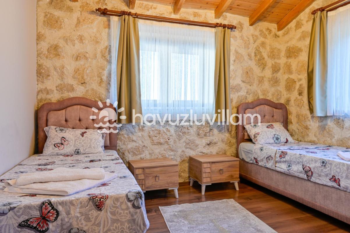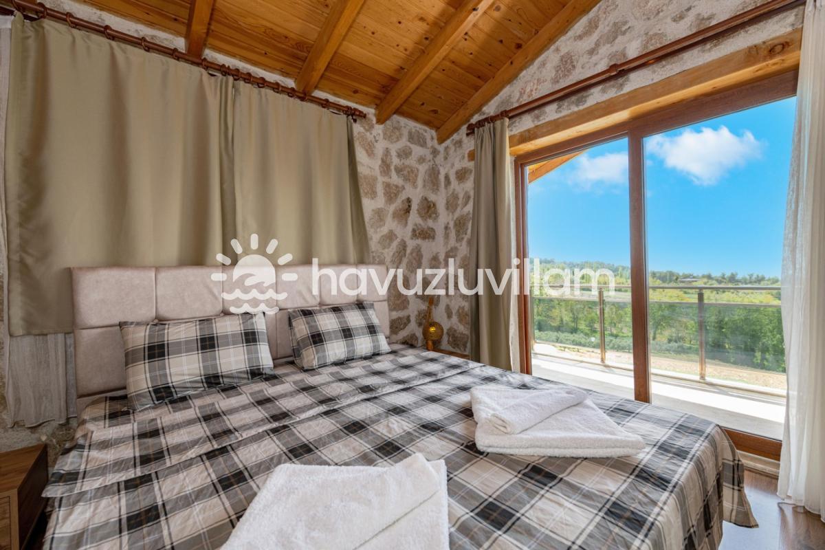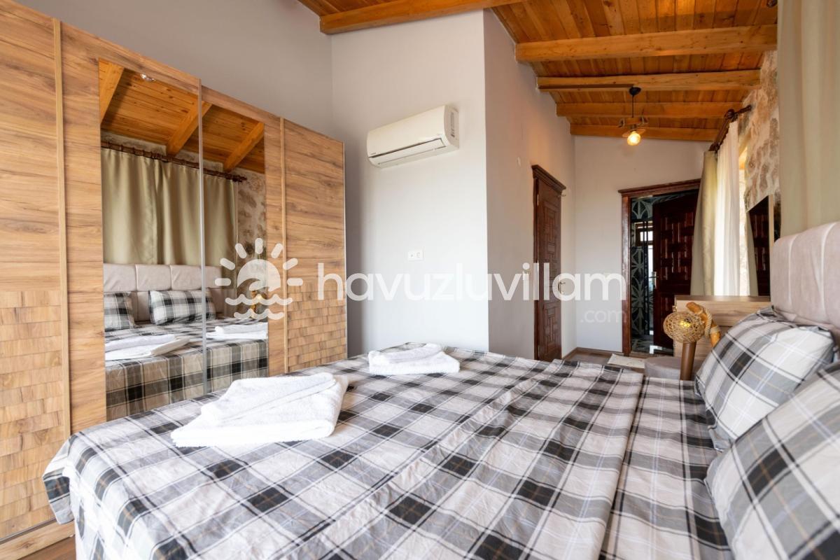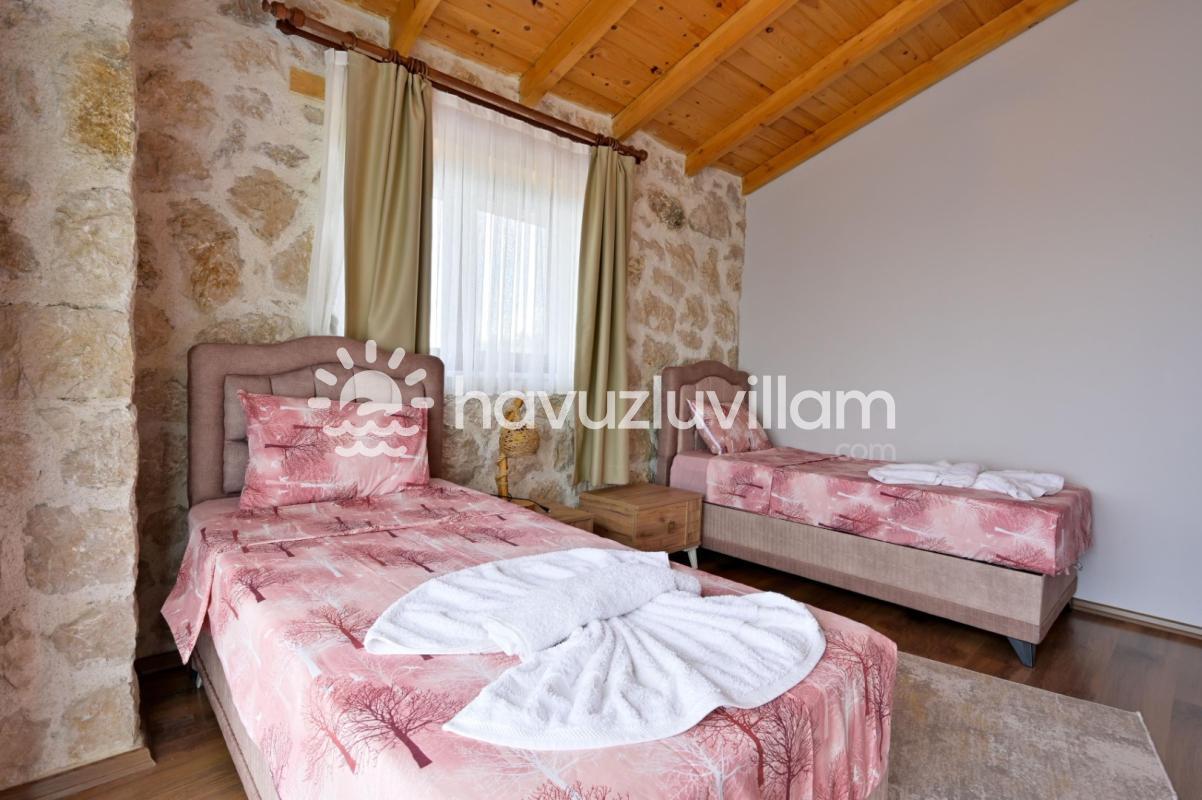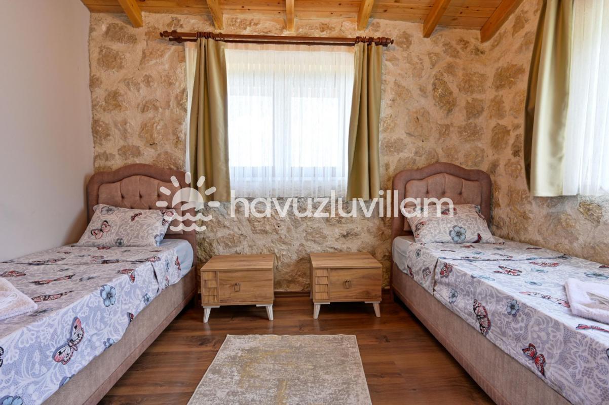 Villamız, 3 yatak odası ve 2 banyo-tuvaleti ile 6 kişilik konaklama kapasitesine sahiptir. Doğanın muhteşem manzarasına sahip 40 m2'lik sonsuzluk havuzumuz, konforlu şezlongları ve bahçe mobilyalarıyla size huzur dolu anlar yaşatır. Yaz akşamlarının vazgeçilmezi barbekü alanımızda sevdiklerinizle keyifli vakit geçirebilirsiniz. Taş ve ahşabın uyumunu görebileceğiniz geniş kullanım alanlarına sahip villamız, şöminesi ve lüks mobilyalarıyla geniş aileler için idealdir. Villamızda bulunan çocuk havuzu ile Minik misafirlerimizi de unutmayan Villa Erdem siz değerli misafirlerimizi ağırlamak için sabırsızlanıyor