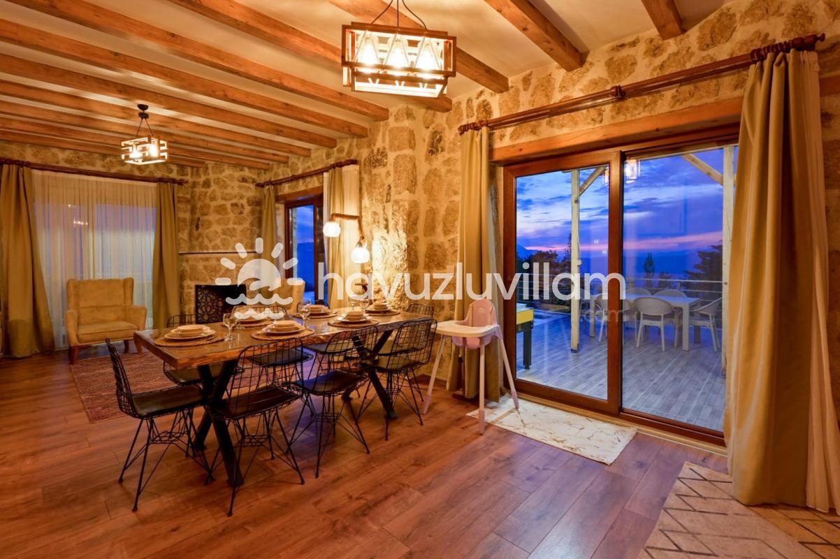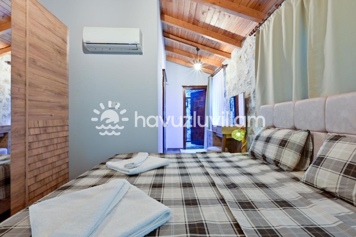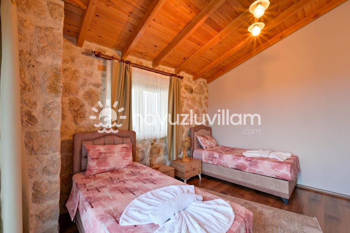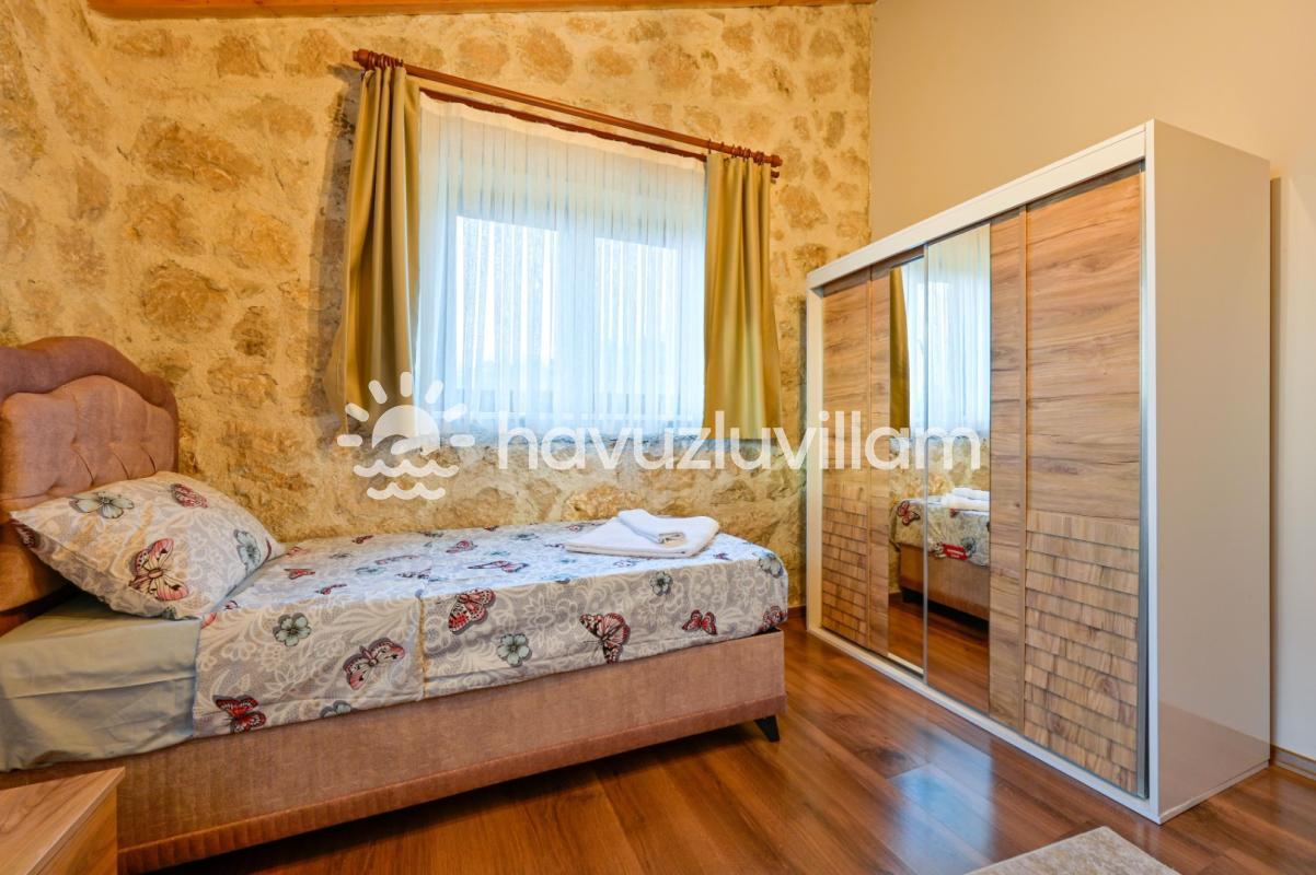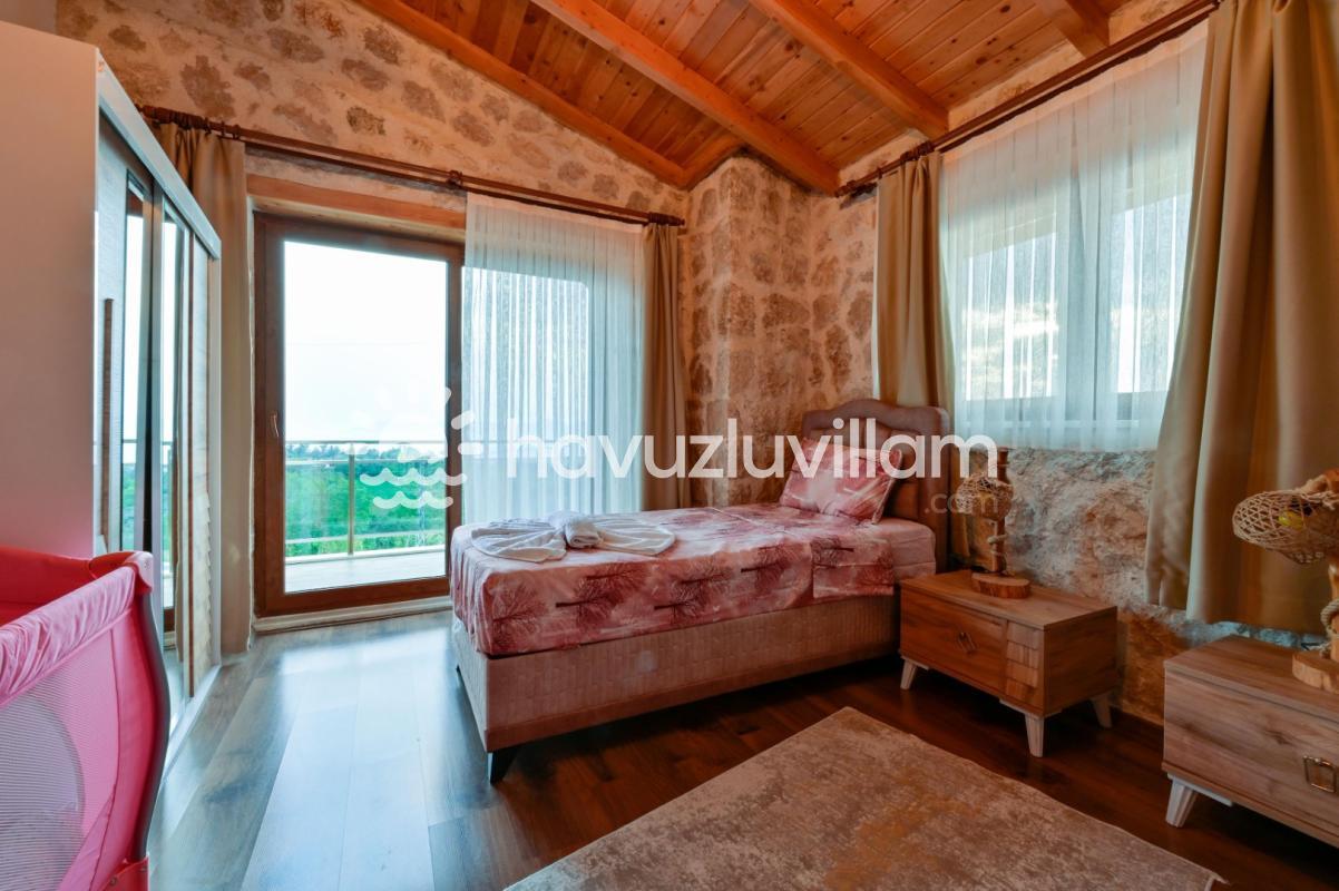 Villamız, 3 yatak odası ve 2 banyo-tuvaleti ile 6 kişilik konaklama kapasitesine sahiptir. Doğanın muhteşem manzarasına sahip 40 m2'lik sonsuzluk havuzumuz, konforlu şezlongları ve bahçe mobilyalarıyla size huzur dolu anlar yaşatır. Yaz akşamlarının vazgeçilmezi barbekü alanımızda sevdiklerinizle keyifli vakit geçirebilirsiniz. Taş ve ahşabın uyumunu görebileceğiniz geniş kullanım alanlarına sahip villamız, şöminesi ve lüks mobilyalarıyla geniş aileler için idealdir. Villamızda bulunan çocuk havuzu ile Minik misafirlerimizi de unutmayan Villa Erdem siz değerli misafirlerimizi ağırlamak için sabırsızlanıyor
