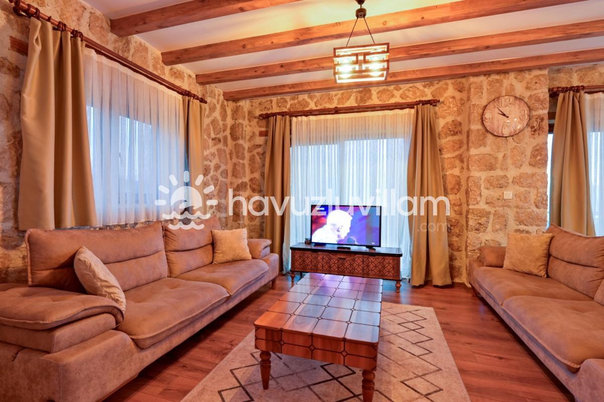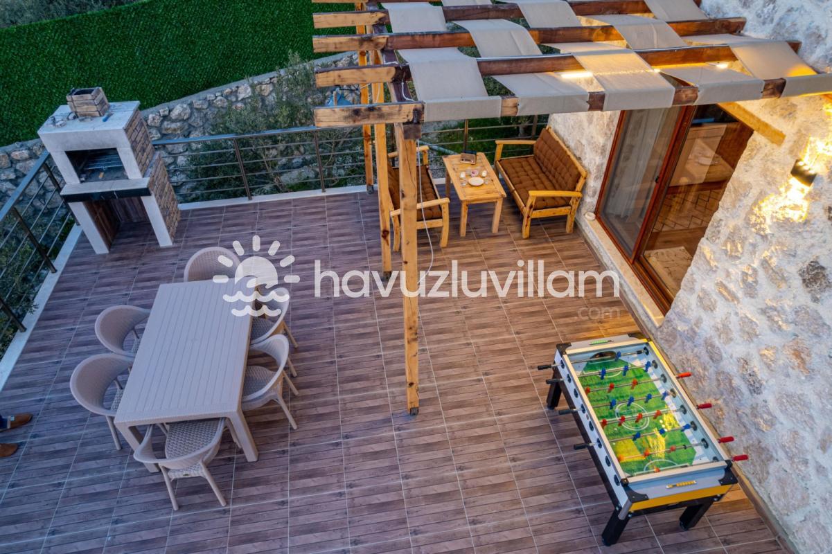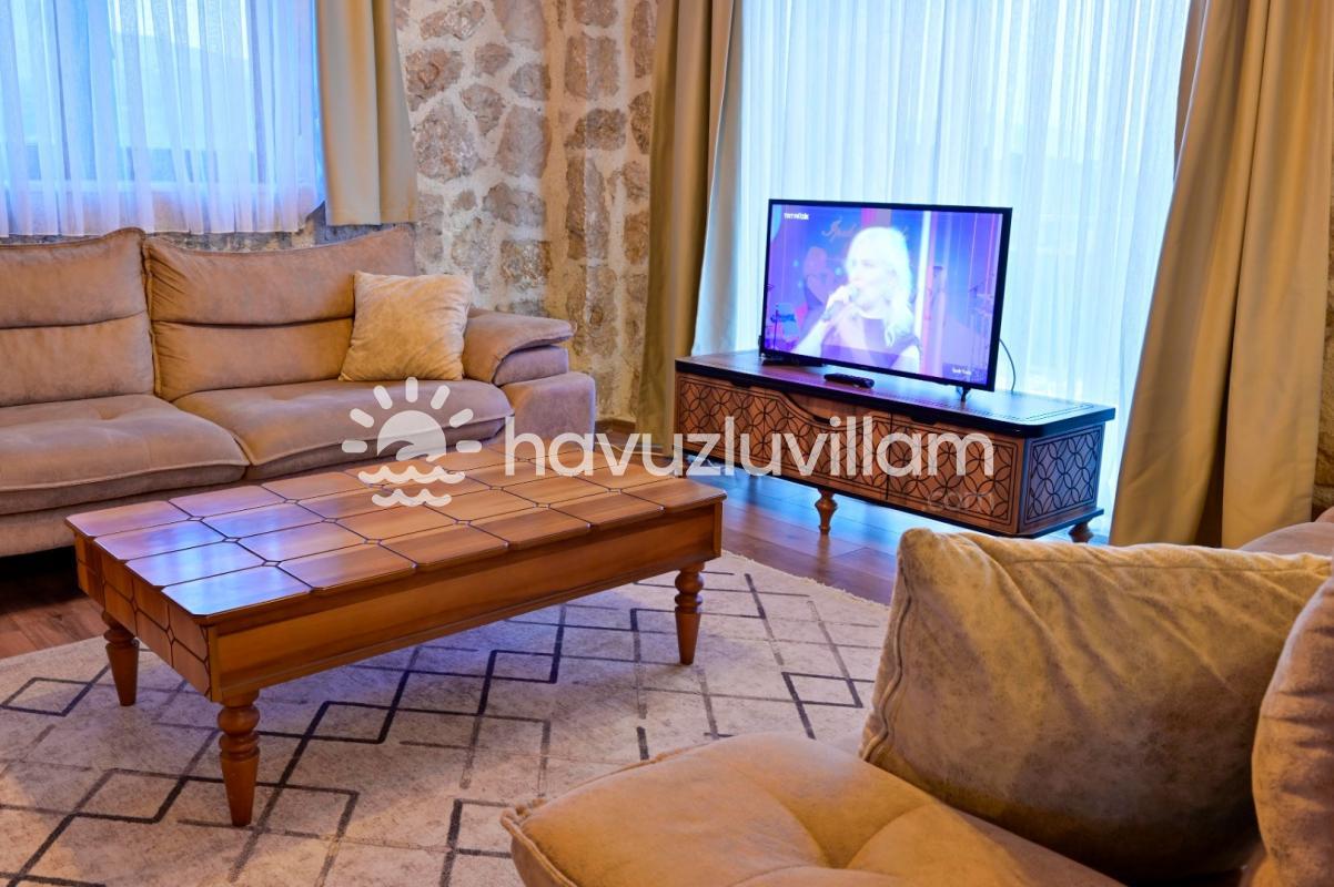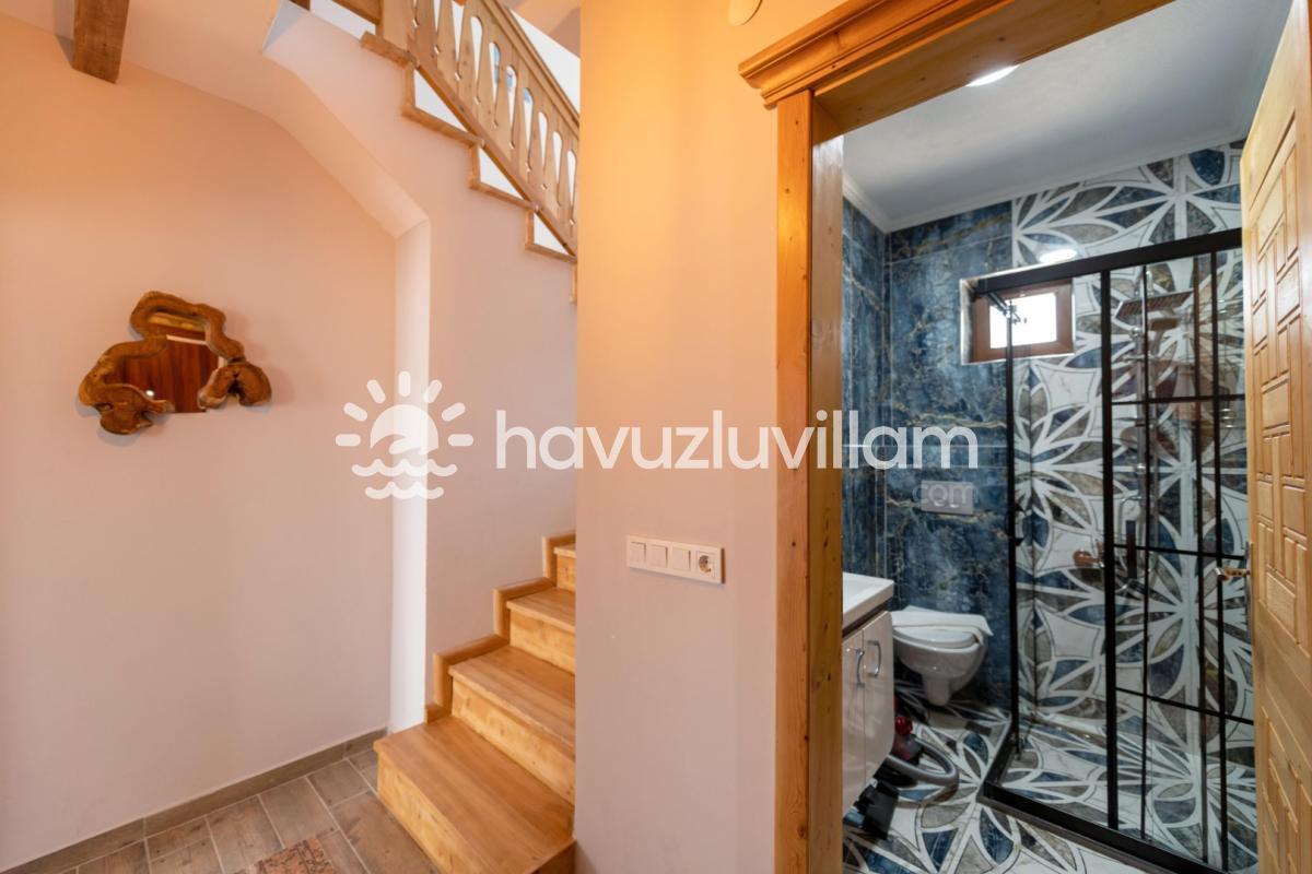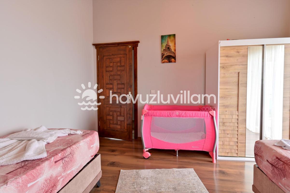 Villamız, 3 yatak odası ve 2 banyo-tuvaleti ile 6 kişilik konaklama kapasitesine sahiptir. Doğanın muhteşem manzarasına sahip 40 m2'lik sonsuzluk havuzumuz, konforlu şezlongları ve bahçe mobilyalarıyla size huzur dolu anlar yaşatır. Yaz akşamlarının vazgeçilmezi barbekü alanımızda sevdiklerinizle keyifli vakit geçirebilirsiniz. Taş ve ahşabın uyumunu görebileceğiniz geniş kullanım alanlarına sahip villamız, şöminesi ve lüks mobilyalarıyla geniş aileler için idealdir. Villamızda bulunan çocuk havuzu ile Minik misafirlerimizi de unutmayan Villa Erdem siz değerli misafirlerimizi ağırlamak için sabırsızlanıyor