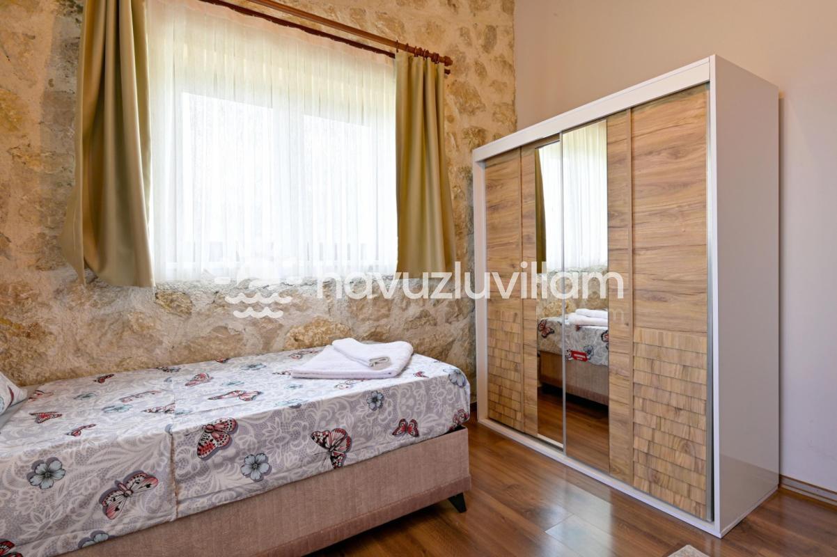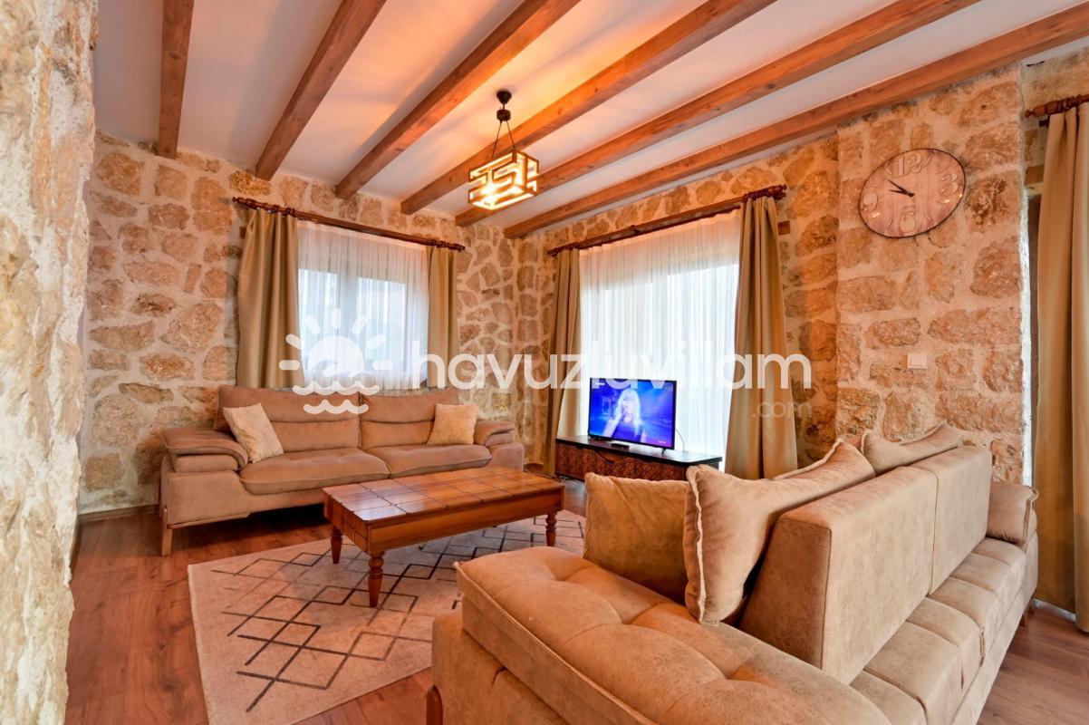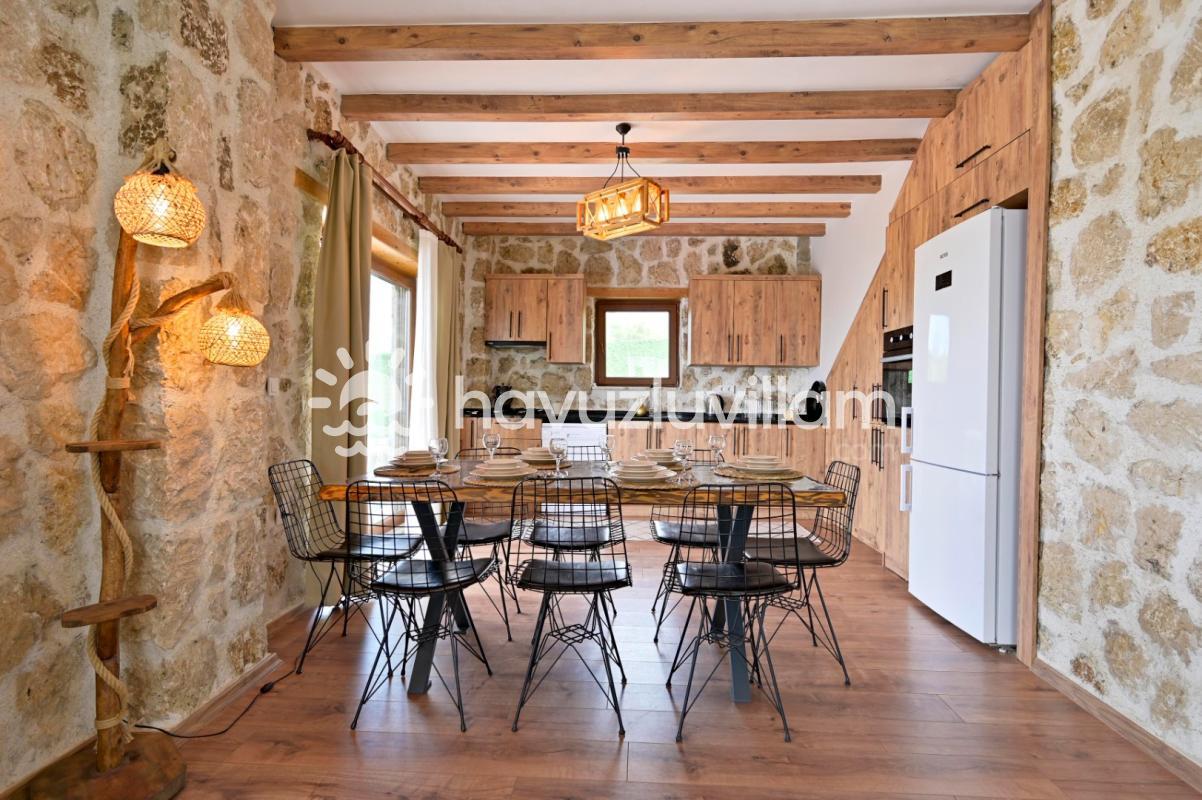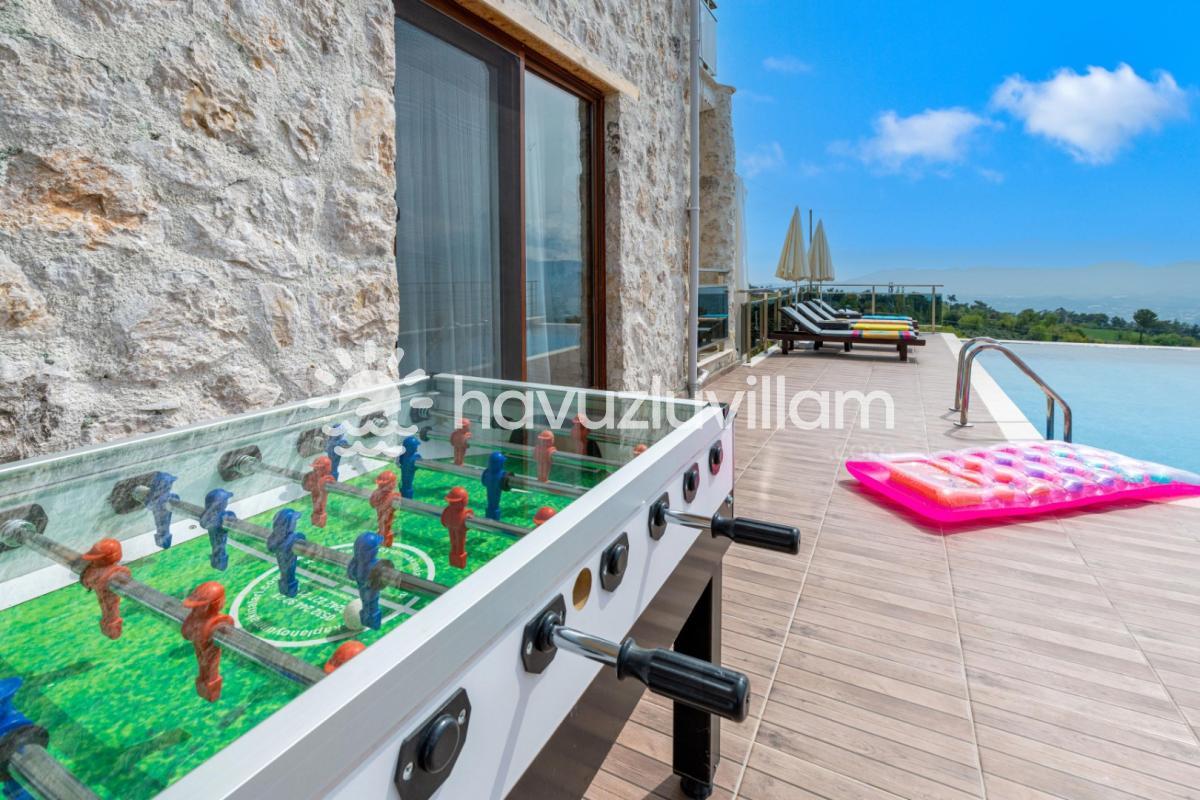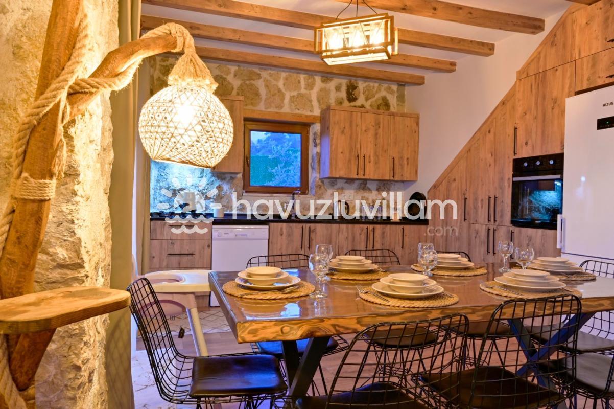 Villamız, 3 yatak odası ve 2 banyo-tuvaleti ile 6 kişilik konaklama kapasitesine sahiptir. Doğanın muhteşem manzarasına sahip 40 m2'lik sonsuzluk havuzumuz, konforlu şezlongları ve bahçe mobilyalarıyla size huzur dolu anlar yaşatır. Yaz akşamlarının vazgeçilmezi barbekü alanımızda sevdiklerinizle keyifli vakit geçirebilirsiniz. Taş ve ahşabın uyumunu görebileceğiniz geniş kullanım alanlarına sahip villamız, şöminesi ve lüks mobilyalarıyla geniş aileler için idealdir. Villamızda bulunan çocuk havuzu ile Minik misafirlerimizi de unutmayan Villa Erdem siz değerli misafirlerimizi ağırlamak için sabırsızlanıyor