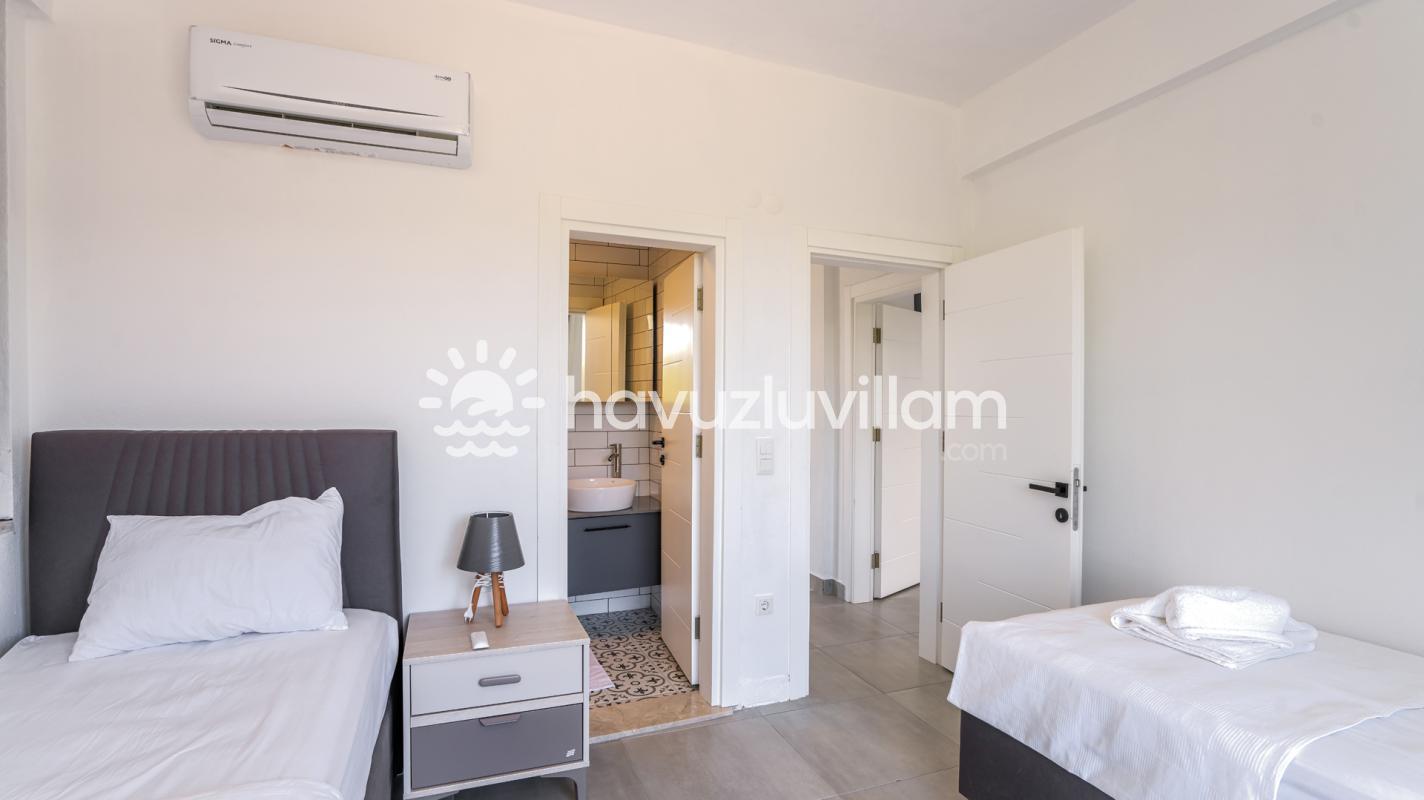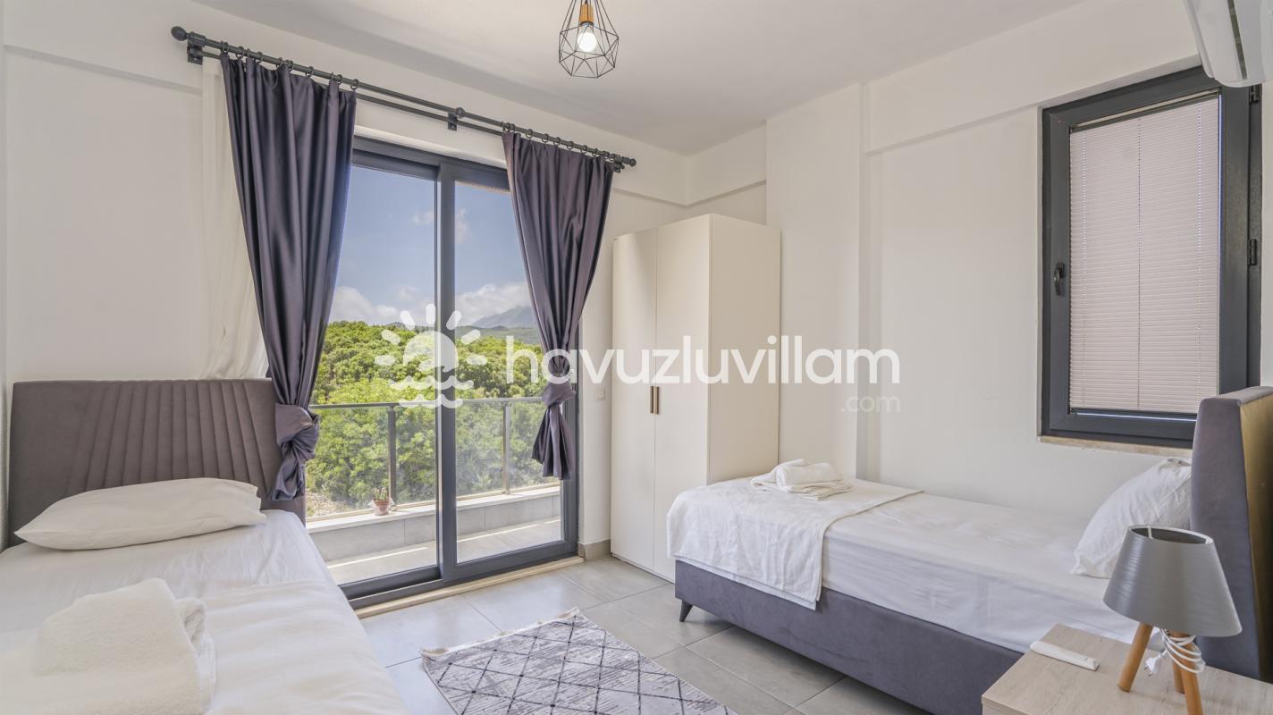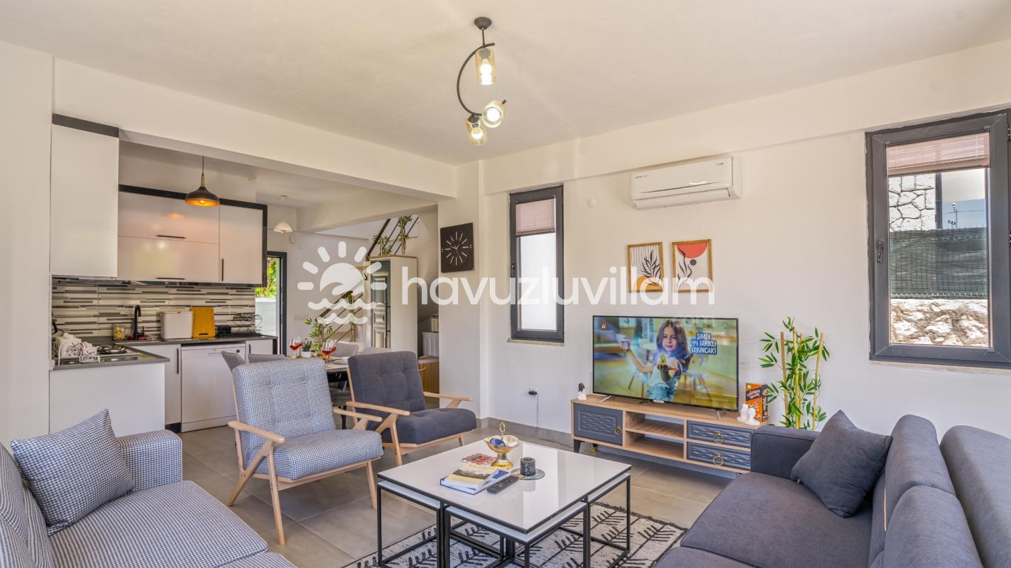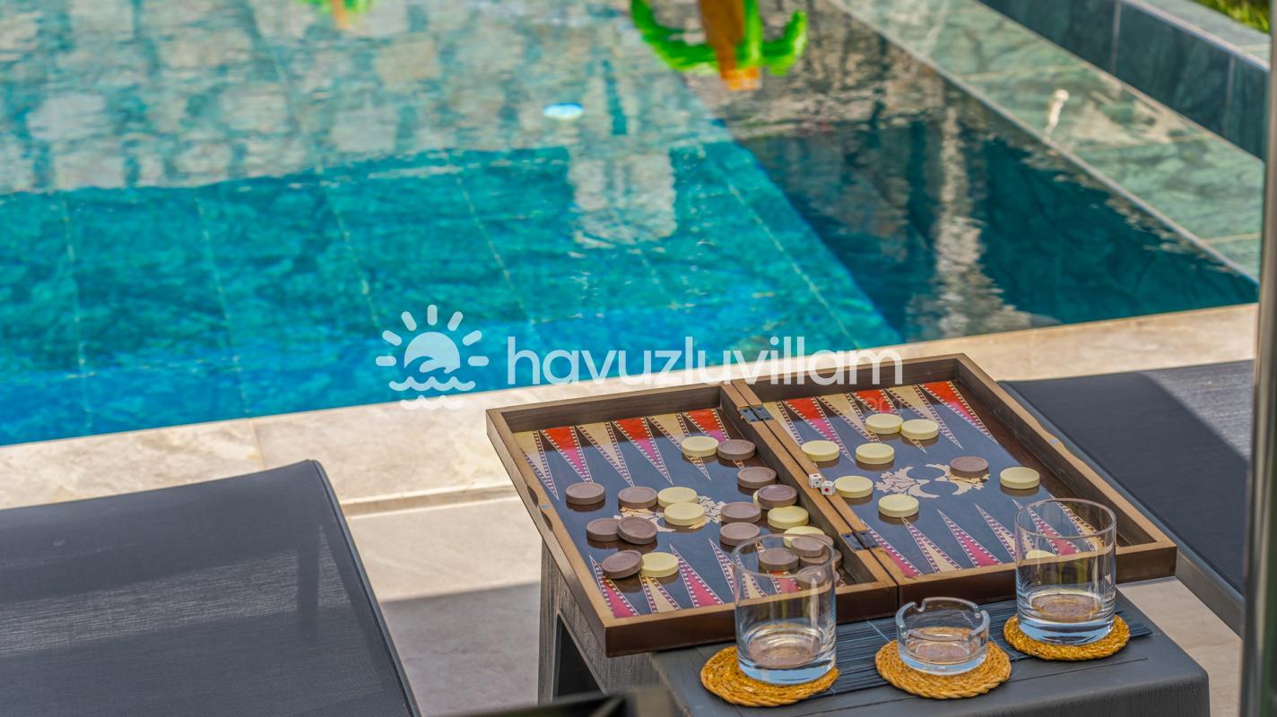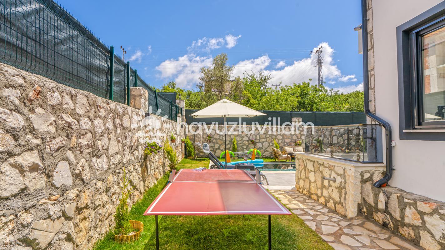 Özenle dekore edilmiş iç mekanları, modern ve şık detaylarla dolu. Villanın özel havuzu, tatil boyunca serinlemek ve dinlenmek için mükemmel bir alan sunarken, masa tenisi ve salıncak gibi aktivitelerle keyifli zamanlar geçirmenizi sağlıyor.