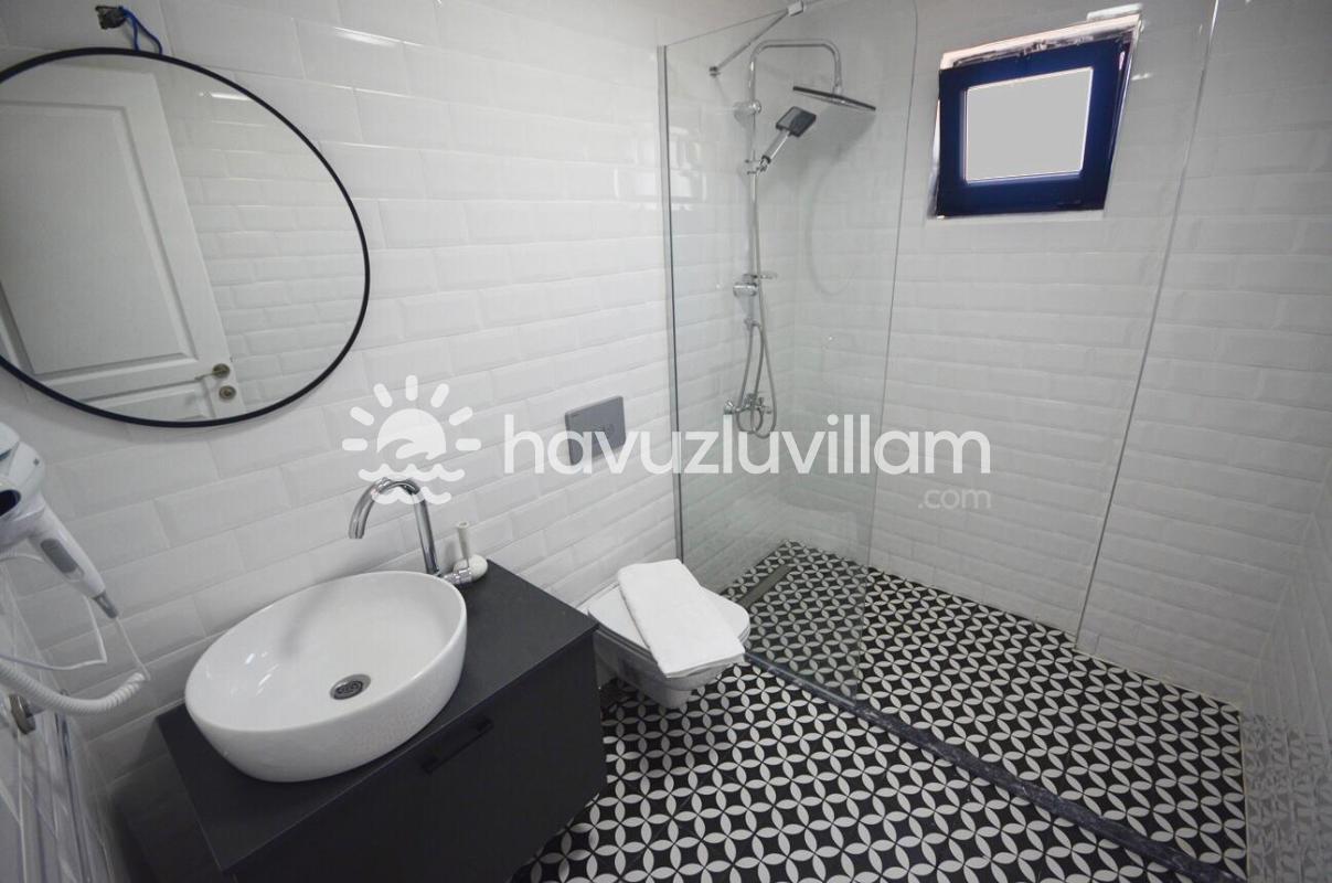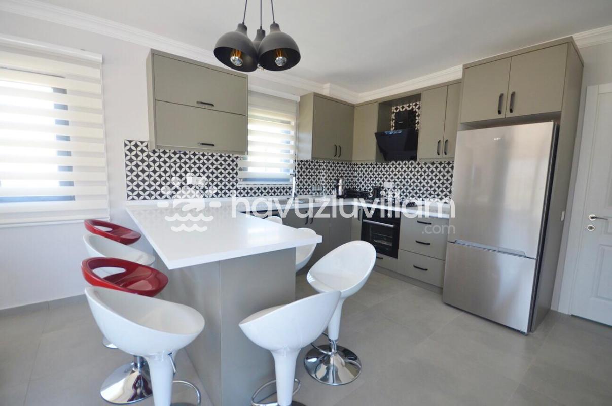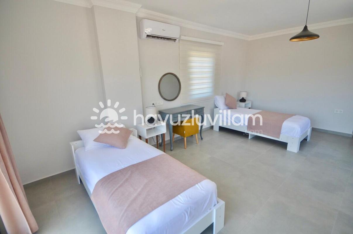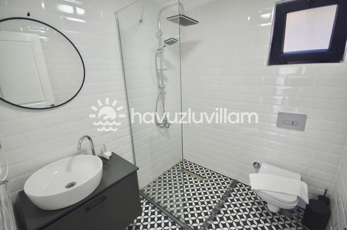 Villa Green Hill Villası, geniş bir özel havuza ve çocuk havuzuna sahiptir. Havuzun etrafı korunaklıdır, bu da özellikle muhafazakar villa tatili arayan misafirler için ideal bir seçenek sunar. Havuzun keyfini çıkarırken güneşlenmek veya serinlemek için mükemmel bir alana sahip olacaksınız.