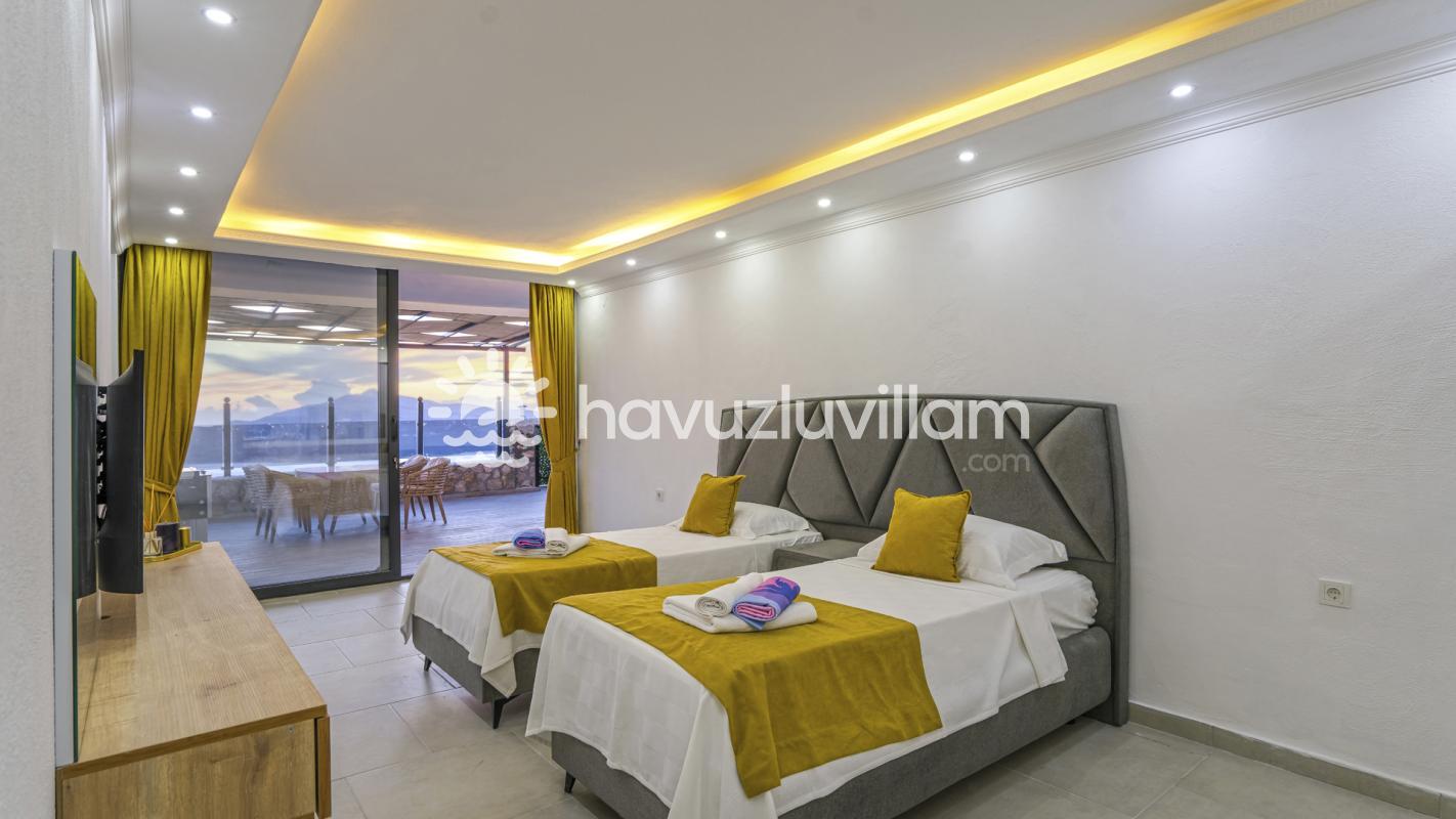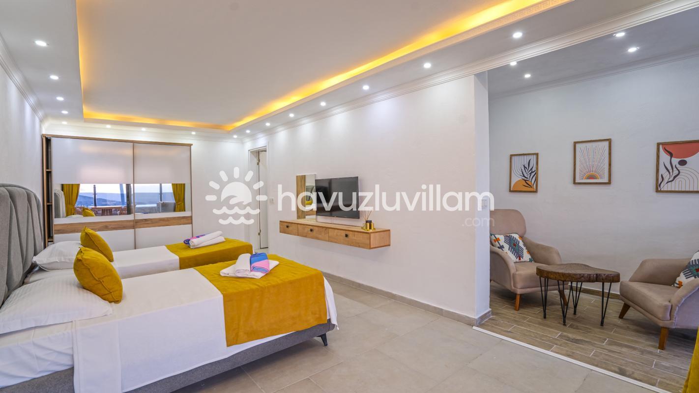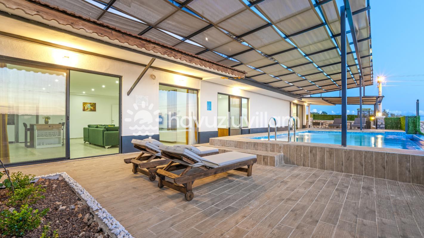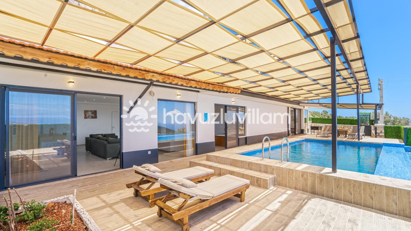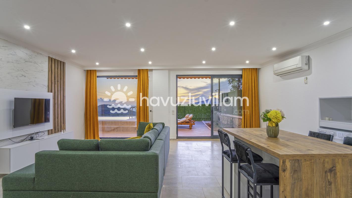 Villa Güneş Duo'nun en belirgin özelliklerinden biri, eşsiz deniz manzarasına sahip olmasıdır. Her sabah güne, turkuaz suların enginliğine ve mavinin tonlarına karşı keyifle başlayabilirsiniz. Villanın geniş teraslarından ve balkonlarından gün batımını izlemek ise unutulmaz anılar biriktirmenize yardımcı olacaktır.