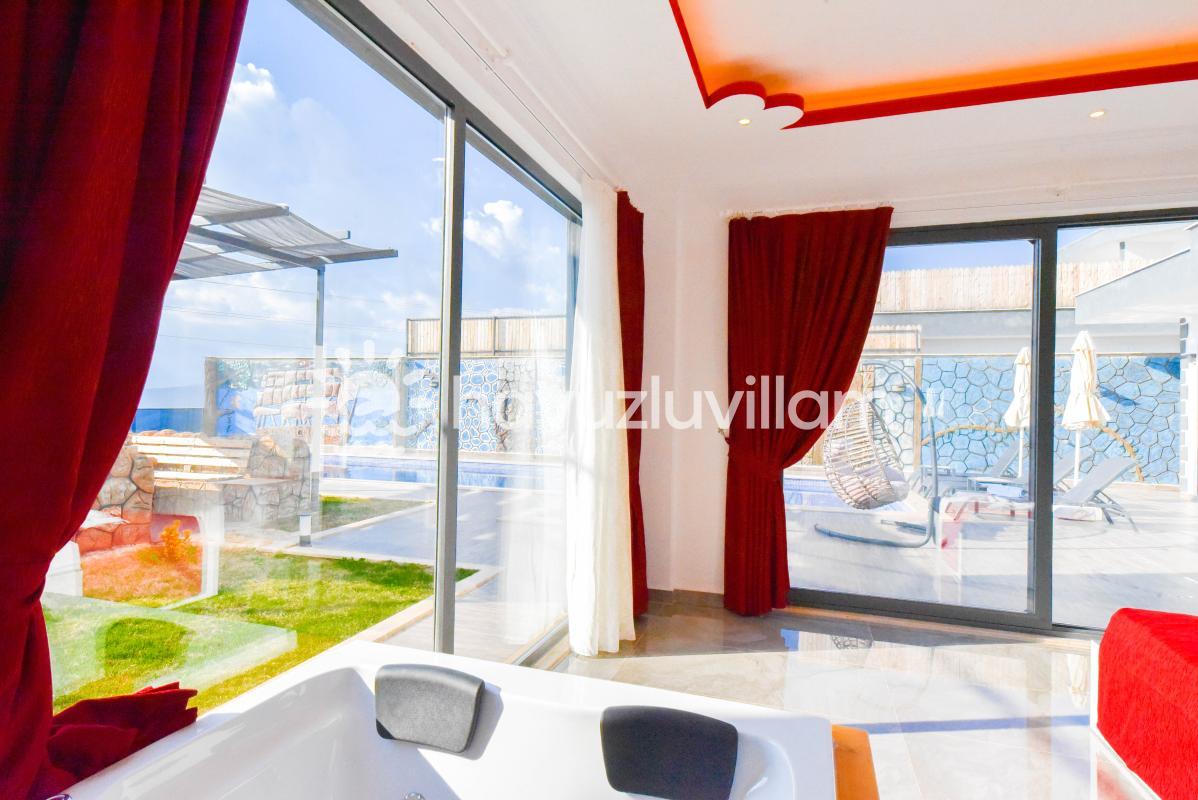 Şık ve minimalist tasarımıyla dikkat çeken jakuzili kiralık villamız, birinci sınıf kalitede eşyalarla donatılmıştır. Özellikle balayı çiftleri ve çekirdek aileler için ideal olan özel havuzlu villamızda, konfor ve rahatlık ön plandadır. Ayrıca, geniş bahçe alanıyla doğanın içinde huzurlu bir konaklama imkanı sunmaktadır.