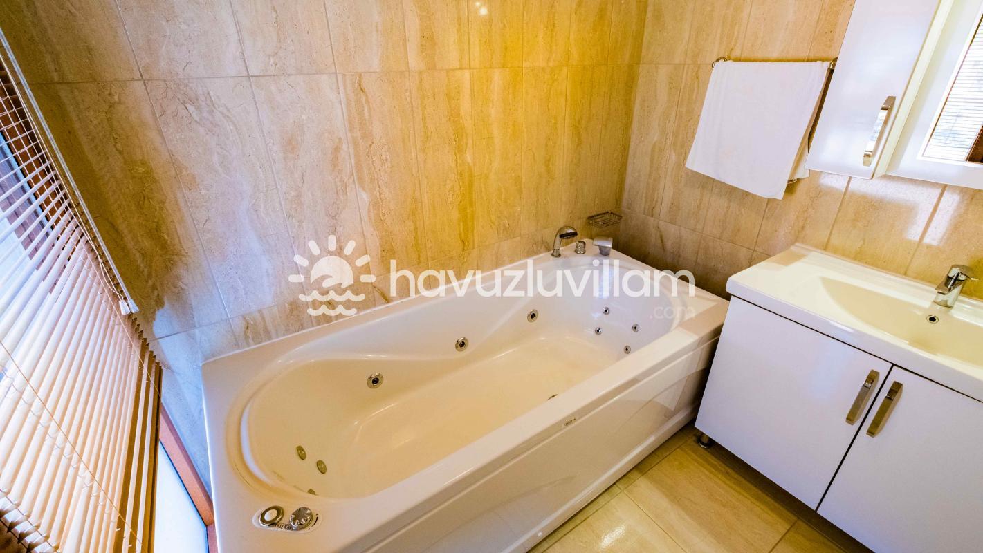 Yeşilin her tonunun hakim olduğu bu doğal ortamda bulunan Villa Kaya Çukurbağ, havuz terasının korunaklı olmasıyla muhafazakar aileler için de ideal bir seçenektir. İzole ve temassız bir tatil yapma isteğinize cevap vermek üzere özenle tasarlanan bu villa, jakuzili villalar kategorisinde yer alarak size özel bir konfor sunar.