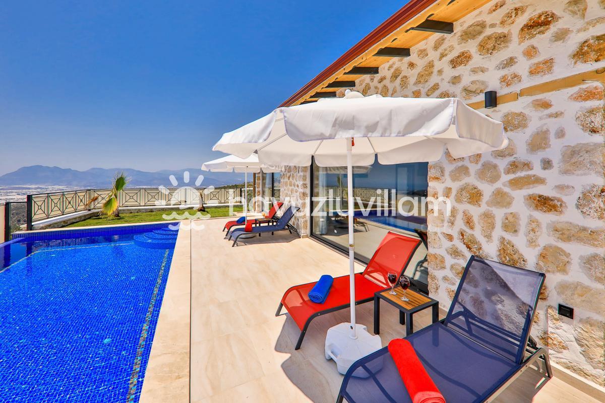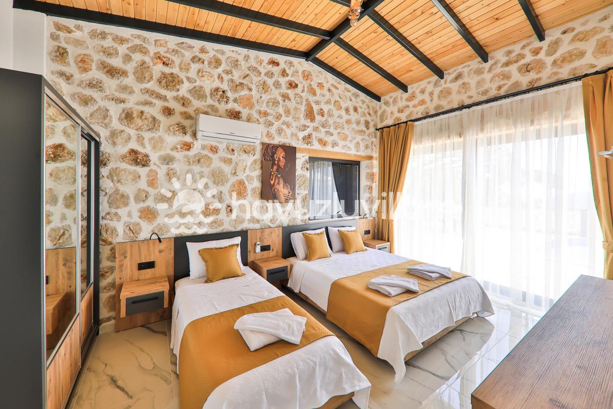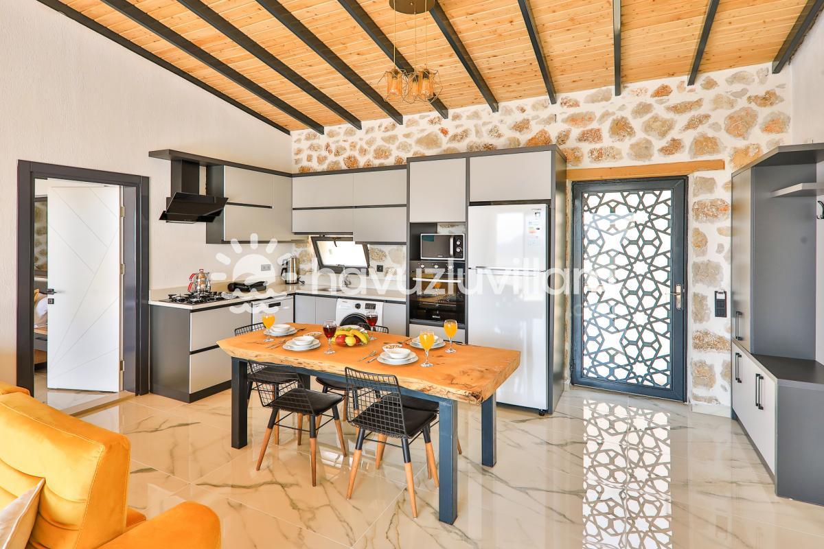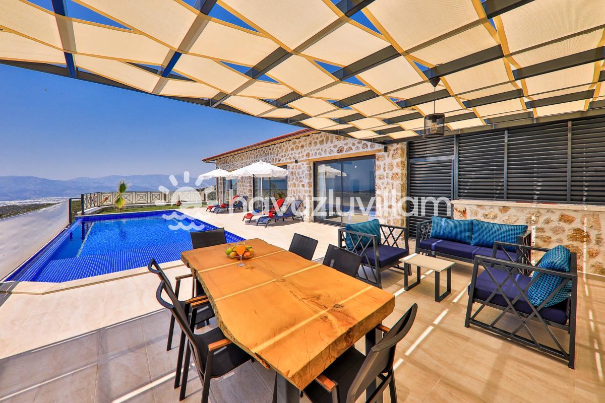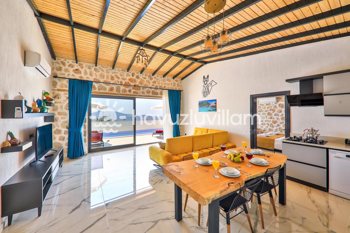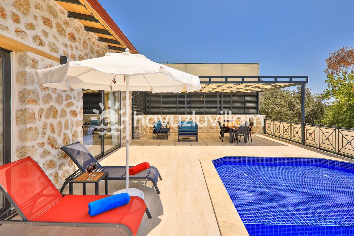 Kalkan merkeze ve denize yaklaşık 10 km uzaklıkta bulunan Villa Kırlangıç, şehrin kalabalığından uzakta doğayla iç içe bir tatil deneyimi sunar. Muhafazakar kiralık villa arayışınızda Villa Kırlangıç, sizi huzur dolu bir kaçamak için bekliyor.