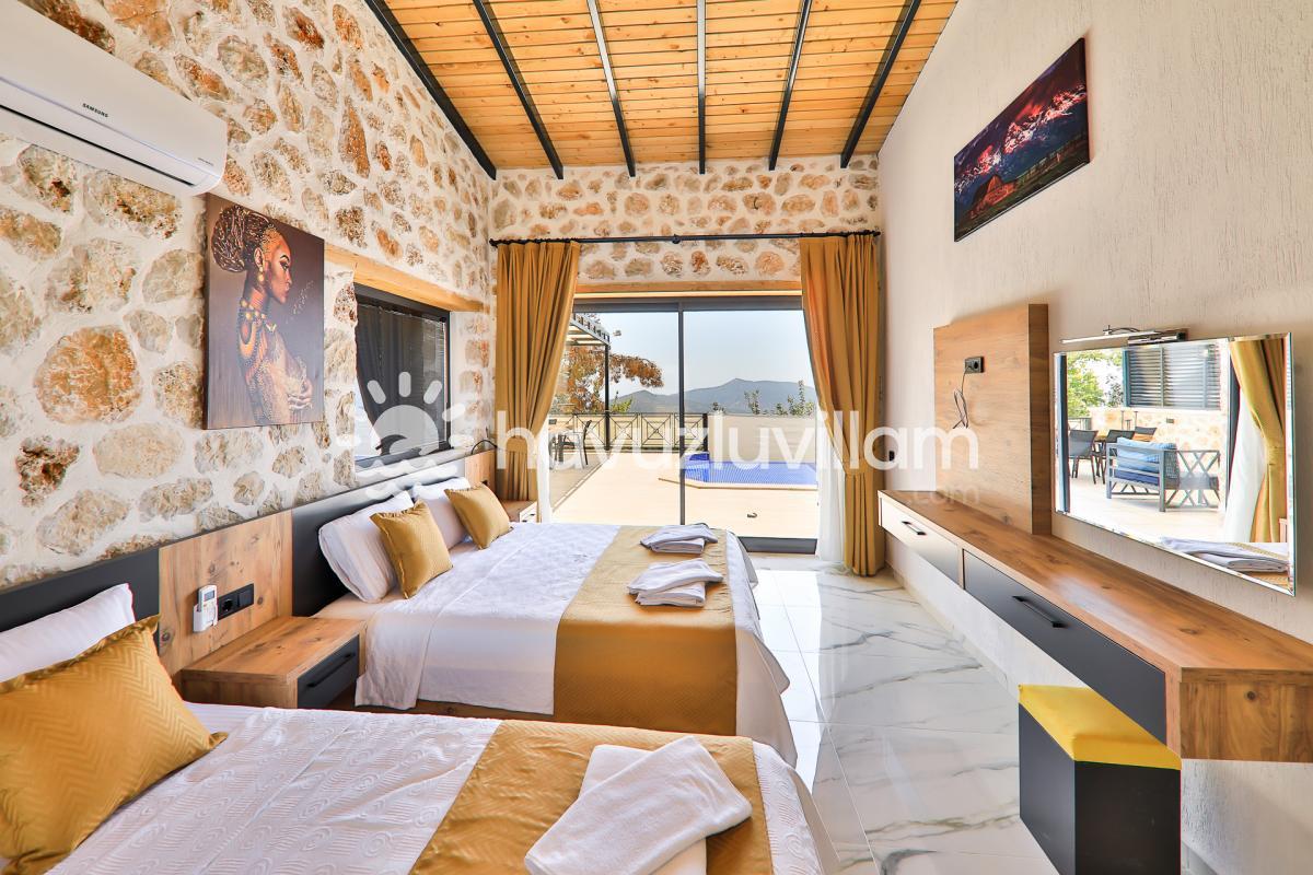 Panoramik doğa ve deniz manzarasına sahip, taş mimari ve ahşabın uyumlu dizaynıyla göz kamaştıran kiralık villamız "Villa Kırlangıç", muhafazakar balayı çiftleri ve aileler için mükemmel bir seçenektir. 2 yatak odası ve 5 kişilik konaklama kapasitesiyle huzurlu bir tatil sunan villa, İslamlar'ın huzurlu doğası içinde konumlanmıştır.