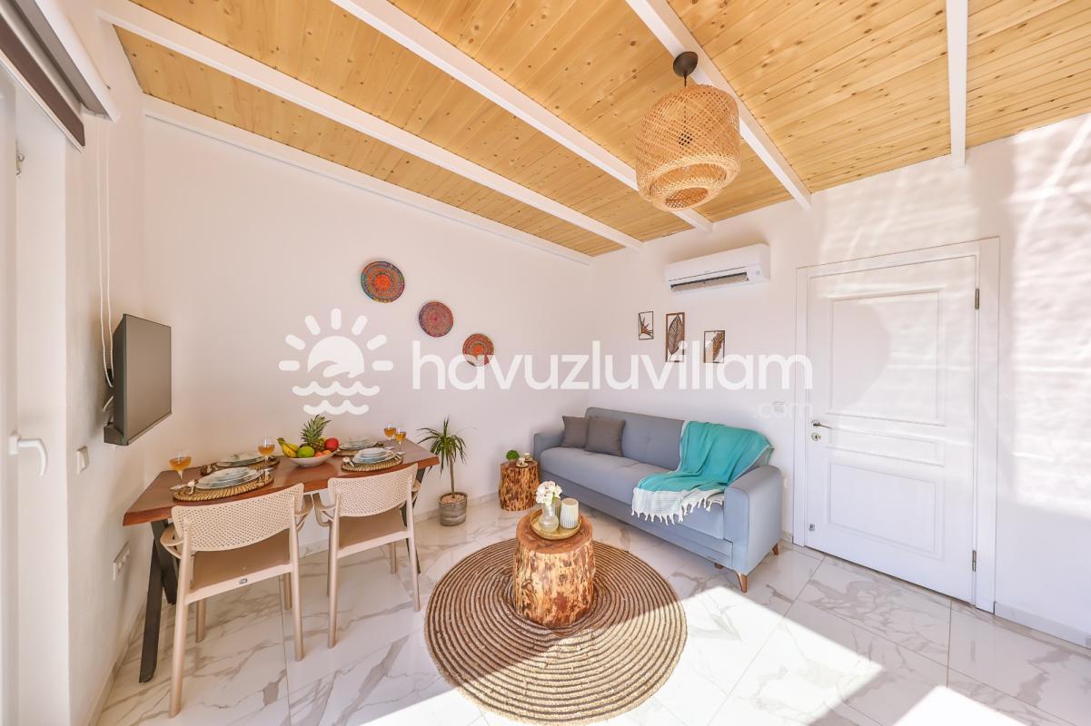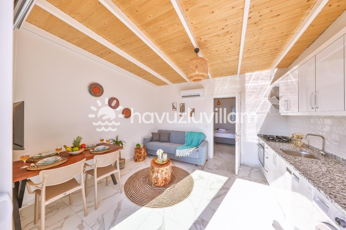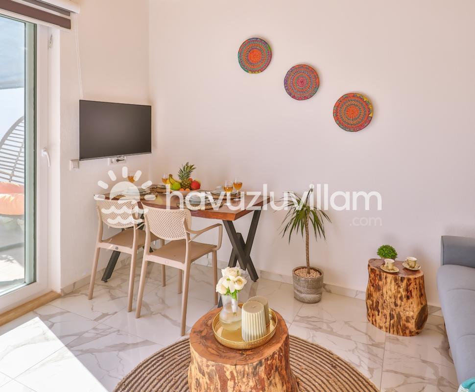 Tek yatak odalı bu Villa Luna 1 , modern tasarımı ve ferah iç mekanıyla göz dolduruyor. Rahatınızı düşünerek tasarlanmış olan villa, şık dekorasyonuyla sizleri etkileyecek. Jakuzili banyo, stresten arınmanızı sağlarken, özel havuzlu teras ise güneşin tadını çıkarmanızı mümkün kılıyor.
