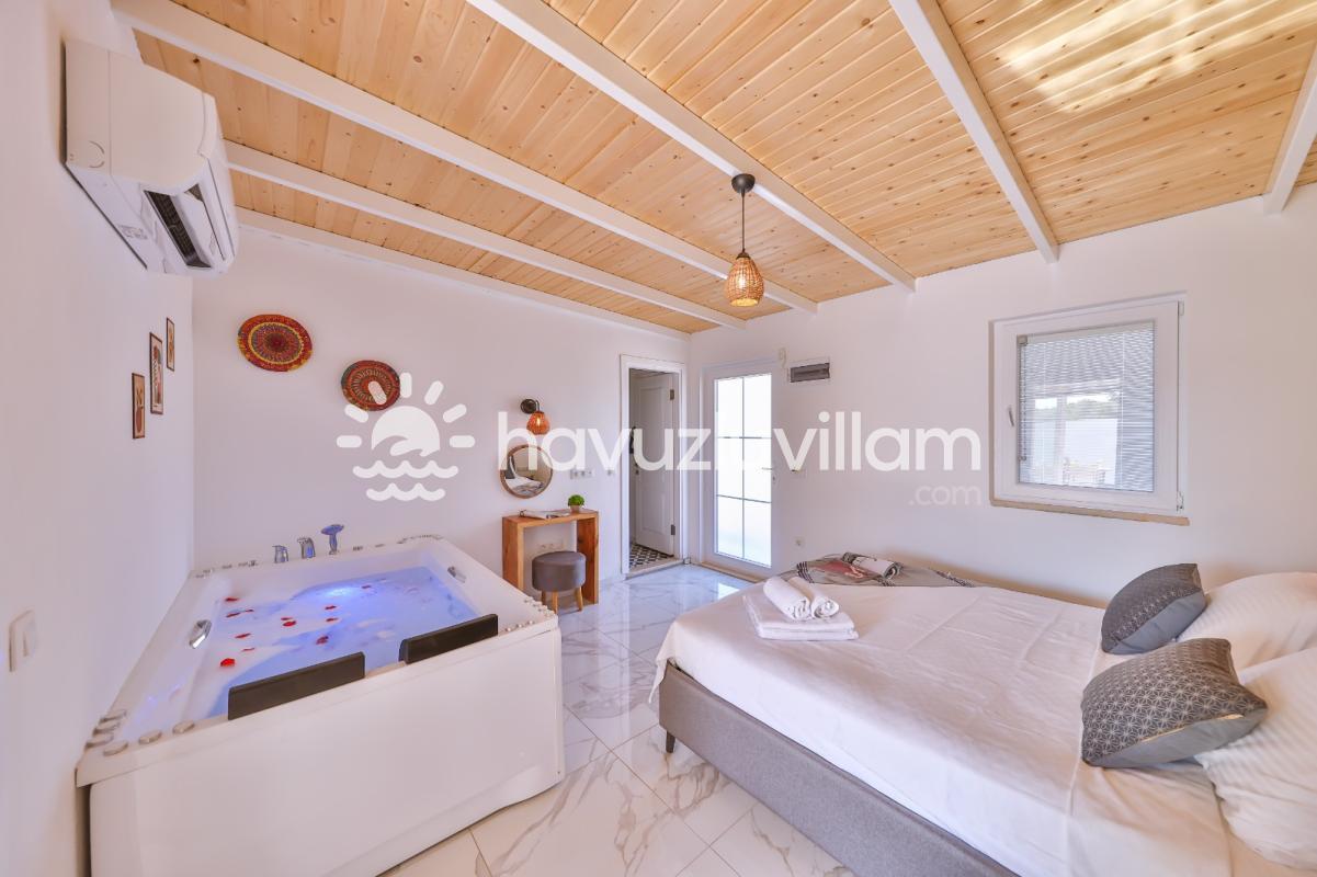 Jakuzili, özel havuzlu ve muhafazakar bir tatil için ideal olan bu villa, Kaş'ta unutulmaz bir konaklama deneyimi yaşamanızı sağlayacak. Hemen rezervasyon yapın ve bu eşsiz villanın tadını çıkarın!