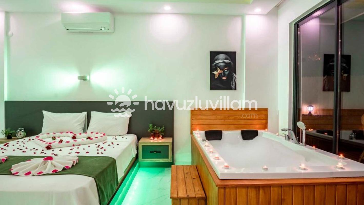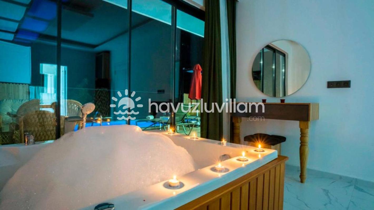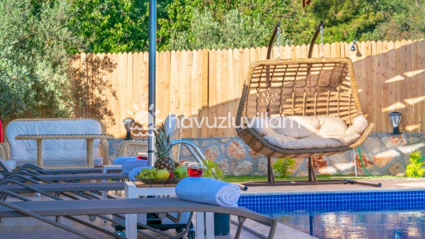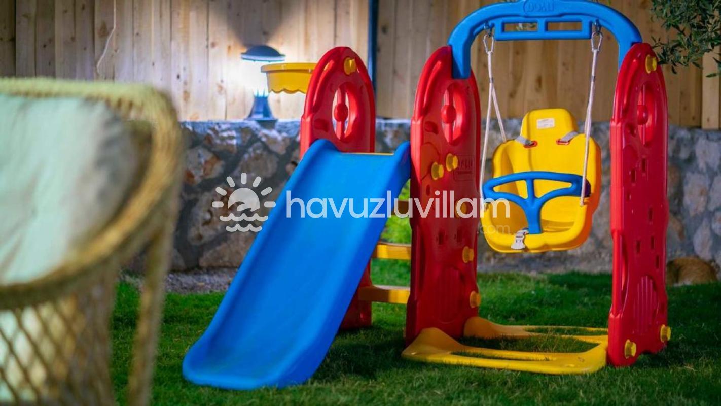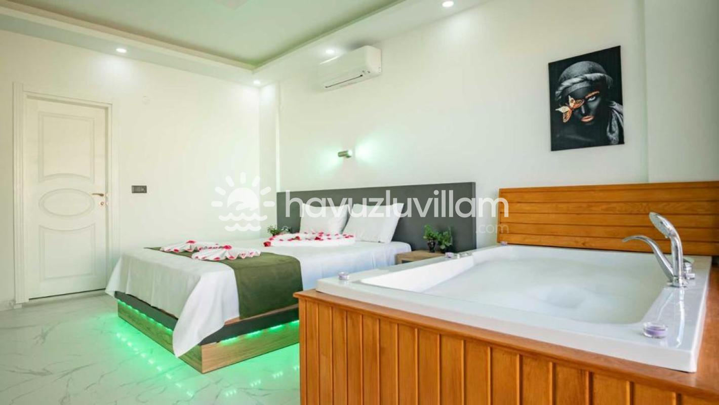 Villamızda 2 yatak odası ve 2 banyo bulunmaktadır. Suit yatak odasında çift kişilik yatak, özel banyo, jakuzi ve klima bulunmaktadır. Ayrıca, salon alanında tam donanımlı bir mutfak, rahat bir oturma grubu, klima ve televizyon mevcuttur. Villamızın bahçesinde yer alan salıncak, misafirlerimize ekstra bir keyif sunmaktadır.