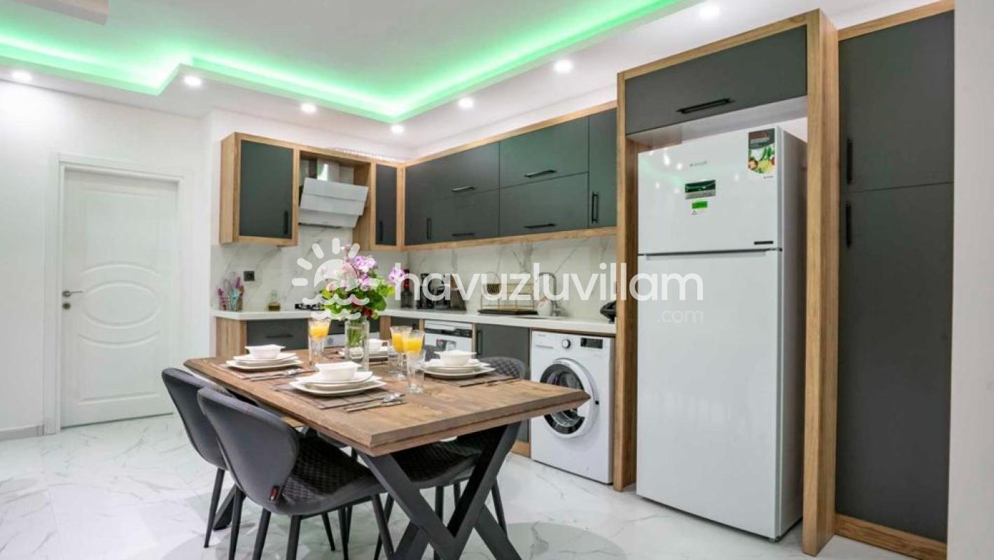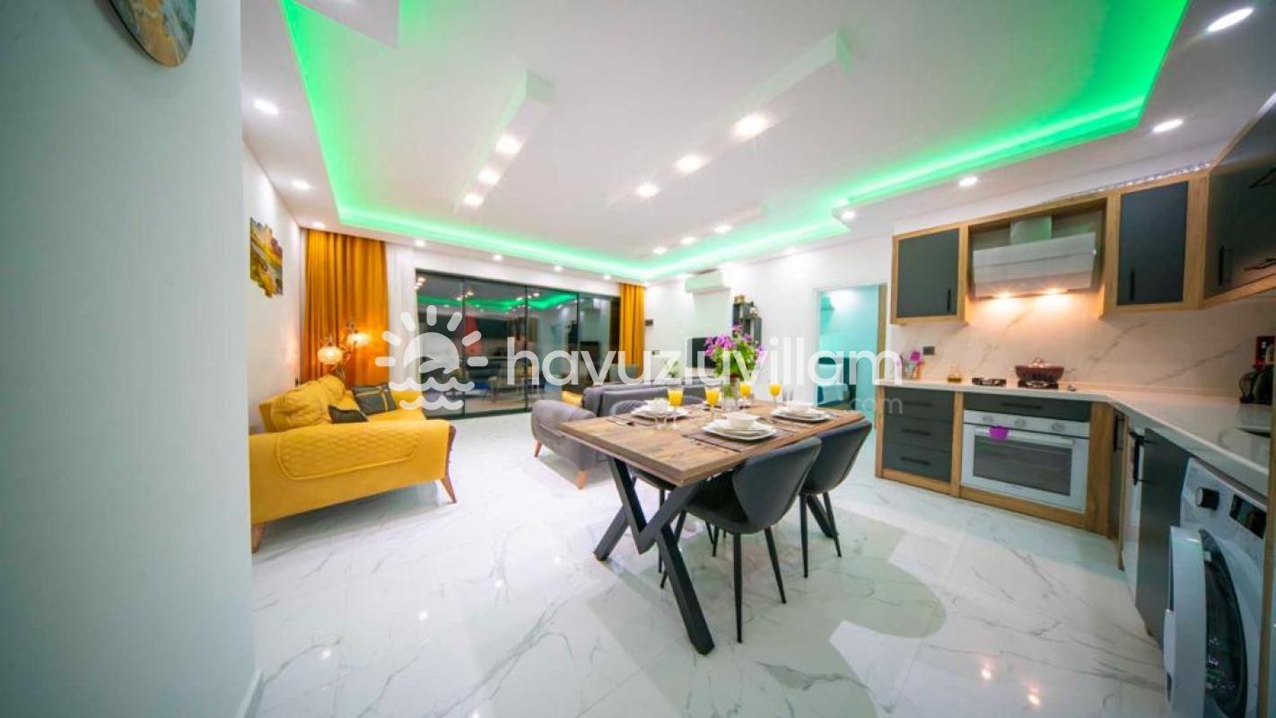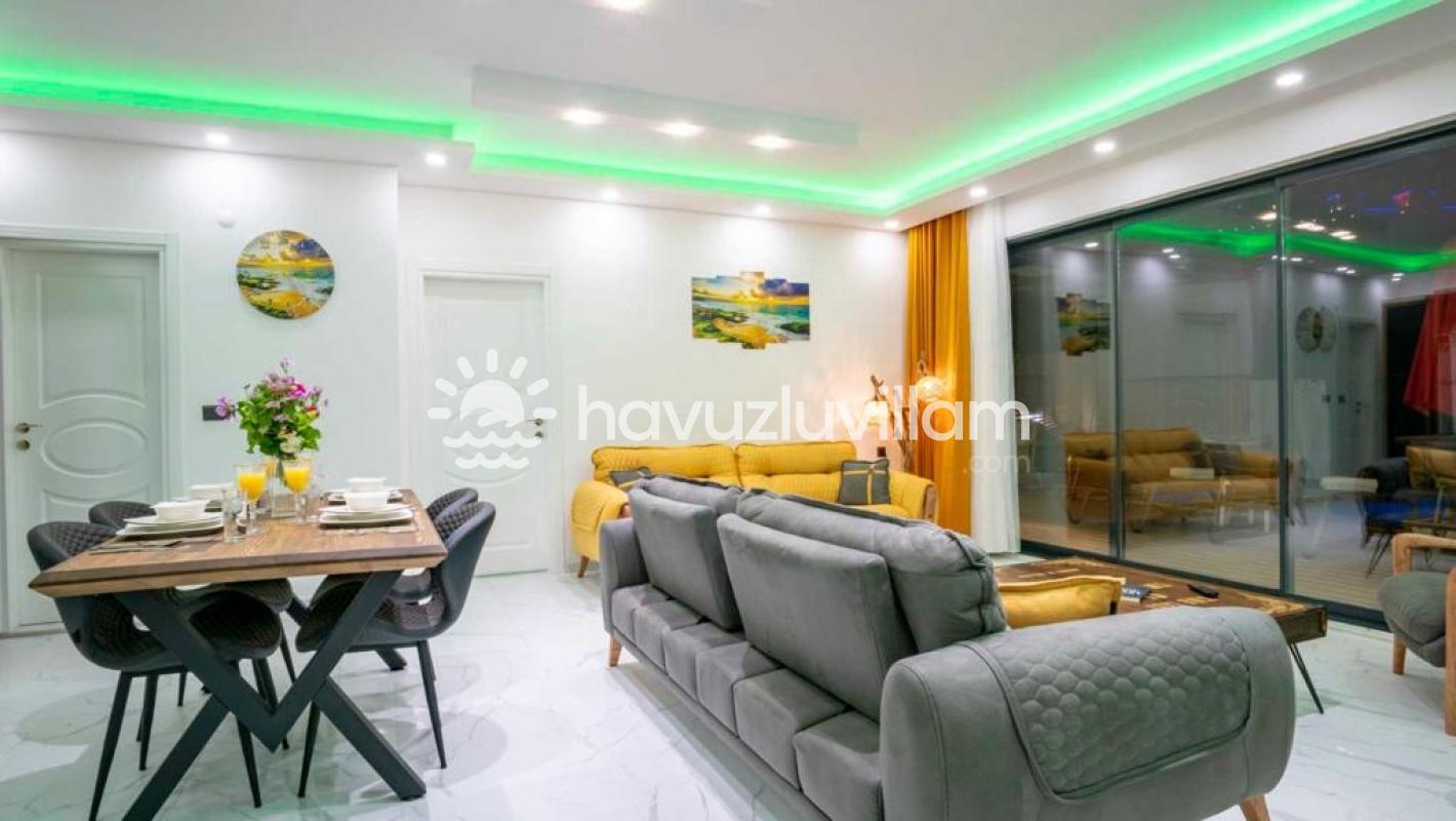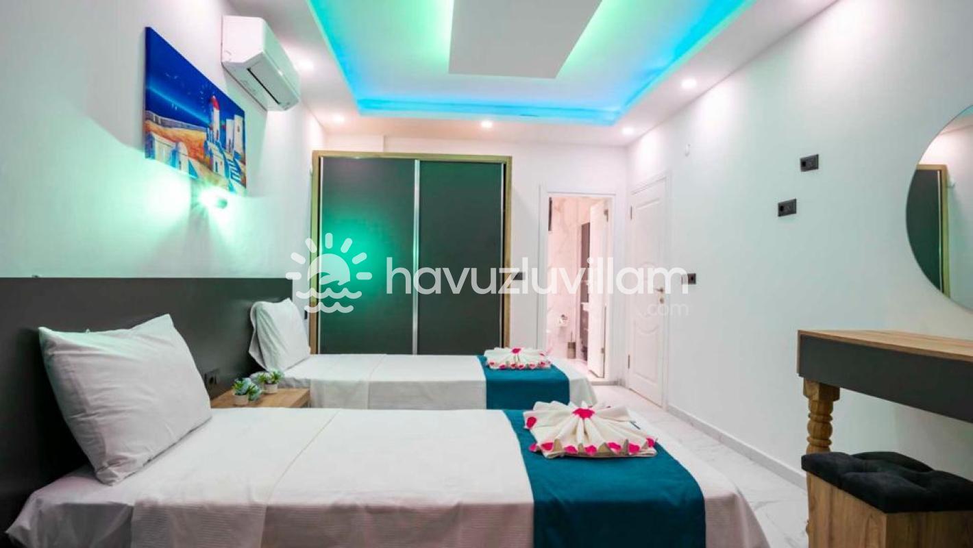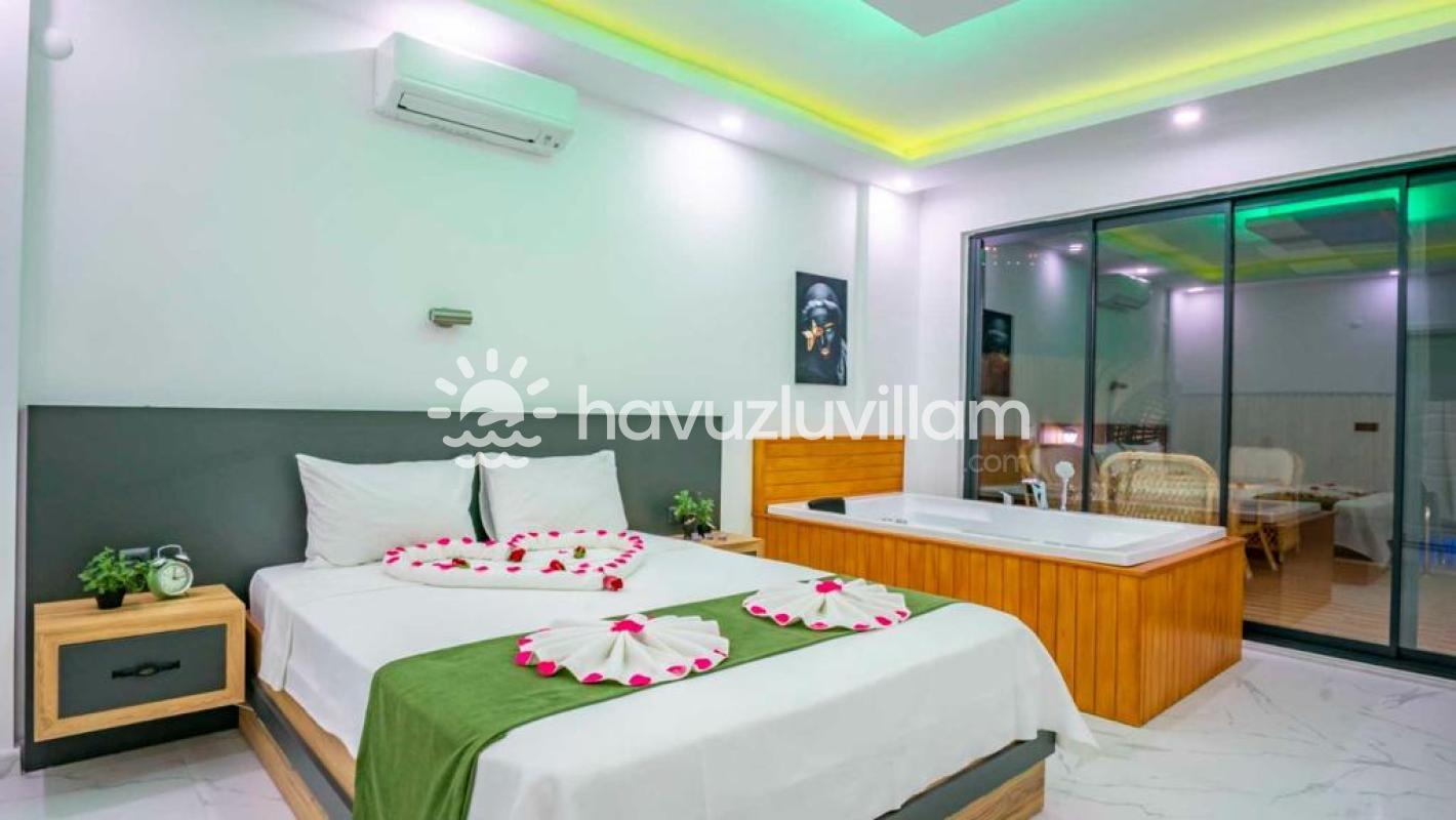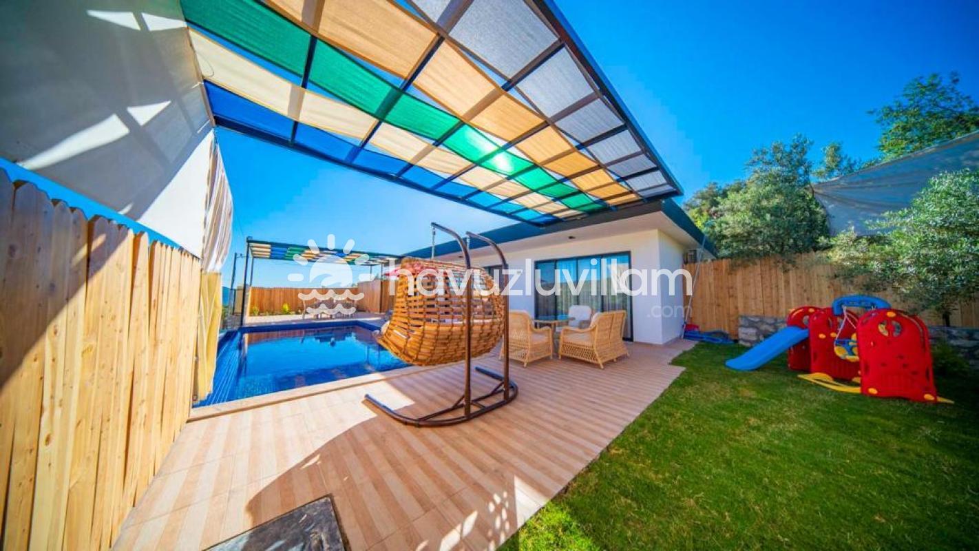 Villamızda 2 yatak odası ve 2 banyo bulunmaktadır. Suit yatak odasında çift kişilik yatak, özel banyo, jakuzi ve klima bulunmaktadır. Ayrıca, salon alanında tam donanımlı bir mutfak, rahat bir oturma grubu, klima ve televizyon mevcuttur. Villamızın bahçesinde yer alan salıncak, misafirlerimize ekstra bir keyif sunmaktadır.