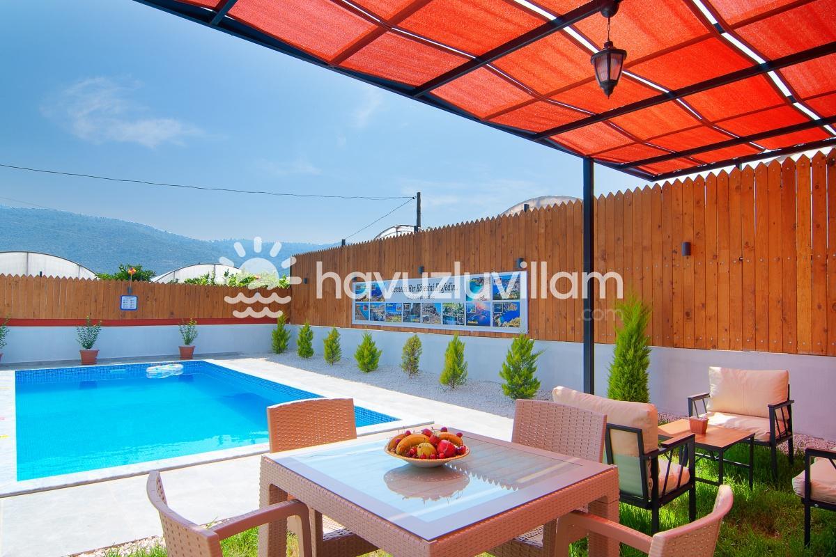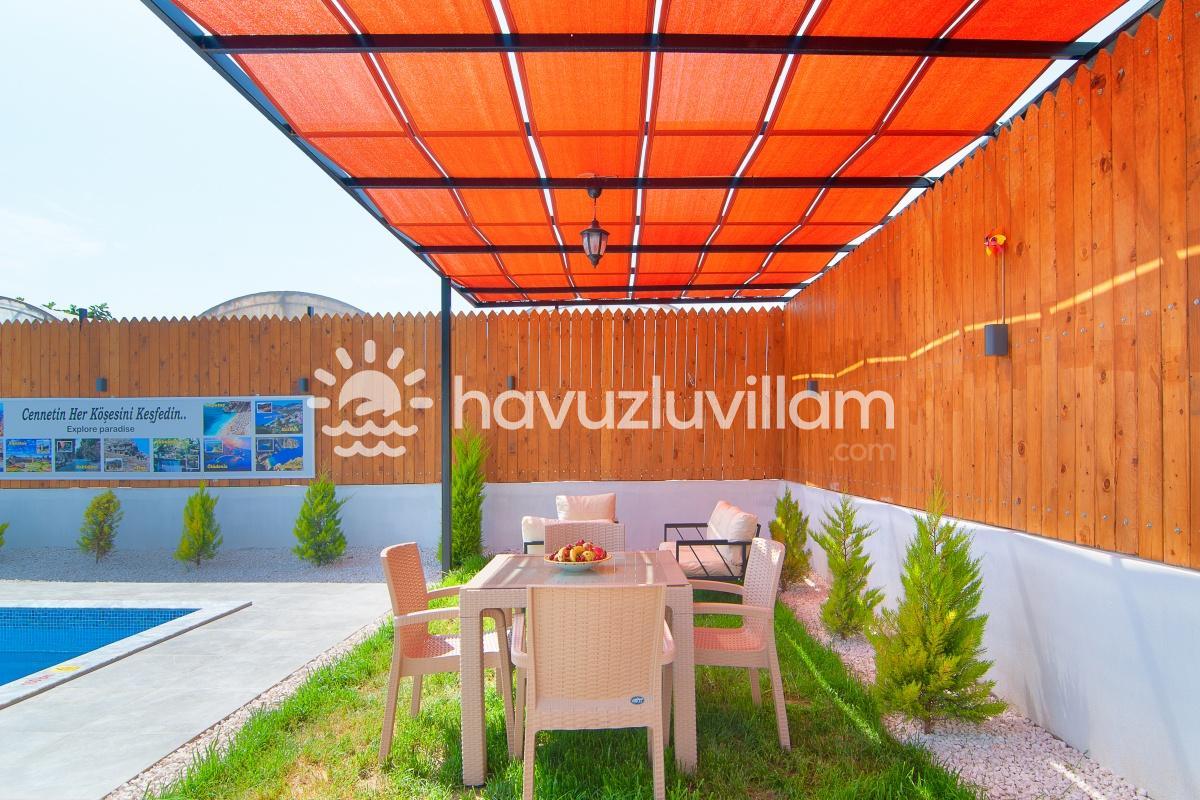Villanın geniş verandası, doğayla iç içe keyifli vakitler geçirmeniz için mükemmel bir ortam sağlar. Açık havada yapacağınız akşam yemekleri ve serin içeceklerle geçen huzur dolu akşamlar, tatilinizi unutulmaz kılacaktır. Ayrıca, villanın sessiz ve sakin konumu, şehirden uzak bir dinlenme imkanı sunar.