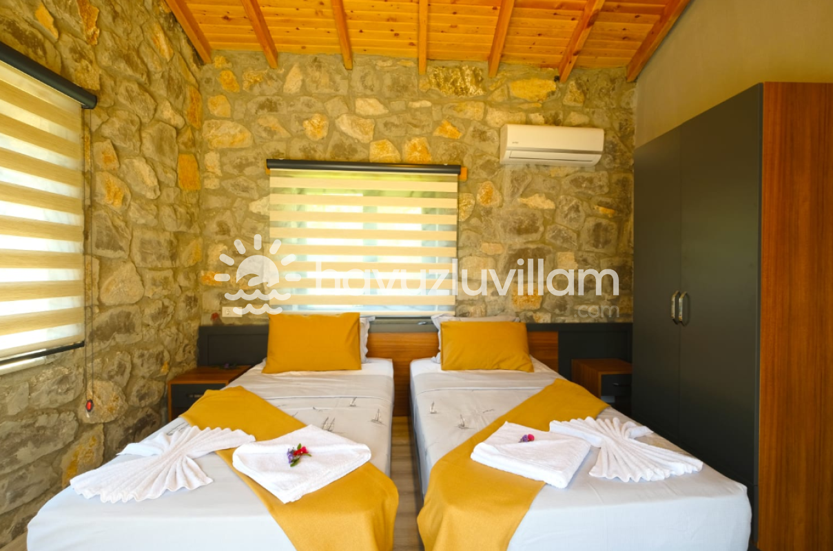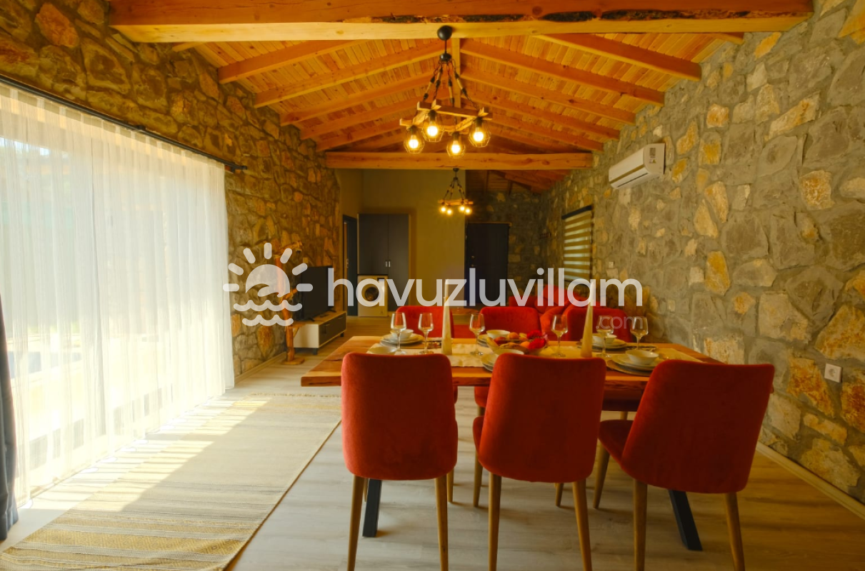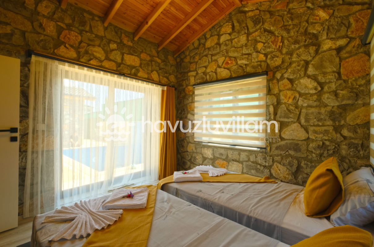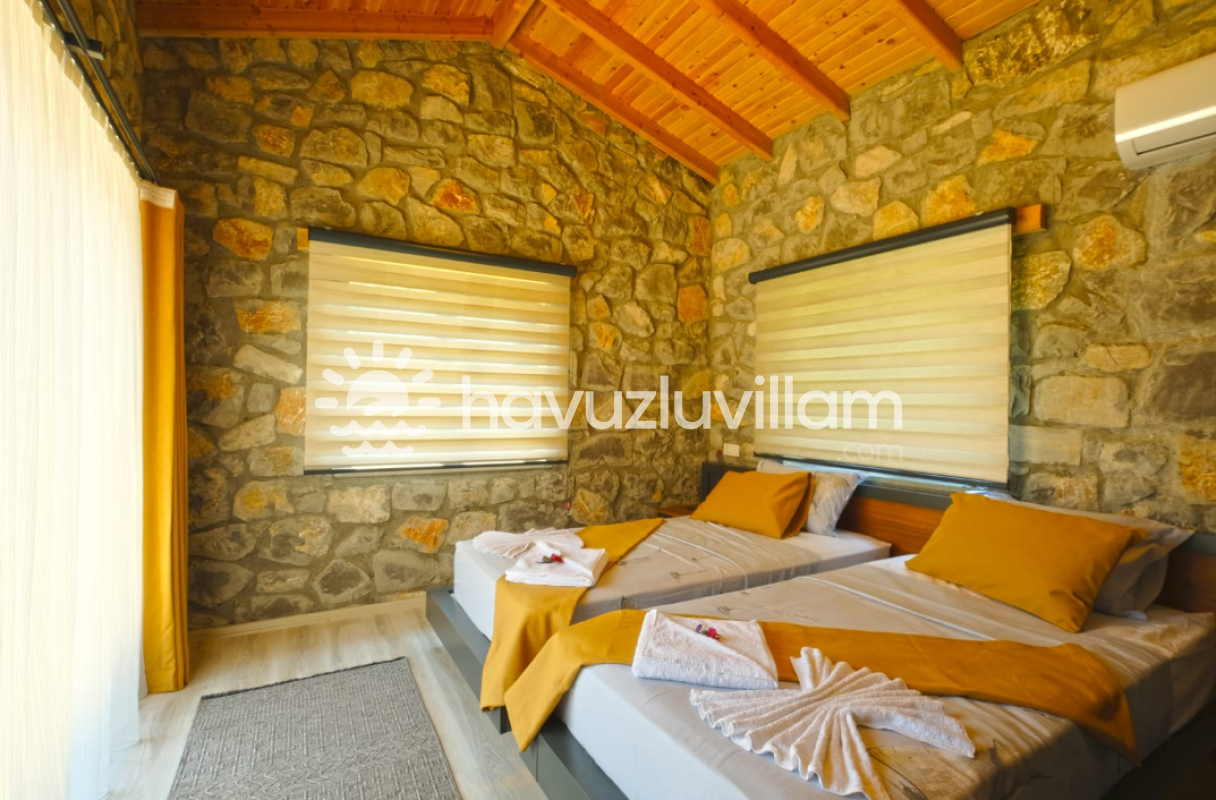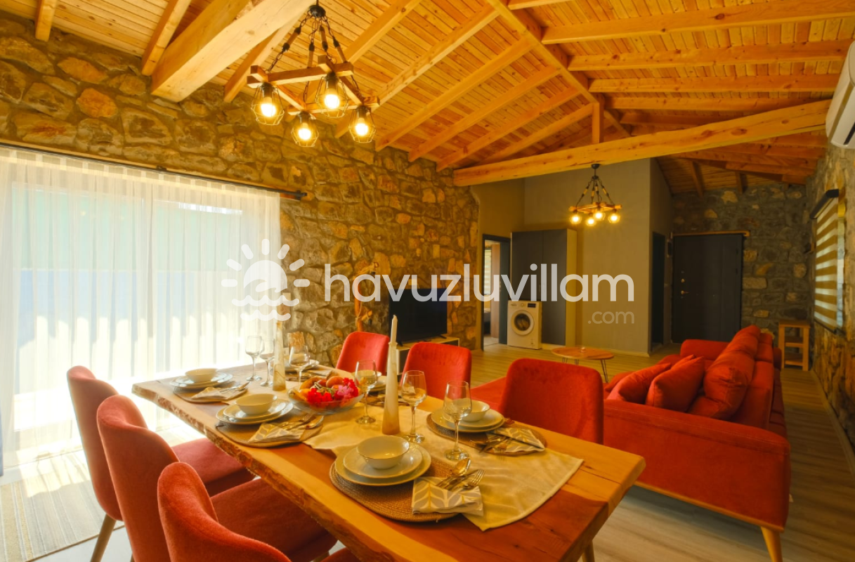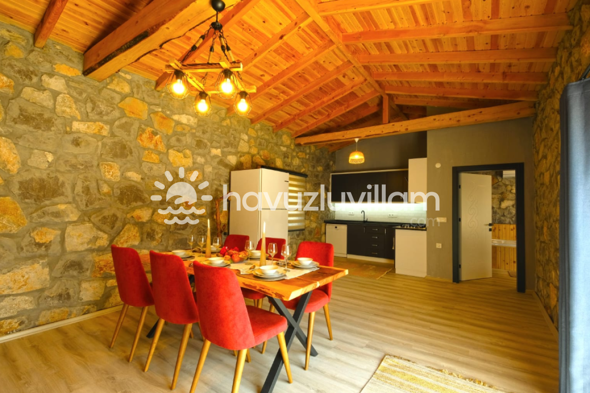 Fethiye kiralık villa arayışınızda ideal bir seçenek olan Villa Salvia 2, Karaçulha Bölgesi'nde doğanın kalbinde konumlanmıştır. Taş mimarisiyle dikkat çeken bu villa, 4 kişilik konaklama kapasitesiyle balayı çiftleri ve çekirdek aileler için mükemmel bir kaçamak sunar. Korunaklı havuz ve bahçede yer alan jakuzi, tamamen size özel bir ortamda rahatlamanızı sağlar. Yeşil bahçesi, geniş verandası, oturma alanı, salıncak ve barbekü gibi olanaklar, sevdiklerinizle keyifli anlar yaşamanız için tasarlanmıştır.