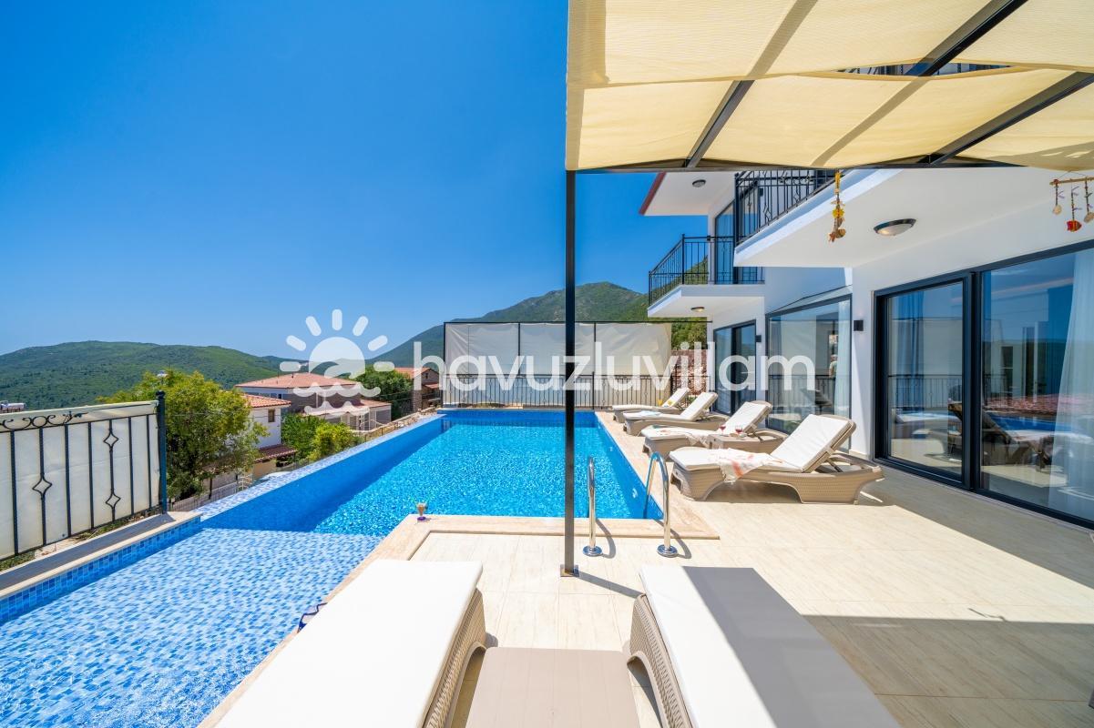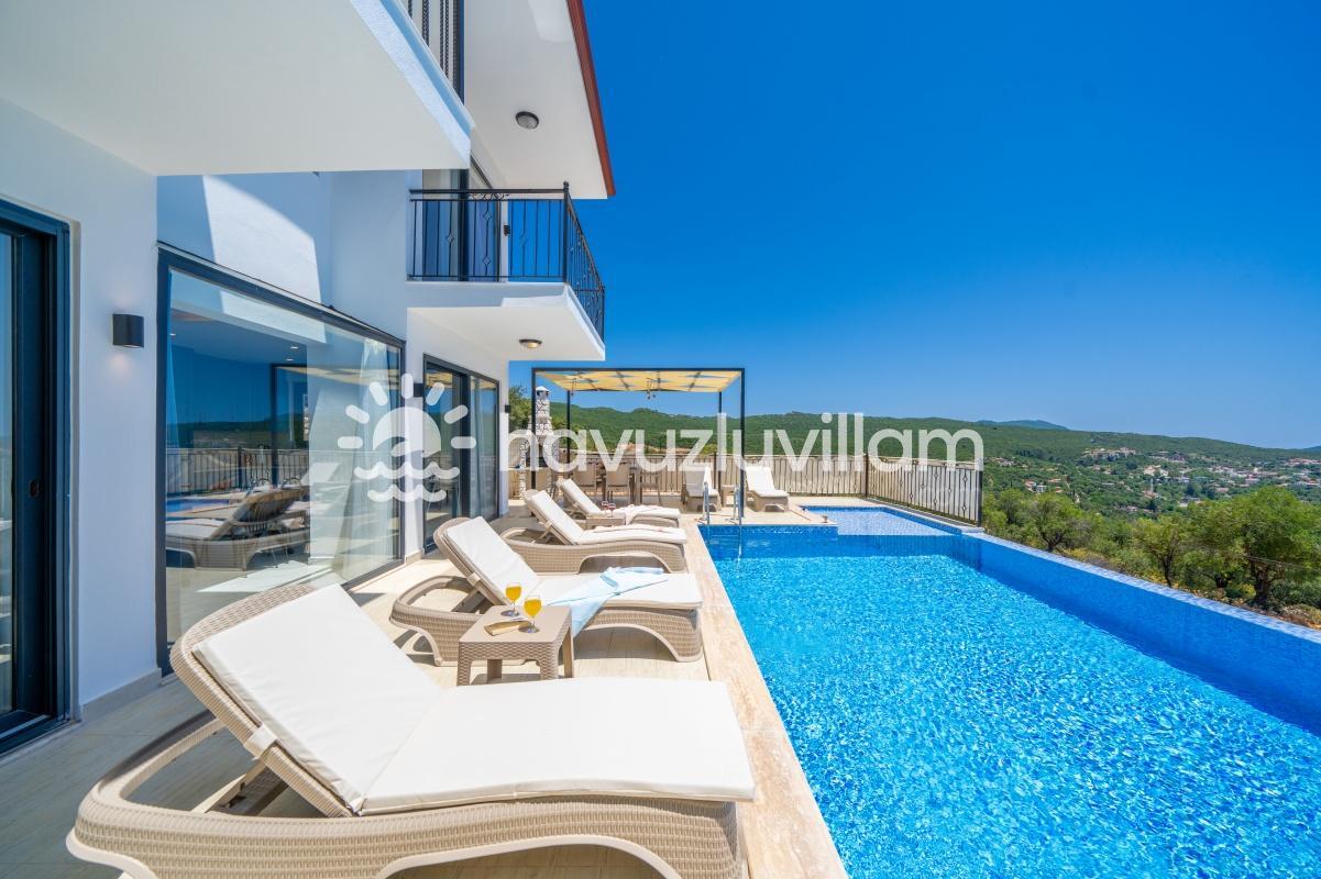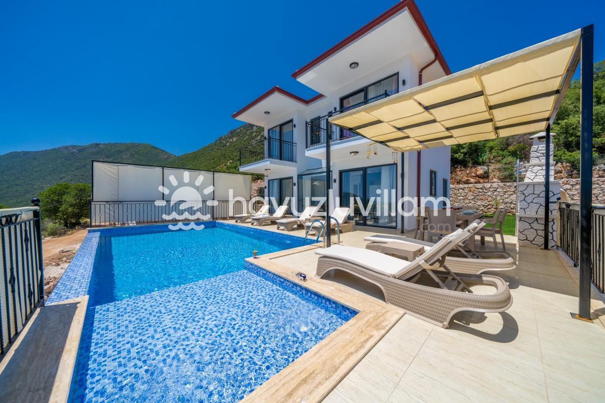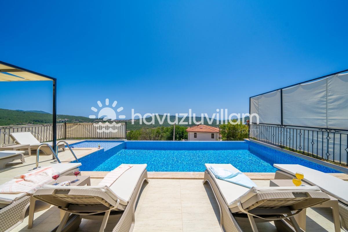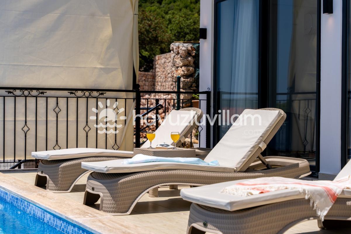 Çocuklu ve muhafazakar aileler için uygun olan Villa Seyir, havuz terasının kısmen korunaklı olmasıyla çocukların güvenli bir şekilde vakit geçirebileceği bir ortam sunar. 2023 yılında yapılmış olan bu lüks villada, Kaş'ın eşsiz doğası ve manzarasıyla bütünleşen bir tatil sizi bekliyor.