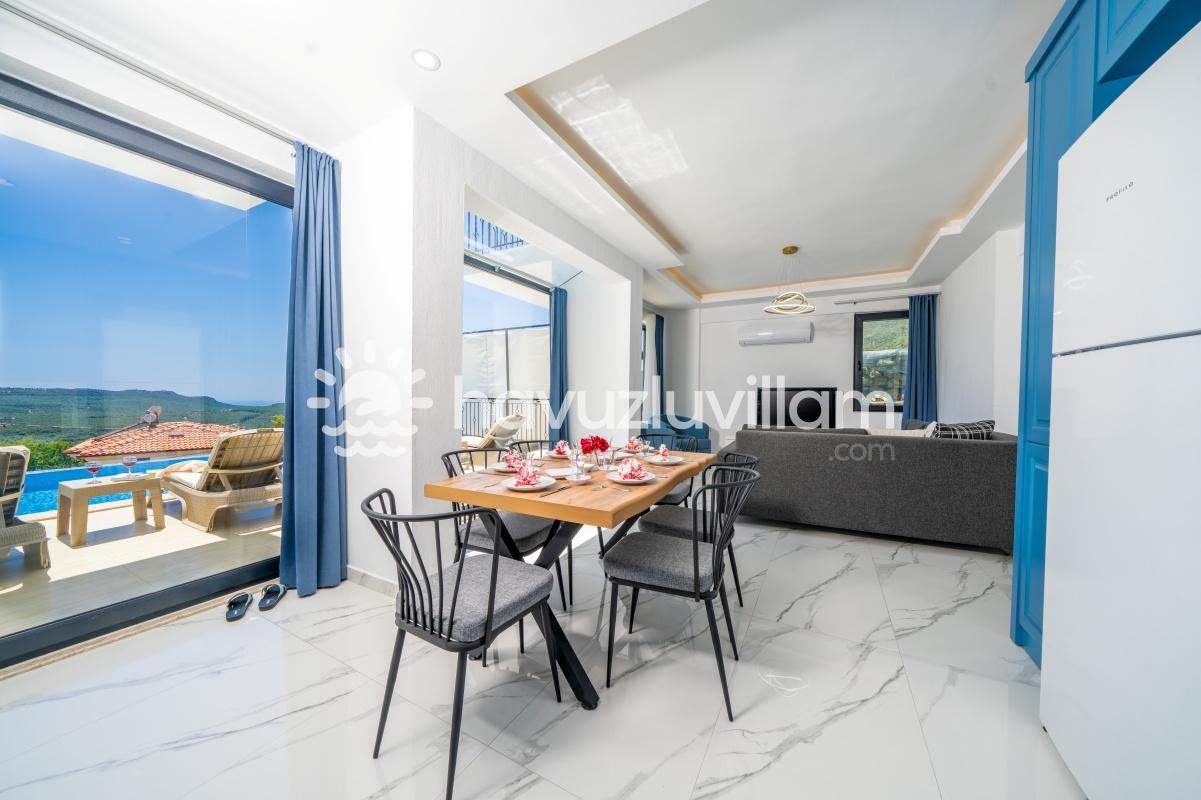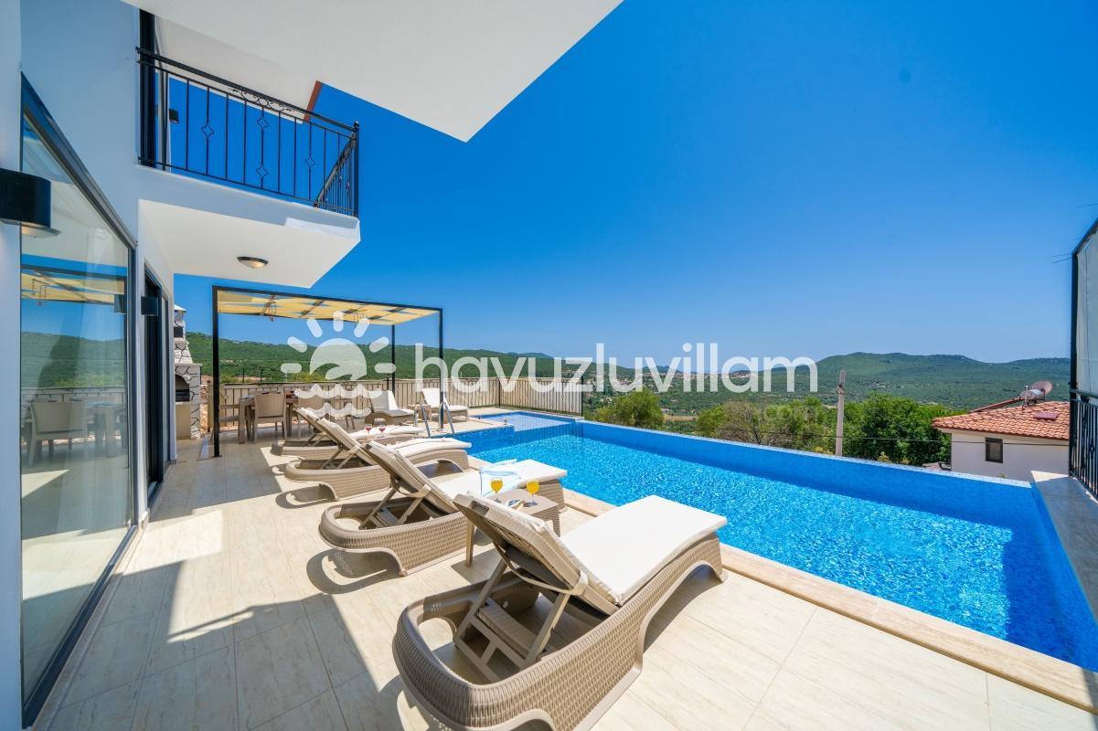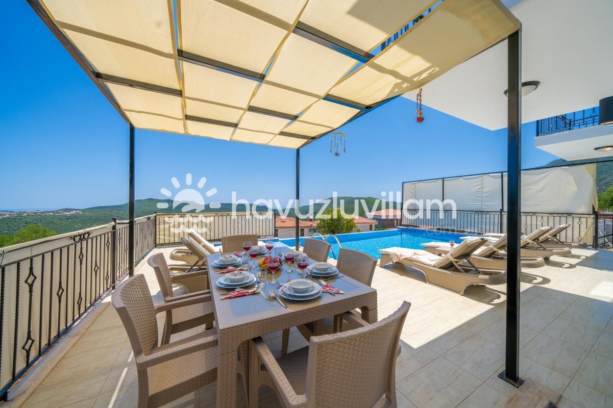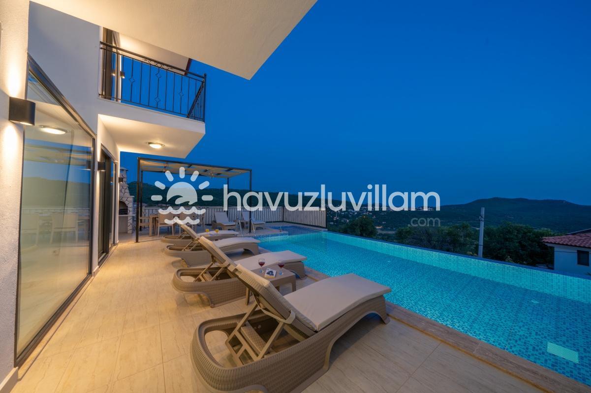 Çocuklu ve muhafazakar aileler için uygun olan Villa Seyir, havuz terasının kısmen korunaklı olmasıyla çocukların güvenli bir şekilde vakit geçirebileceği bir ortam sunar. 2023 yılında yapılmış olan bu lüks villada, Kaş'ın eşsiz doğası ve manzarasıyla bütünleşen bir tatil sizi bekliyor.