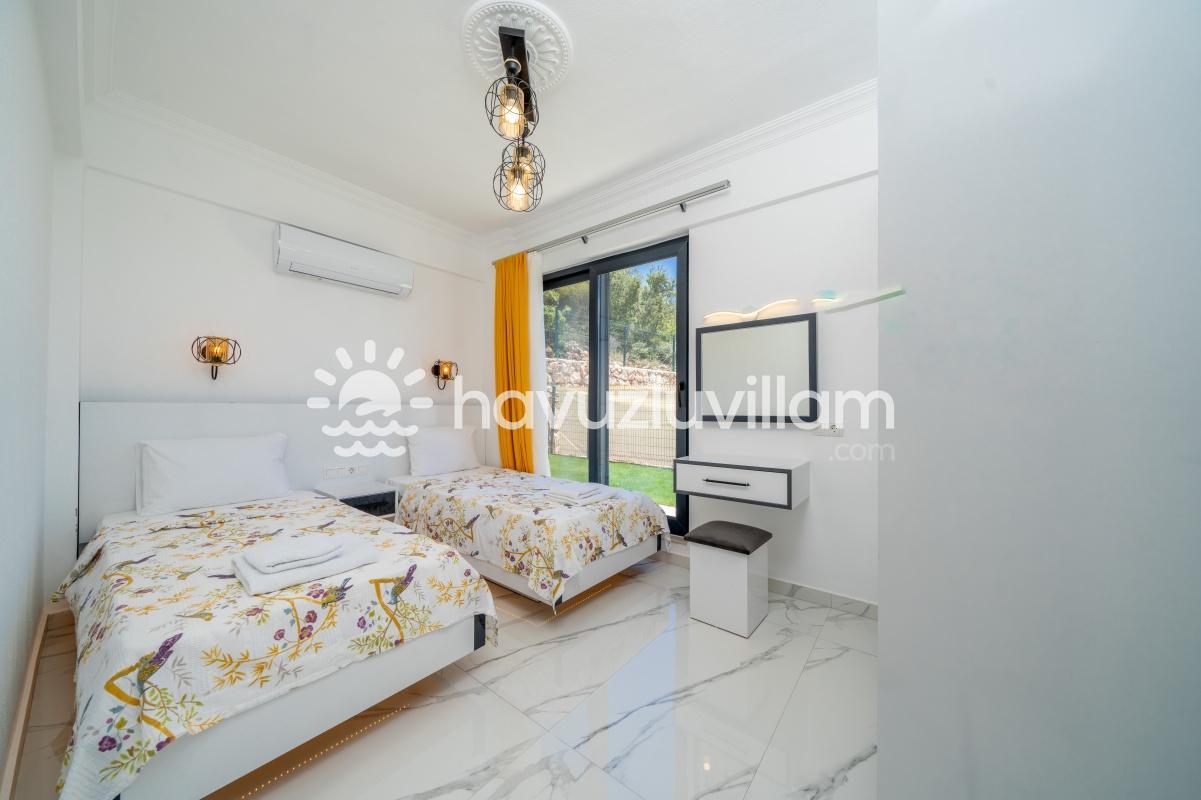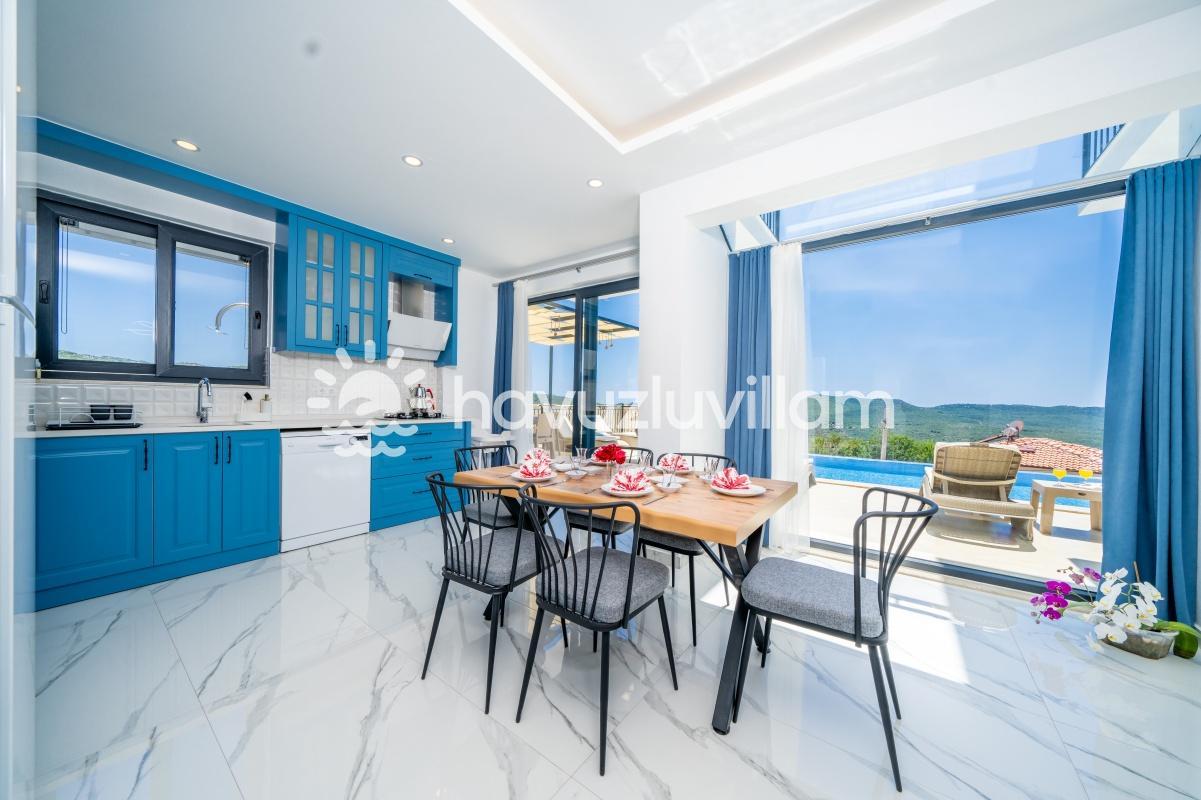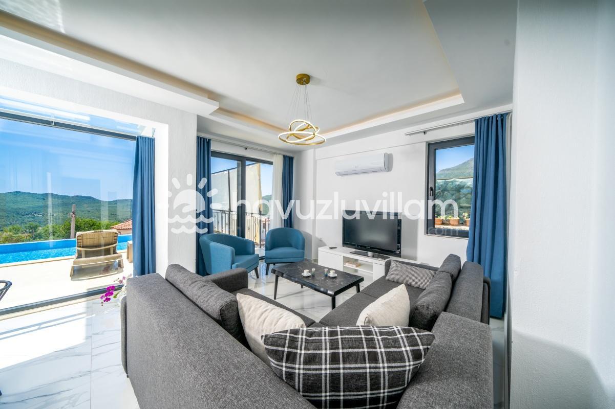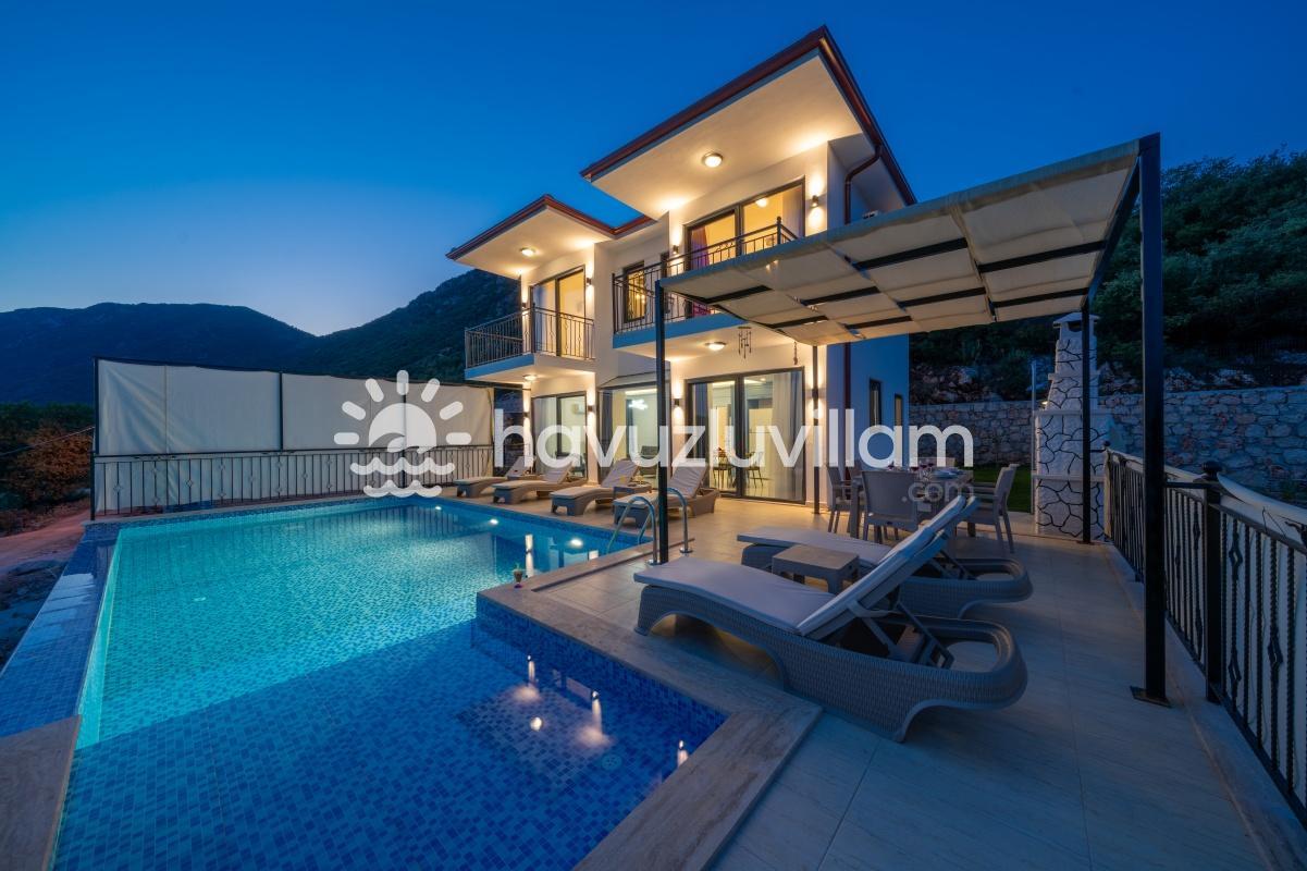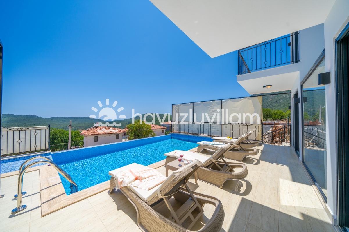 Çocuklu ve muhafazakar aileler için uygun olan Villa Seyir, havuz terasının kısmen korunaklı olmasıyla çocukların güvenli bir şekilde vakit geçirebileceği bir ortam sunar. 2023 yılında yapılmış olan bu lüks villada, Kaş'ın eşsiz doğası ve manzarasıyla bütünleşen bir tatil sizi bekliyor.