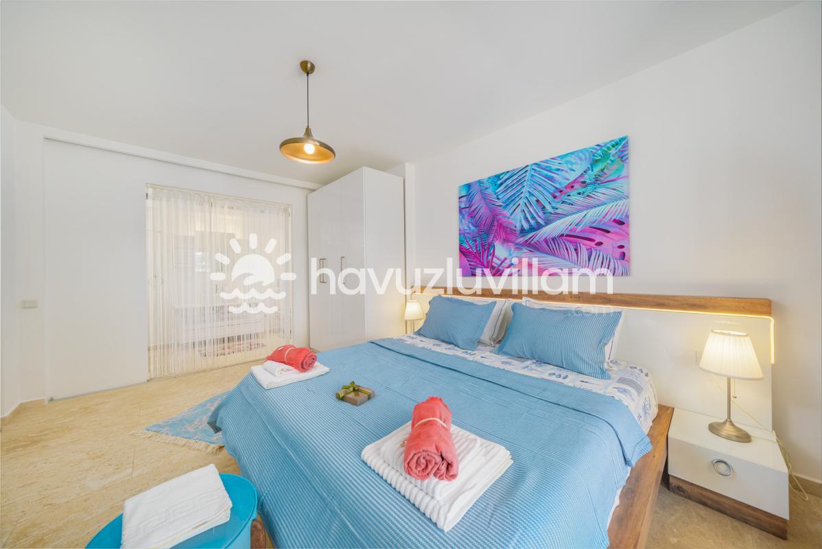 4 adet yatak odasıyla donatılmış olan Villa Simena, 8 kişiye kadar konaklama imkanı sağlıyor. Her detayı özenle düşünülmüş olan bu şık villa, sade tasarımıyla konforu ve rahatlığı bir araya getiriyor. Villa içerisinde ihtiyacınız olabilecek tüm temel eşyalar mevcut, böylece tatiliniz boyunca hiçbir şeyden mahrum kalmıyorsunuz.