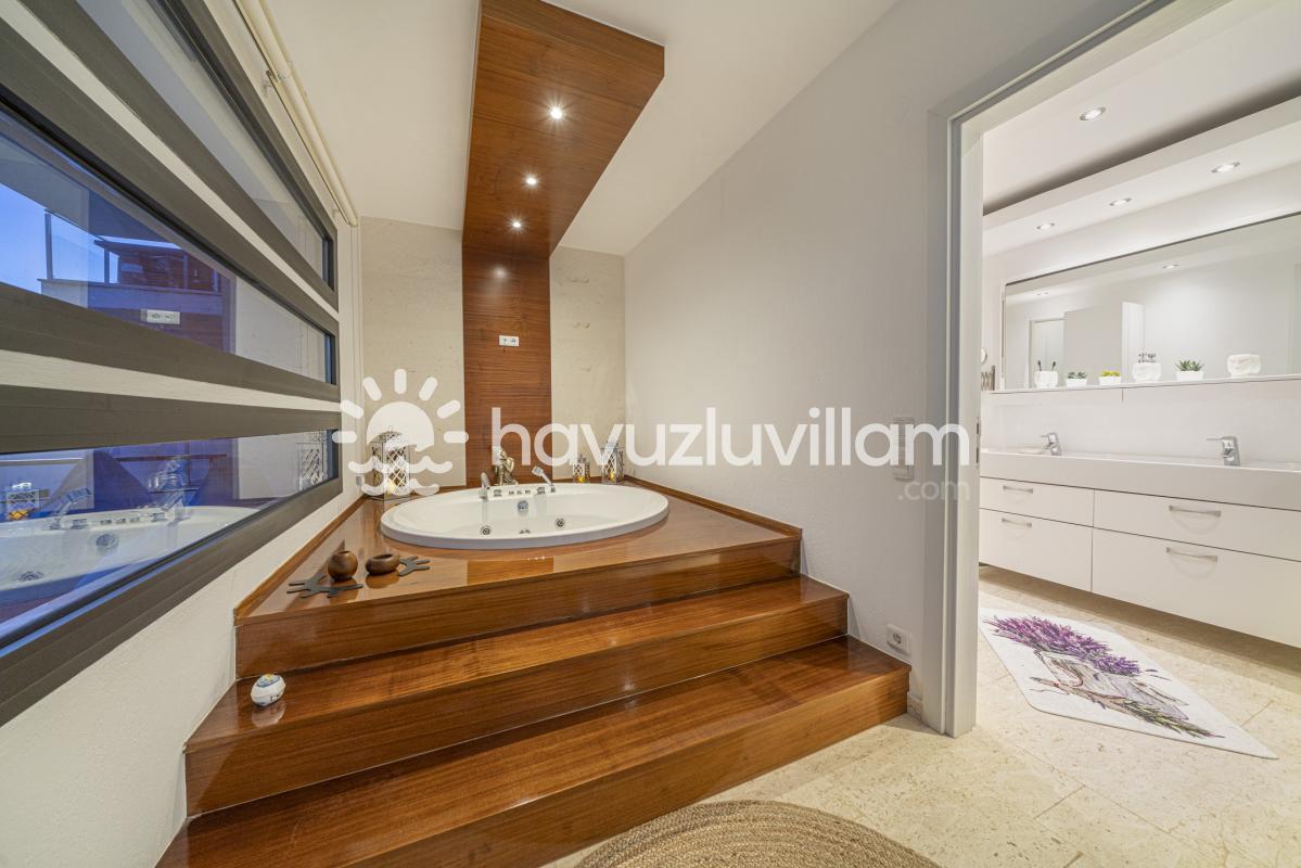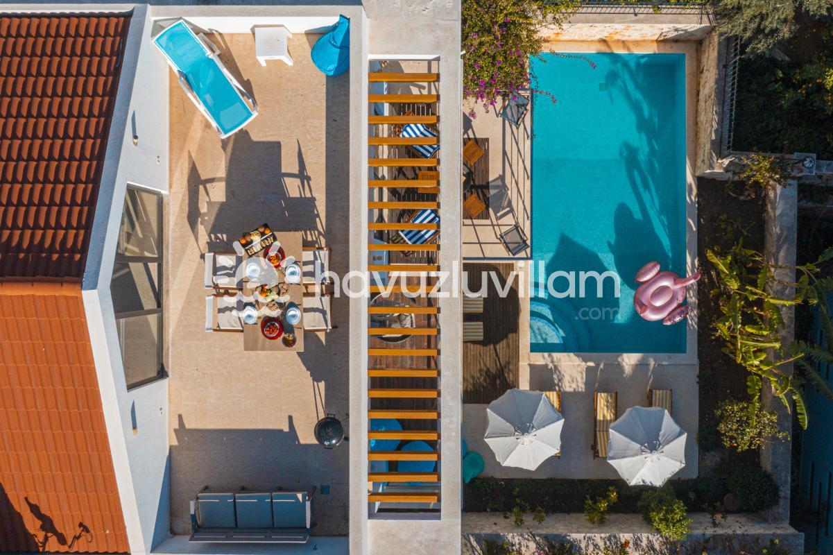 Villamızın bir odasında yer alan jakuzi, misafirlerimize muhteşem bir manzara eşliğinde keyifli bir dinlenme imkanı sunuyor. Denize yakınlığıyla öne çıkan Villa Simena, kalabalık aileler ve arkadaş grupları için ideal bir seçenek olma özelliği taşıyor.