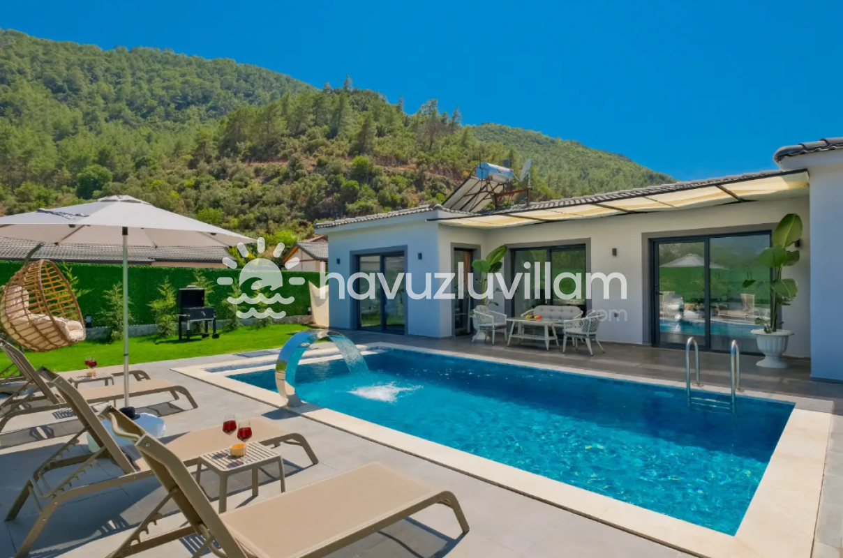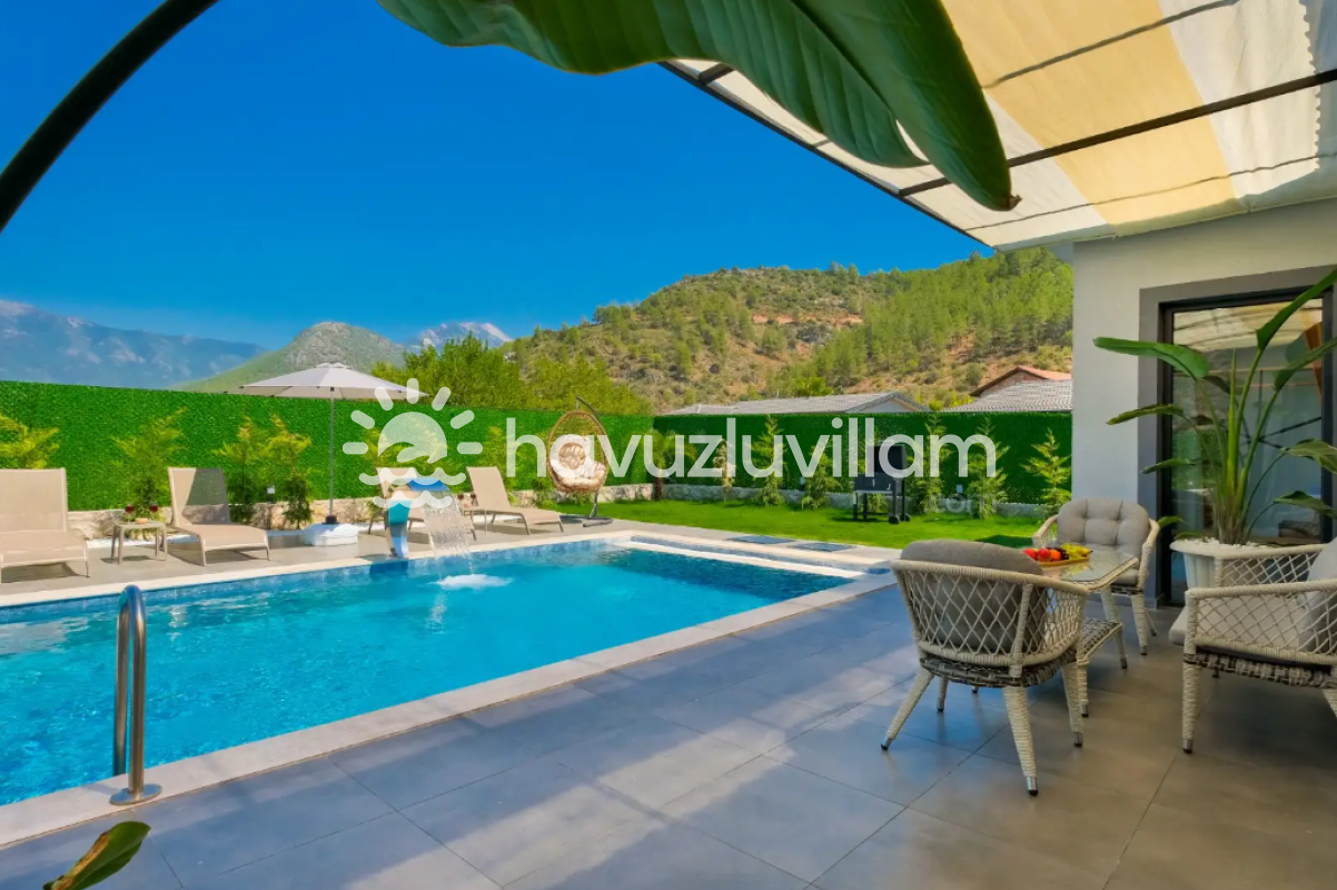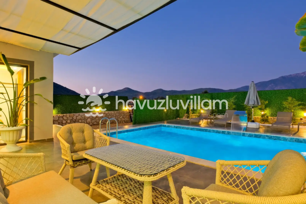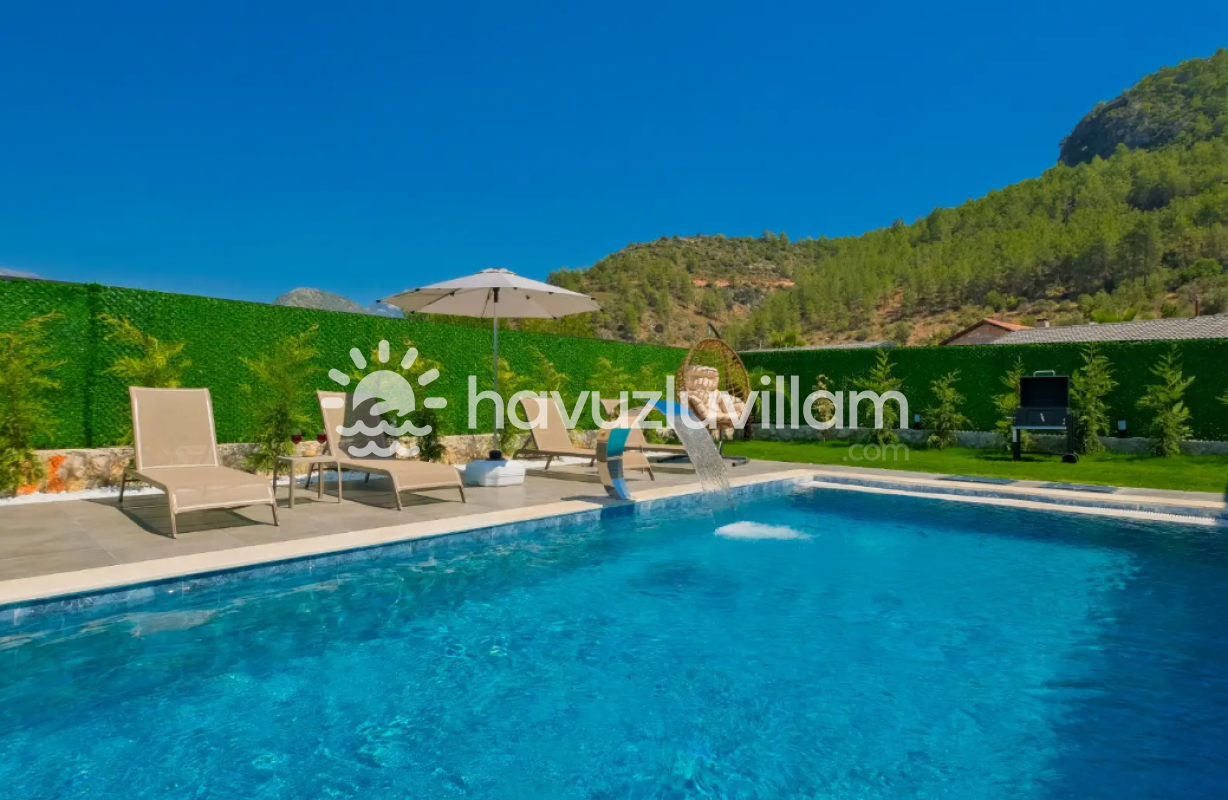 Fethiye'nin tarihi ve doğal güzellikleriyle ünlü Kayaköy bölgesinde yer alan Villa Sincap, unutulmaz bir tatil deneyimi sunmak için özenle tasarlanmış lüks bir kiralık villadır. Bu eşsiz villa, korunaklı özel havuzu ile mahremiyet ve rahatlık arayan misafirlerimize ideal bir ortam sağlar.