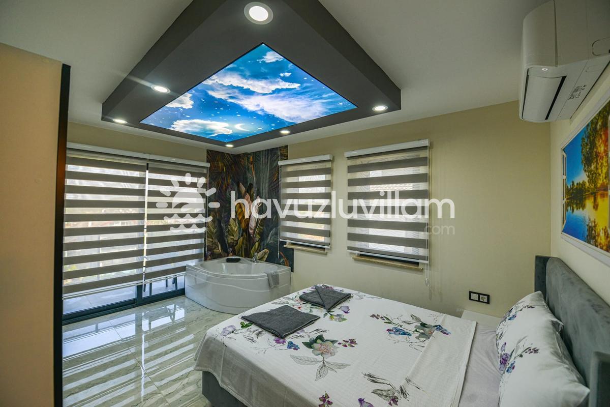Villa Sudenaz, modern tasarımı ve özenle seçilmiş detaylarıyla dikkat çekerken, kapalı ısıtmalı havuz, jakuzi, hamam ve sauna gibi özellikler tatilinizin her anını muhteşem kılmak için tasarlanmıştır. Her biri özel banyo ile donatılmış olan yatak odaları, konforlu bir konaklama imkanı sunarken, geniş oturma alanları ve tam donanımlı mutfak ise evinizdeki rahatlığı aratmaz.