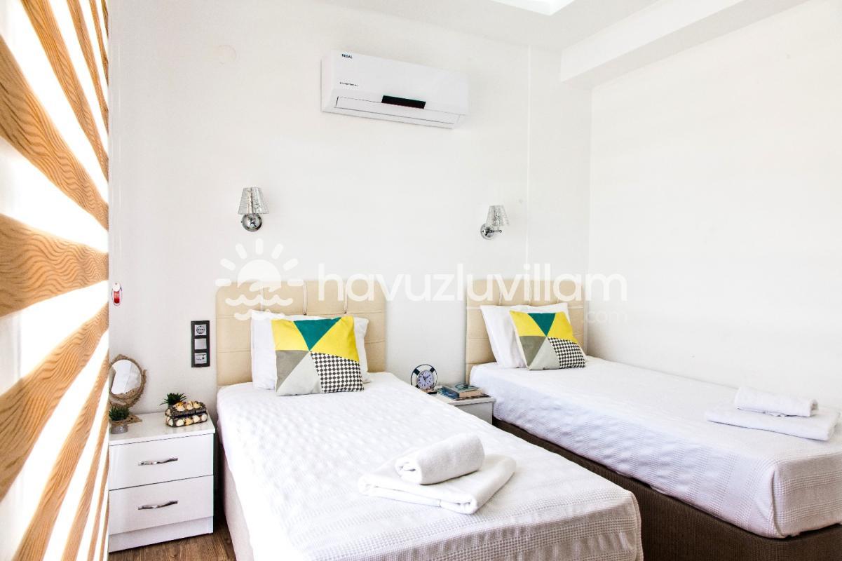 Geniş ve ferah iç mekanlarıyla dikkat çeken villa, modern dizaynı ve konforlu yaşam alanlarıyla konuklarına rahatlık sağlıyor. Her odada özel banyo bulunması, konforunuzu maksimum seviyede tutuyor. Ayrıca, şık döşenmiş oturma odası ve tam donanımlı mutfak alanı, tatiliniz boyunca ihtiyaç duyabileceğiniz her şeye sahip.