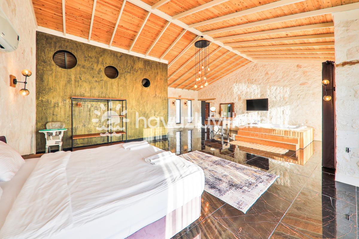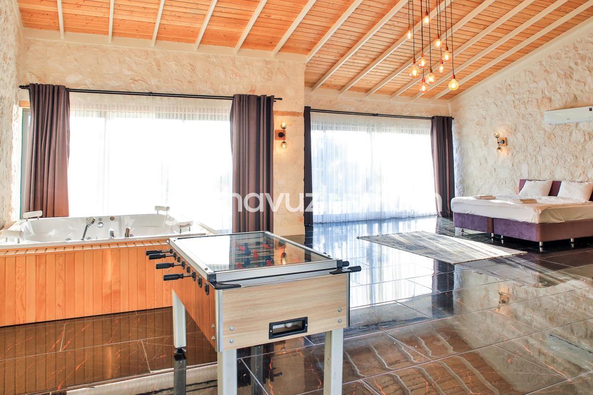 Villa Toprak'ın içerisinde bulunan jakuzi, günün yorgunluğunu atmak ve romantik anlar yaşamak için mükemmel bir seçenektir. Ayrıca, villa bahçesinde doğanın keyfini çıkarabilir, huzurlu anlar geçirebilirsiniz.