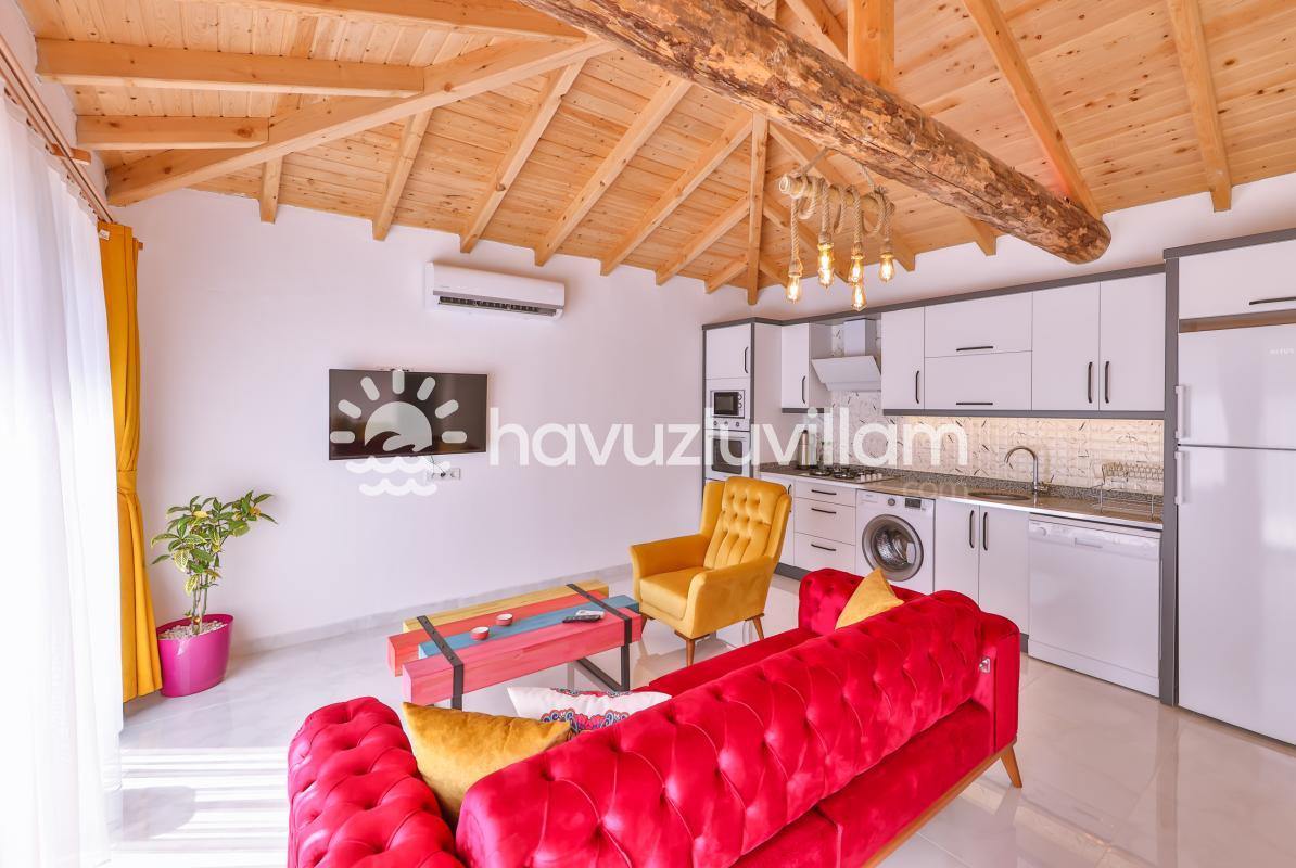 Villa Yağız, her detayı özenle düşünülerek tasarlanmıştır. Modern ve şık iç dizaynı, geniş ve ferah yaşam alanlarıyla konuklarına konforlu bir konaklama imkanı sunar. Villanın açık terasında, gün batımının büyüleyici manzarasına karşı romantik anlar yaşayabilir, akşam yemeklerinizi sevdiklerinizle birlikte açık havada keyifle paylaşabilirsiniz.
