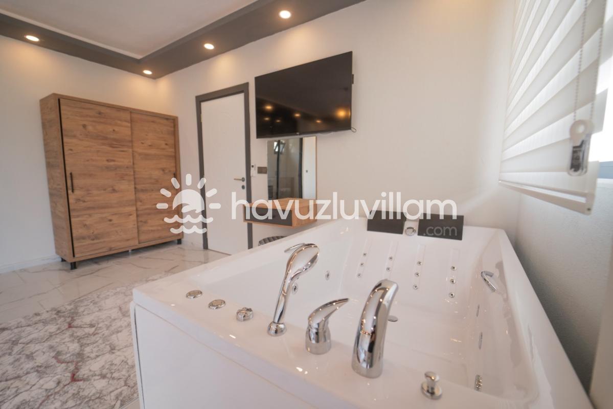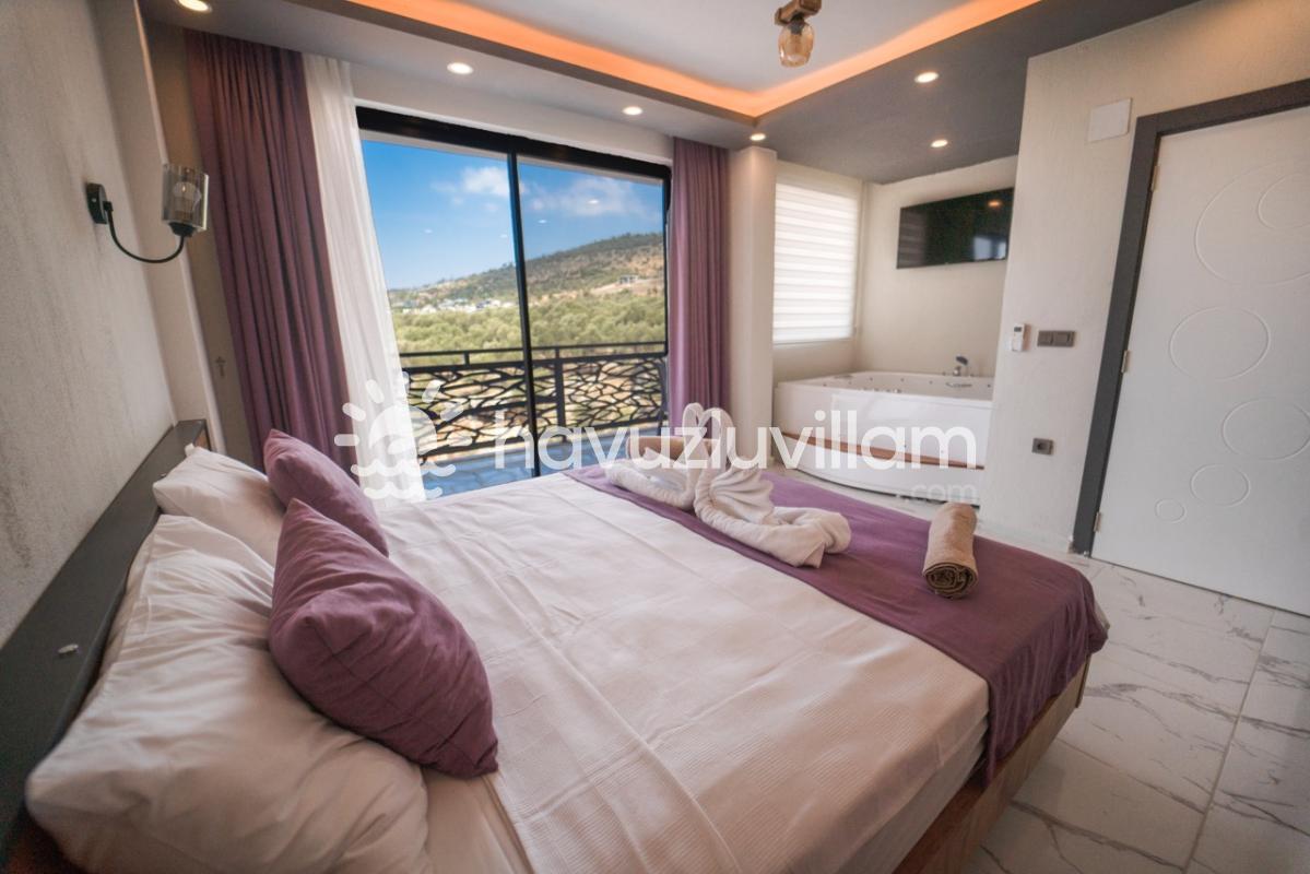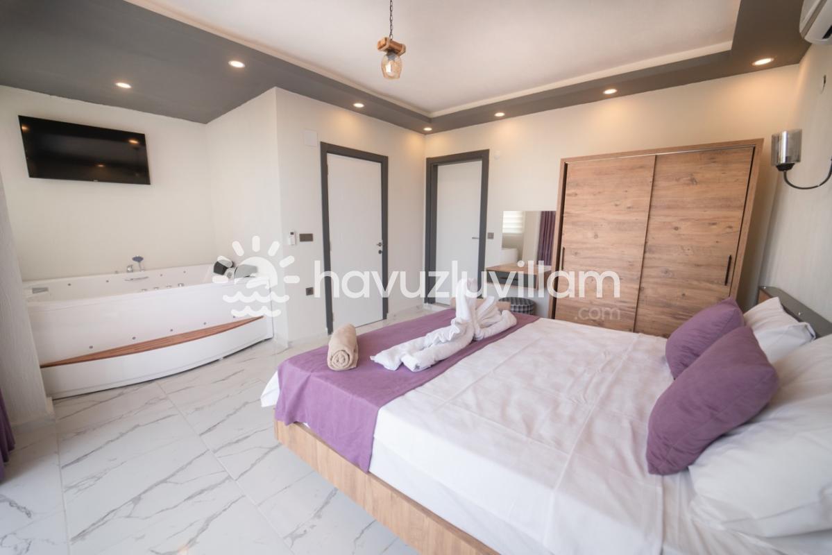 Villamız, mahremiyete önem veren misafirlerimiz için ideal bir seçimdir. Özel havuzu ve muhafazakar yapısıyla, tamamen size ait bir tatil alanı sunar. Havuz başında güneşlenmenin ve serinlemenin tadını çıkarırken, jakuzisi ile yılın tüm stresini atabilirsiniz. Her detayı özenle düşünülmüş olan Villa Yazgülü, modern ve rahat iç mekanlarıyla sizi evinizde hissettirecek.